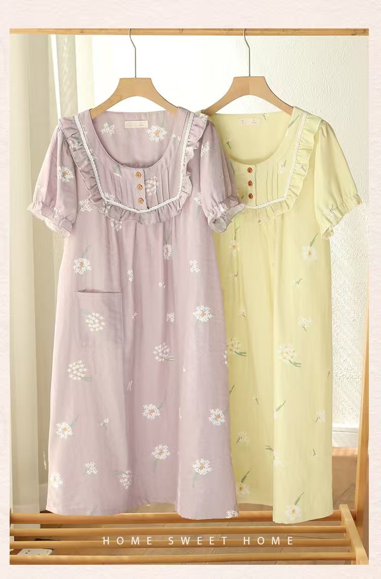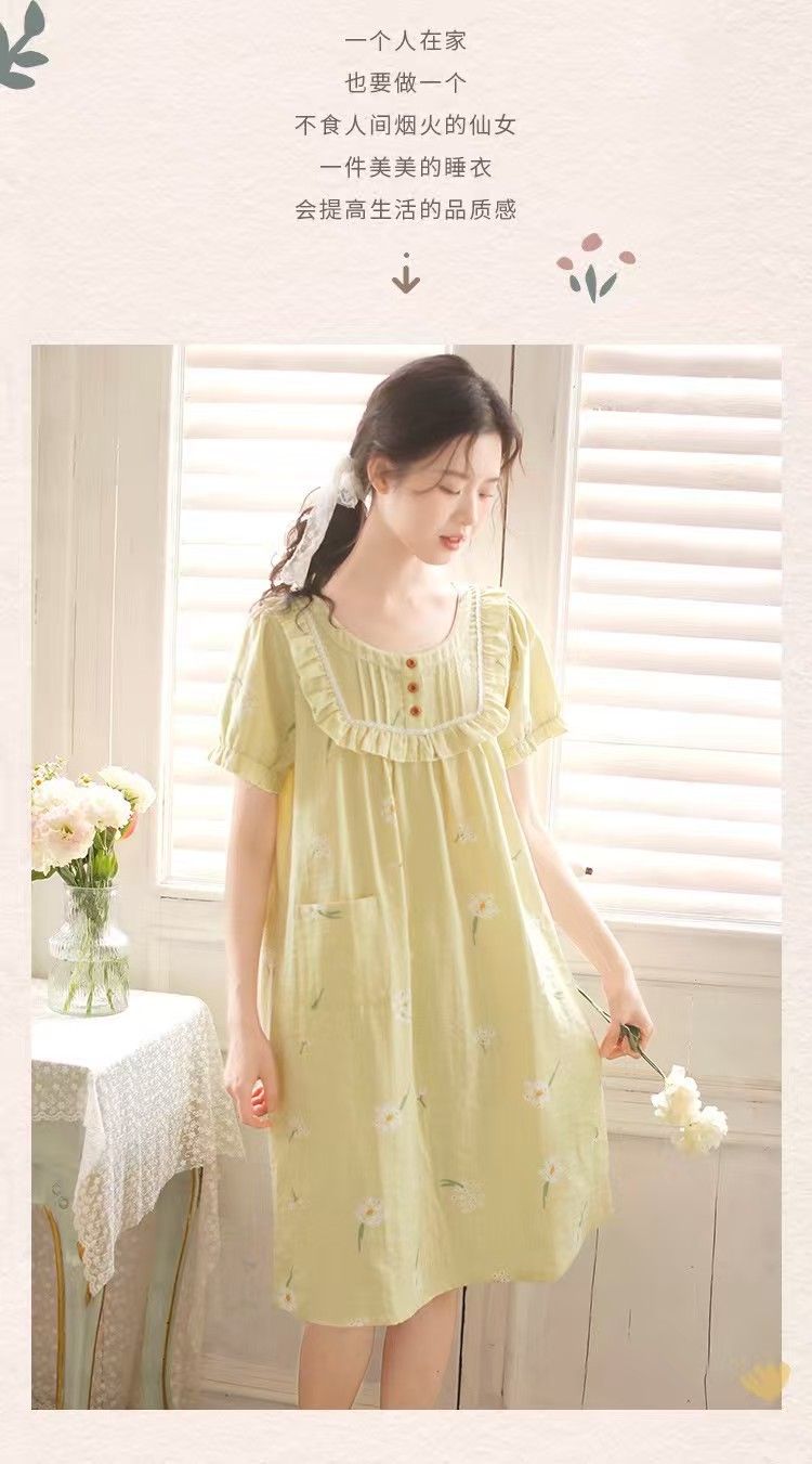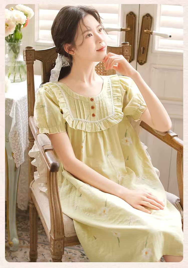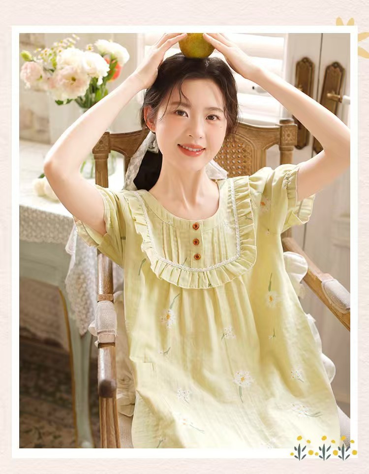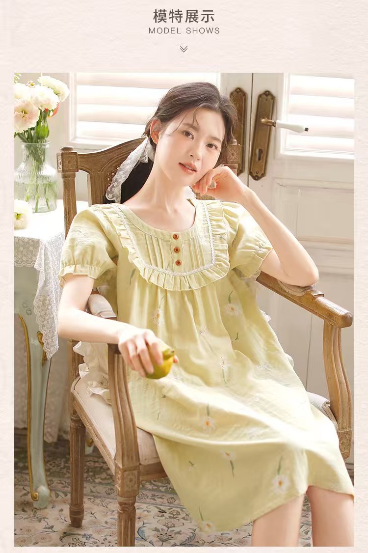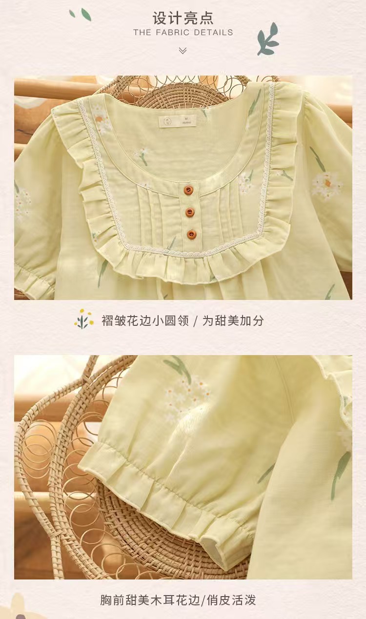 商品名称:(总)洛兰沙家居馆 2026春夏新品睡裙女菲边棉纱甜美公主风长袖薄款可外穿家居服睡裙