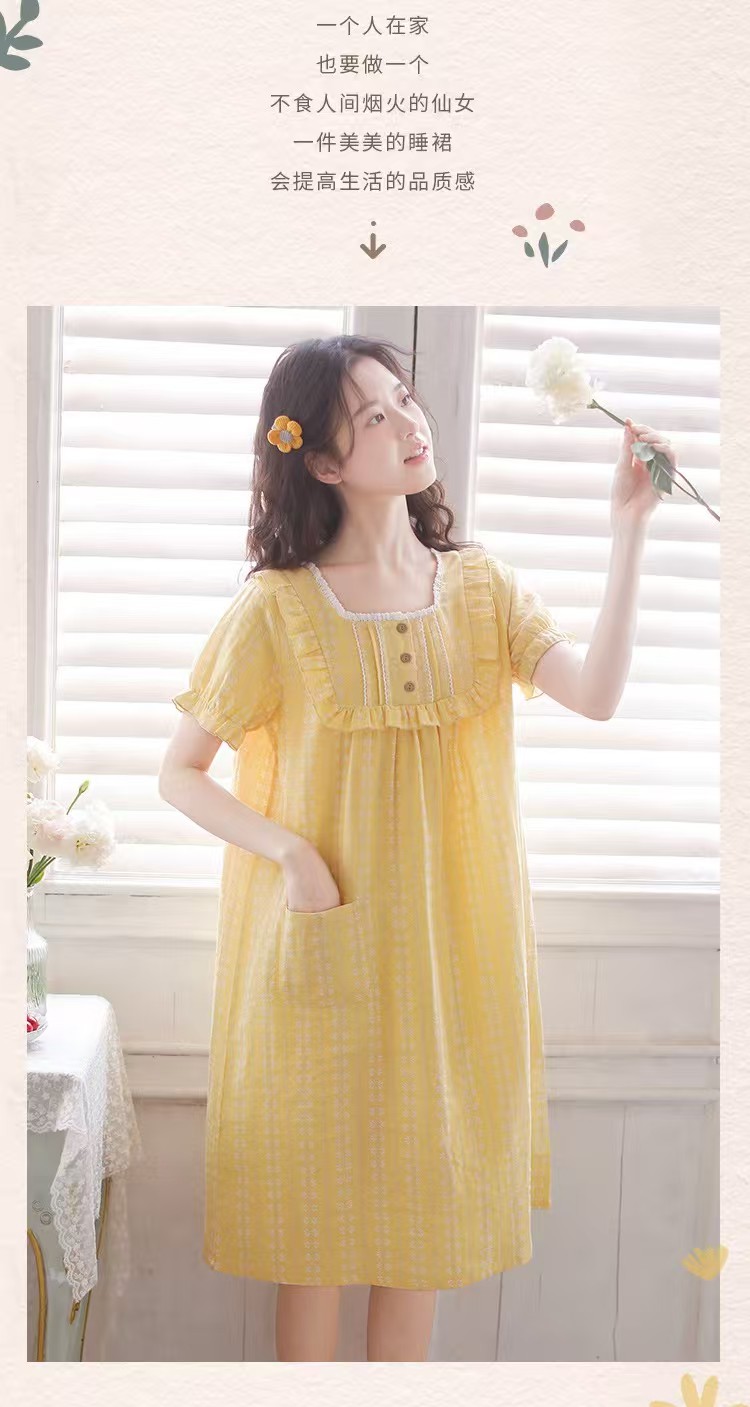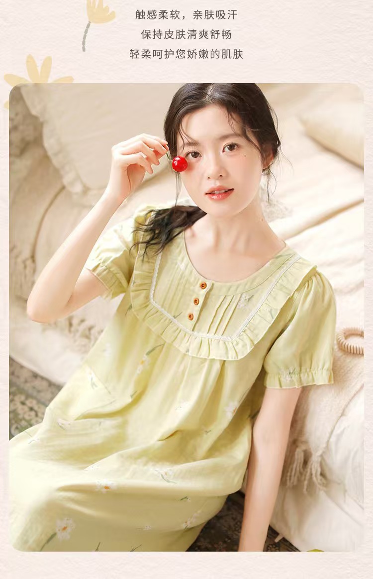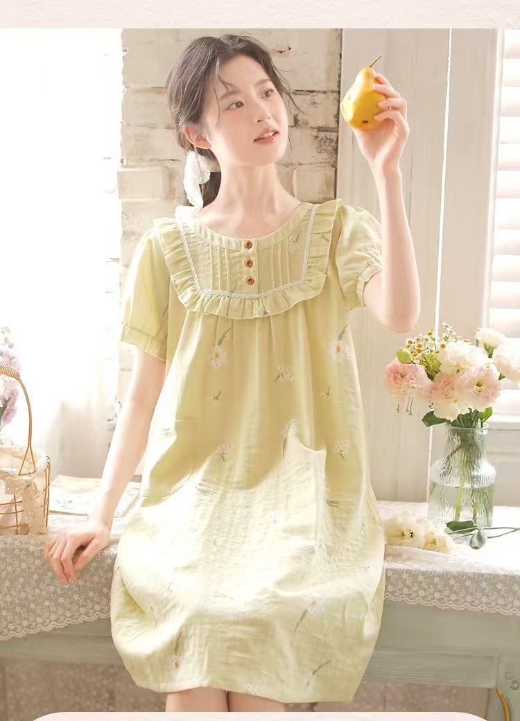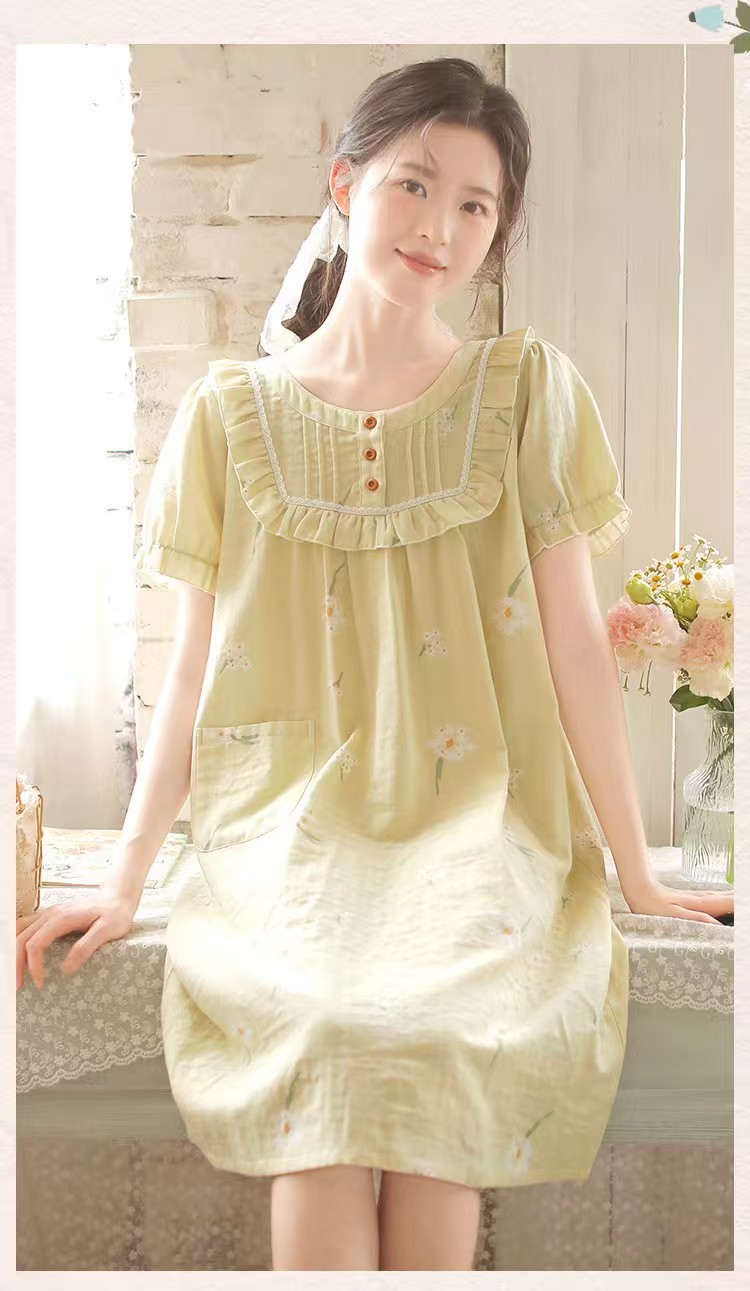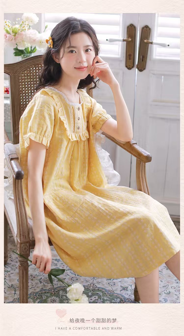 商品名称:(总)洛兰沙家居馆 2026春夏新品睡裙女菲边棉纱甜美公主风长袖薄款可外穿家居服睡裙