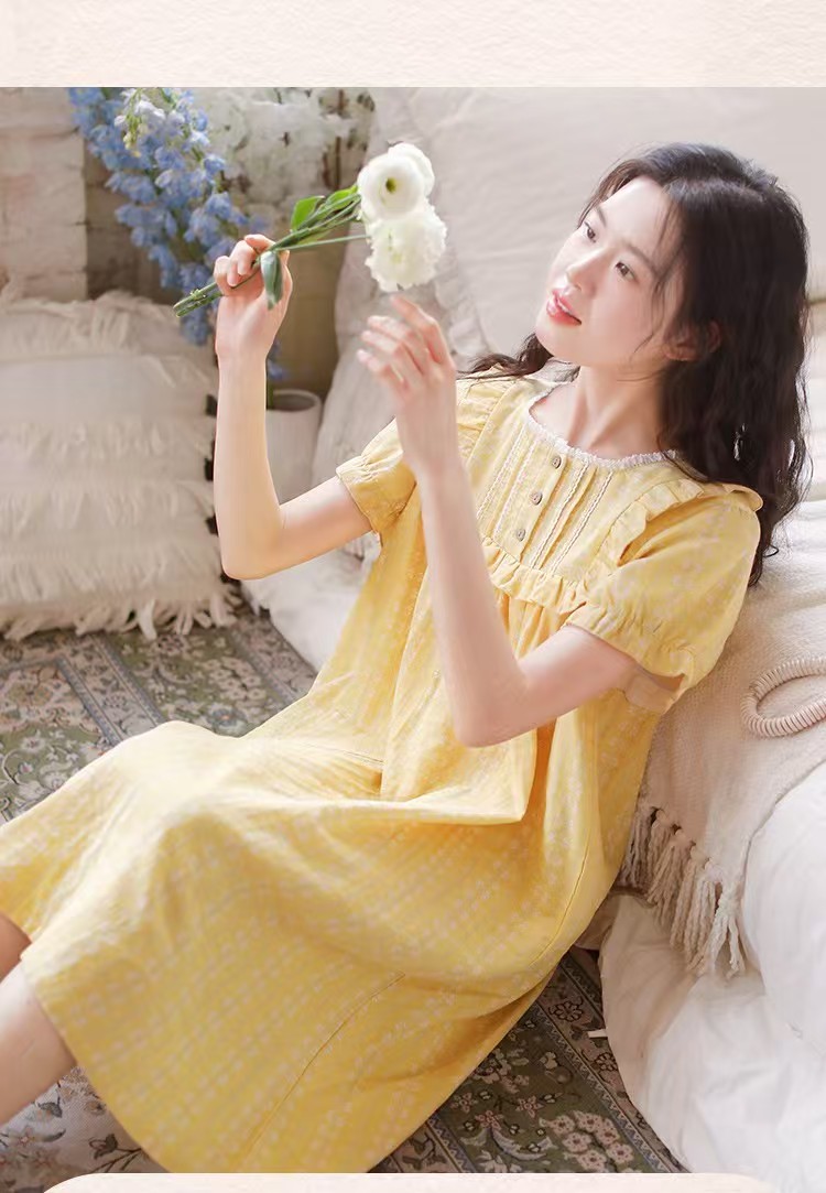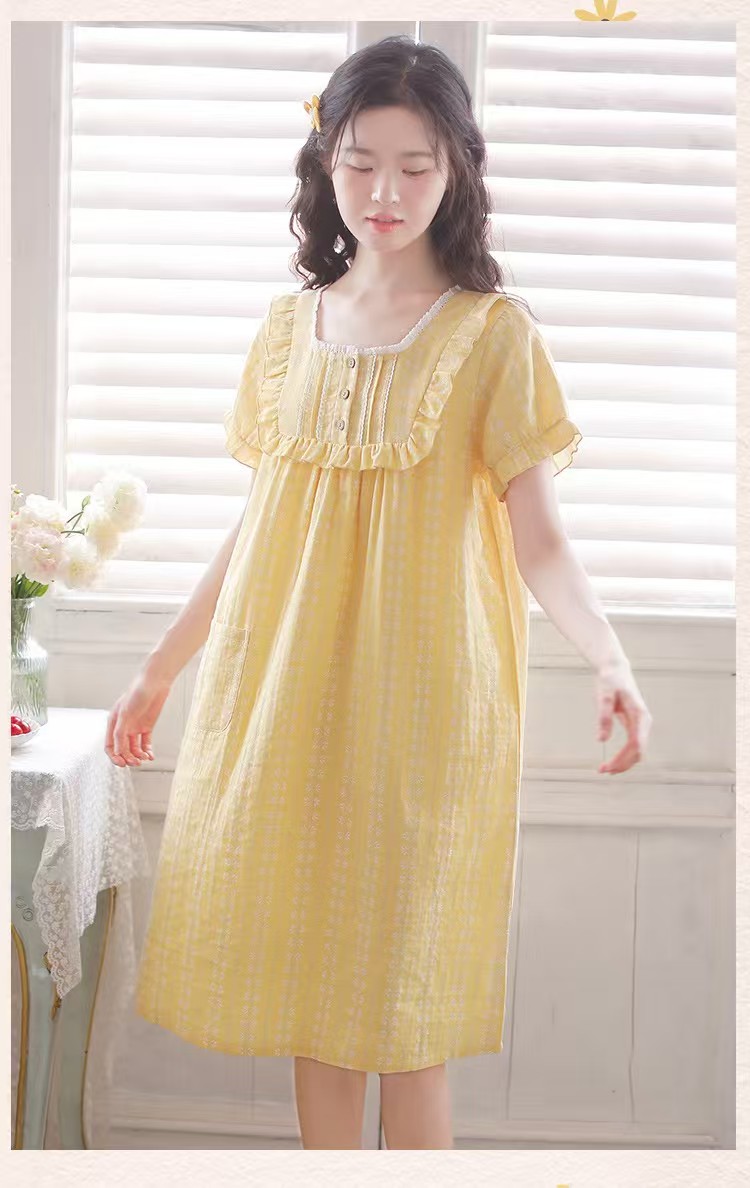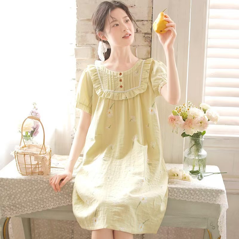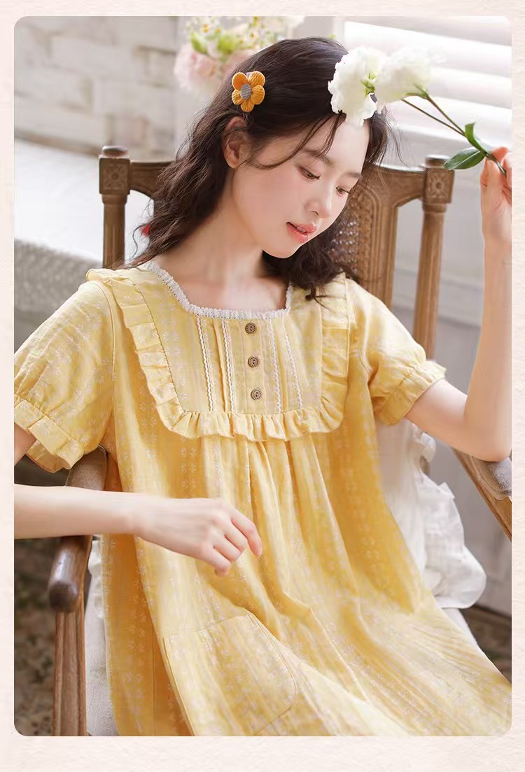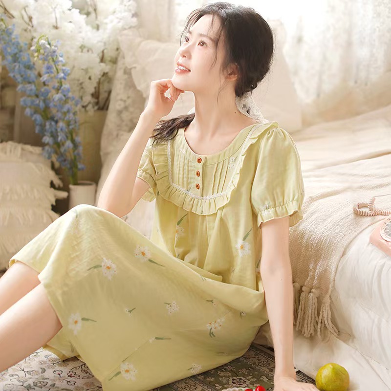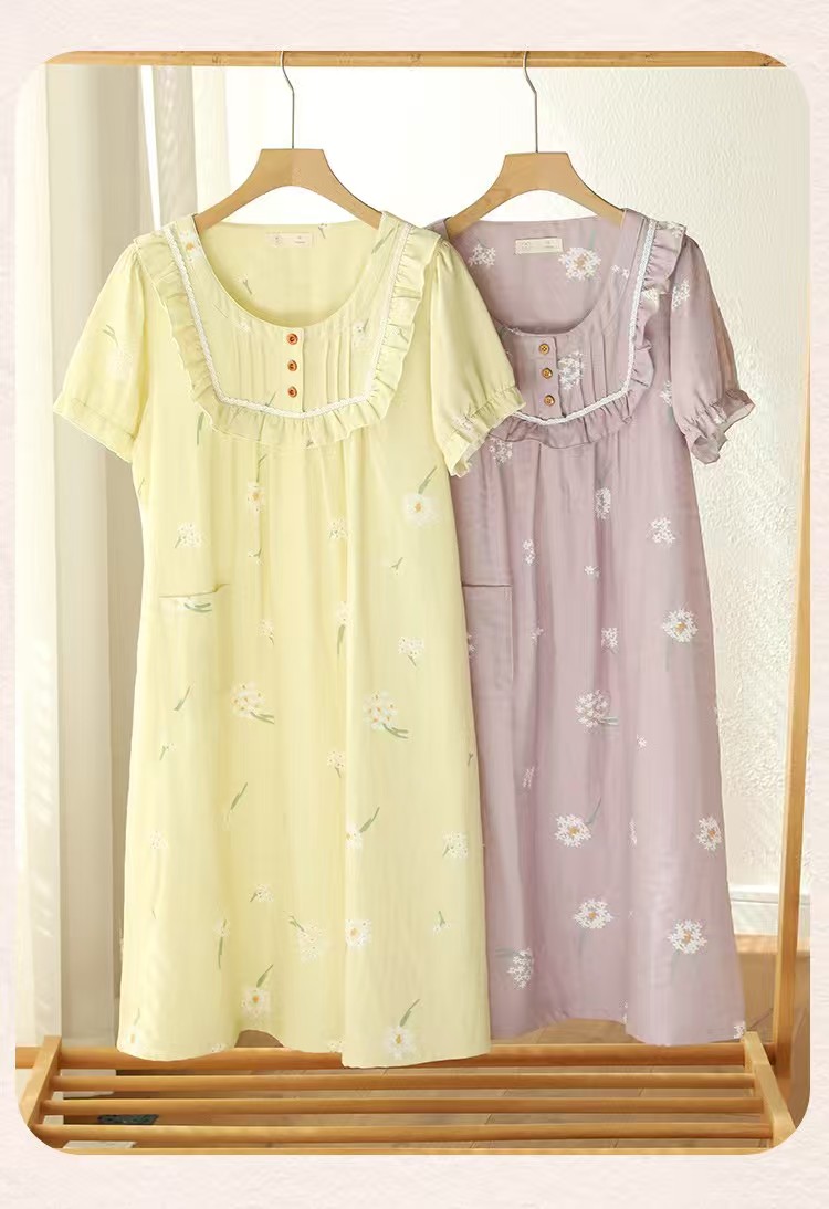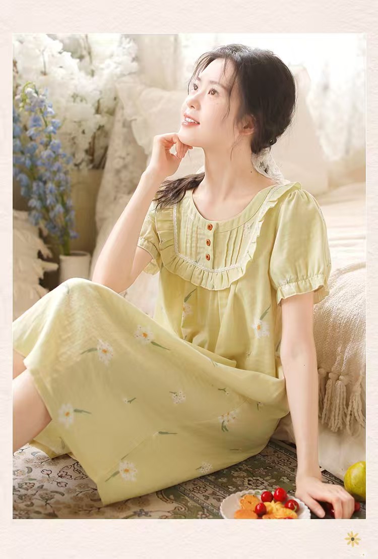 商品名称:(总)洛兰沙家居馆 2026春夏新品睡裙女菲边棉纱甜美公主风长袖薄款可外穿家居服睡裙