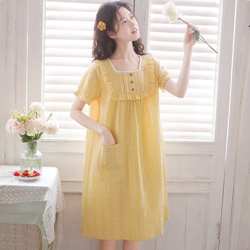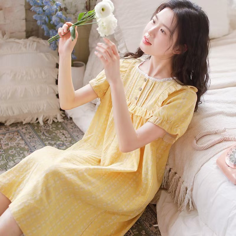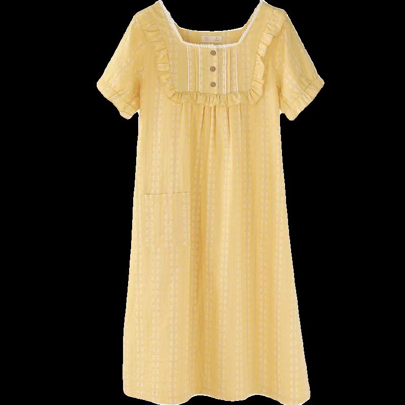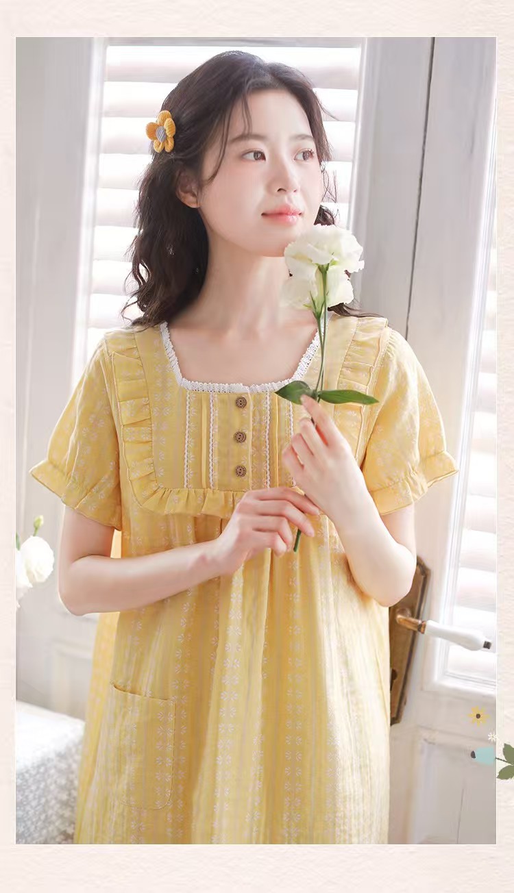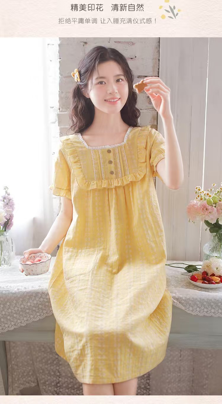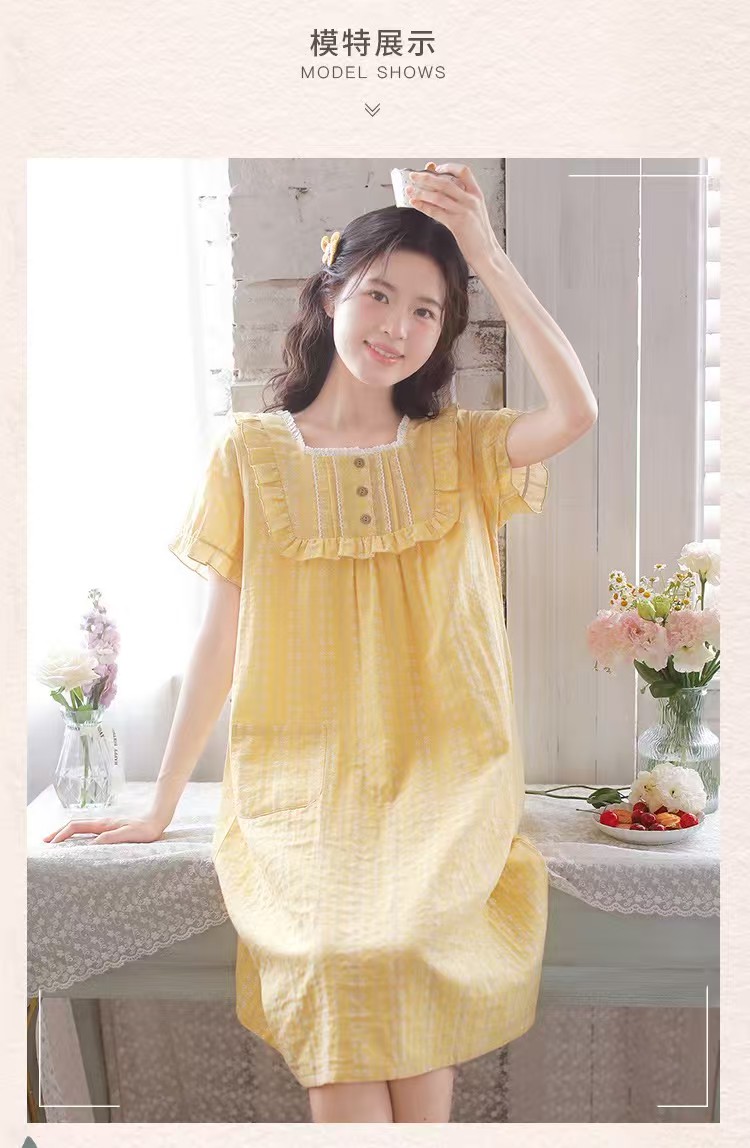 商品名称:(总)洛兰沙家居馆 2026春夏新品睡裙女菲边棉纱甜美公主风长袖薄款可外穿家居服睡裙