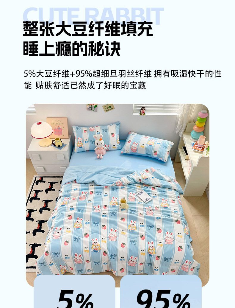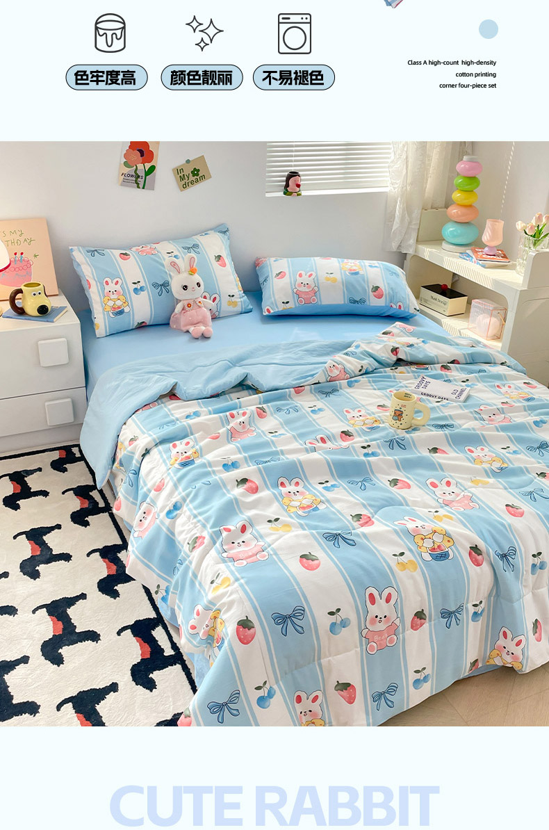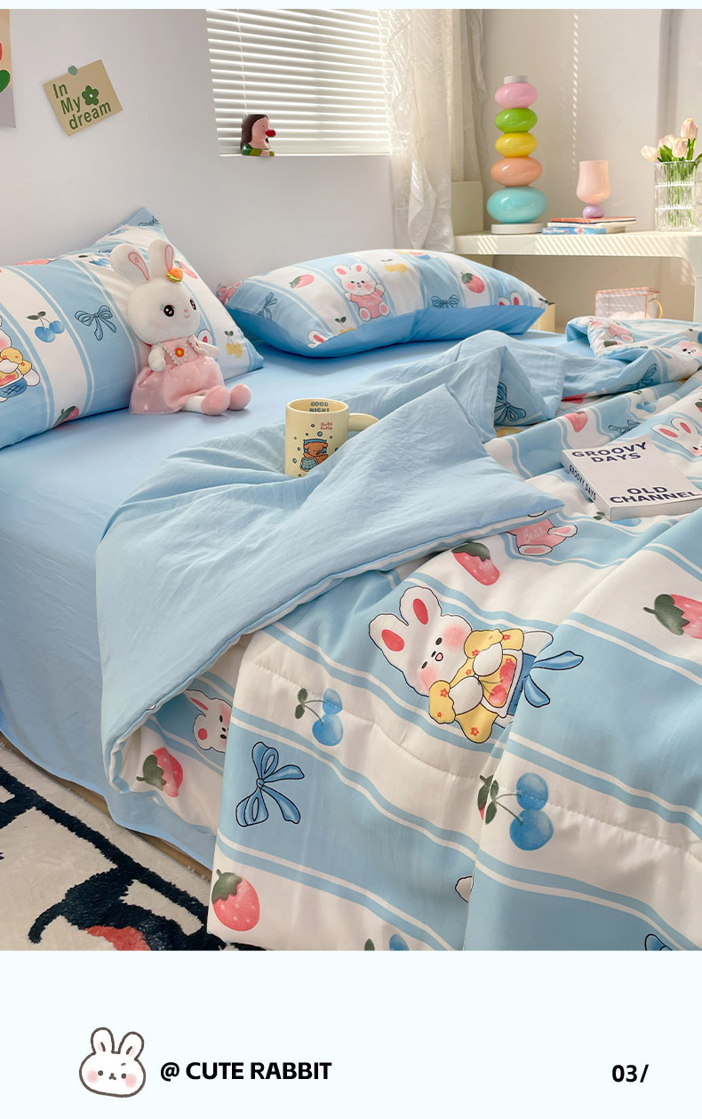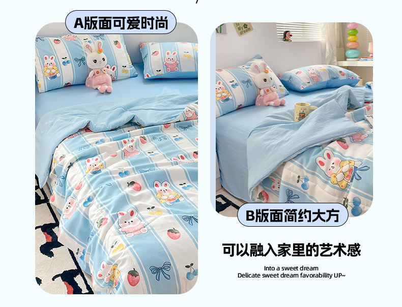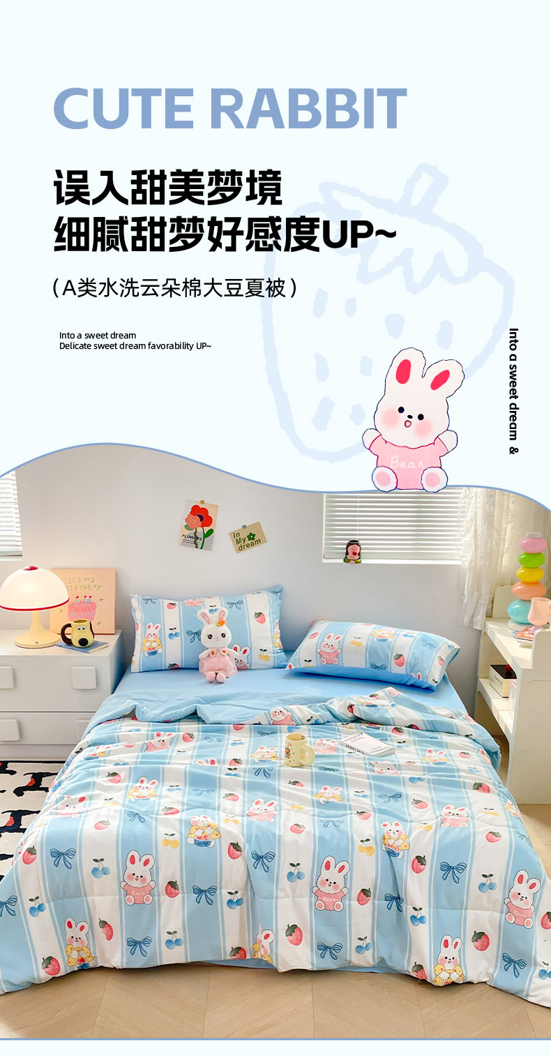 • 91家纺网 家纺一手货源 找家纺 卡斯诺家纺馆 2026新款水洗云朵棉夏被夏凉被空调被 缤果萌兔
