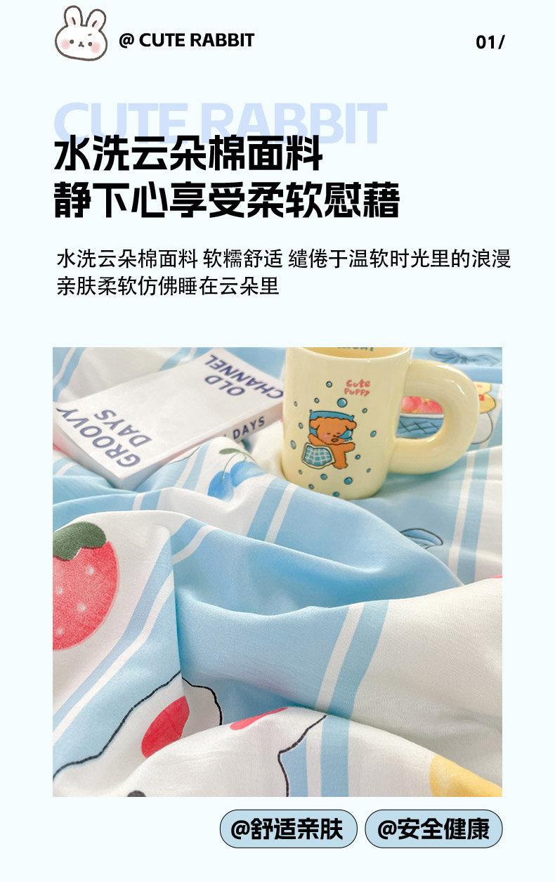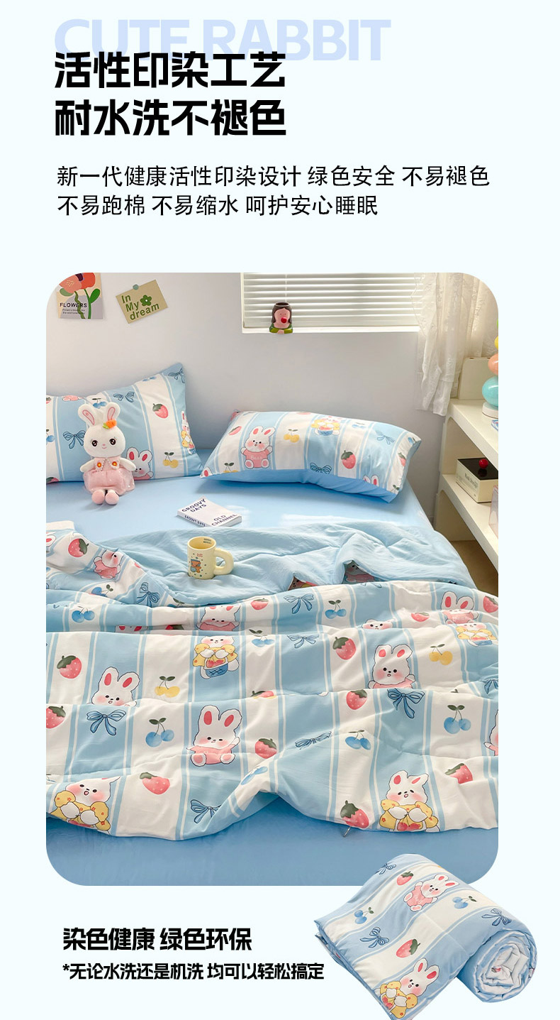 卡斯诺家纺馆 2026新款水洗云朵棉夏被夏凉被空调被 缤果萌兔