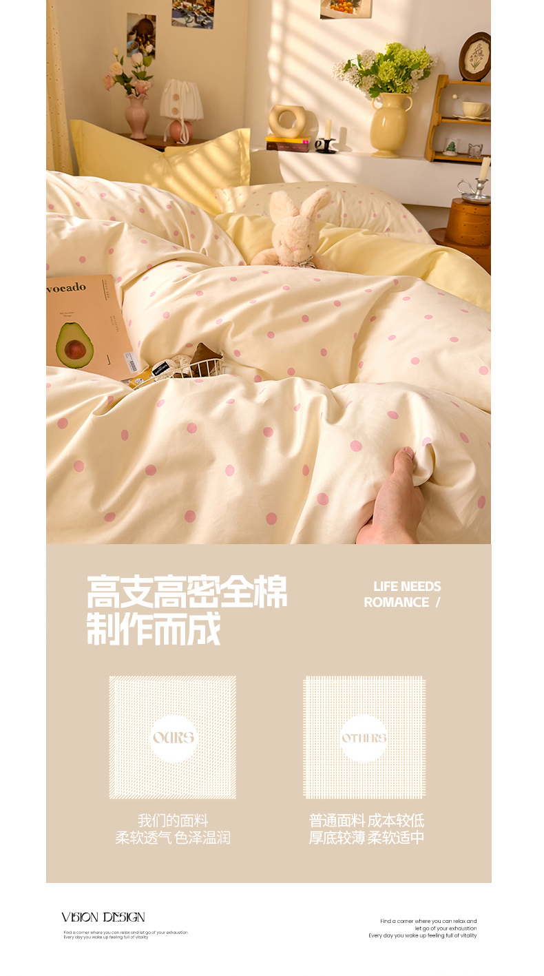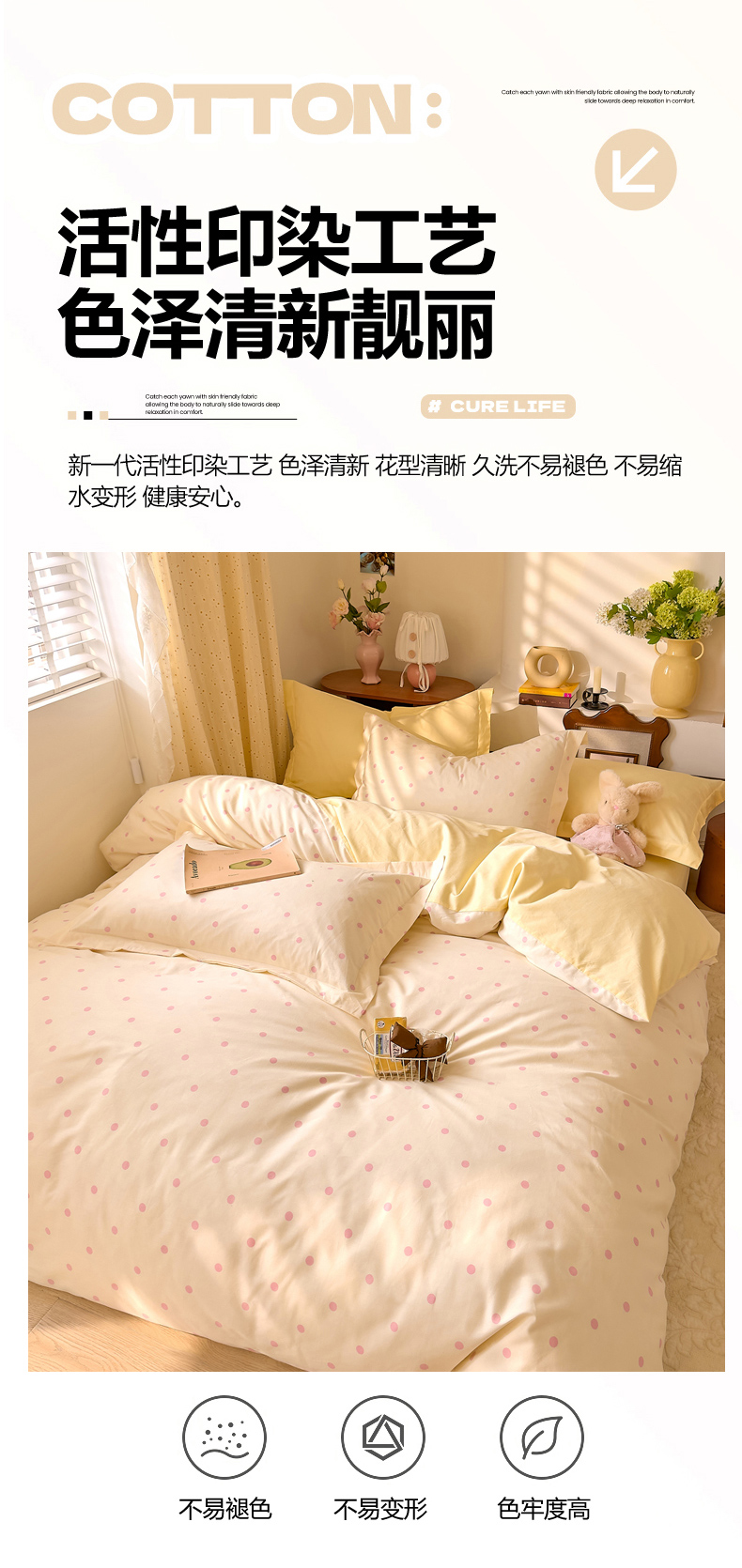 当前位置: 91家纺网 > 商品网购 > 床品套件 > 四件套 > 全棉普通四件套 > DoDo 兜兜 2026年全棉纯棉ins风小清新四件套 波点奶盖-枕套混搭(波点+纯色)