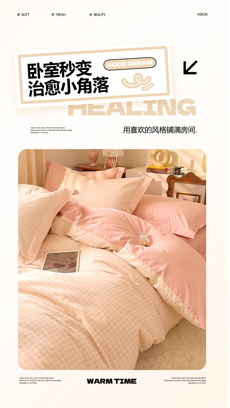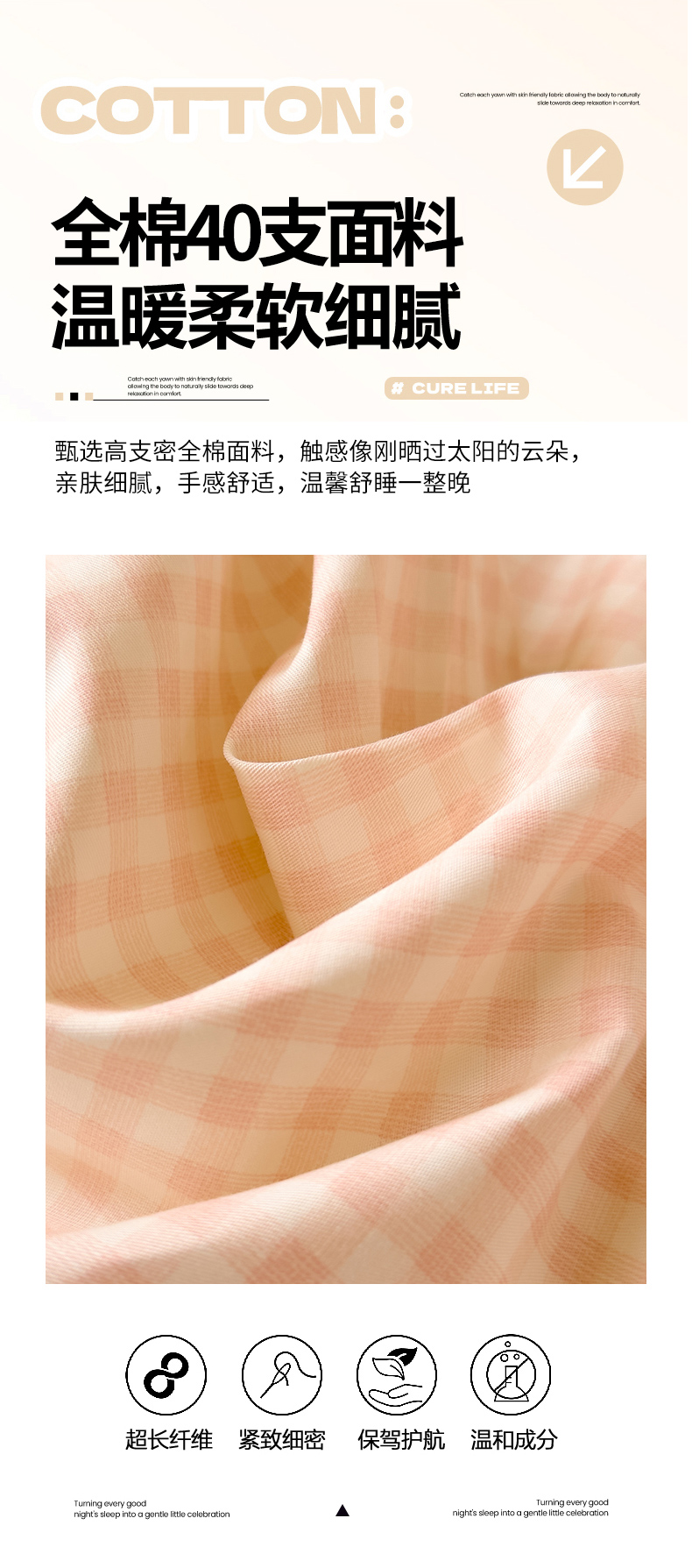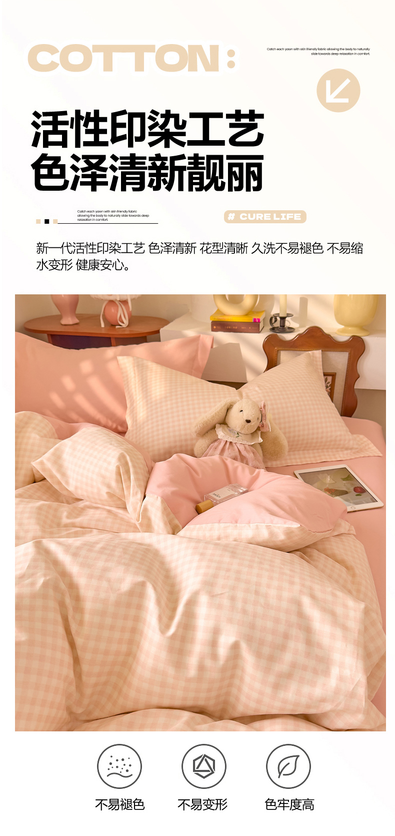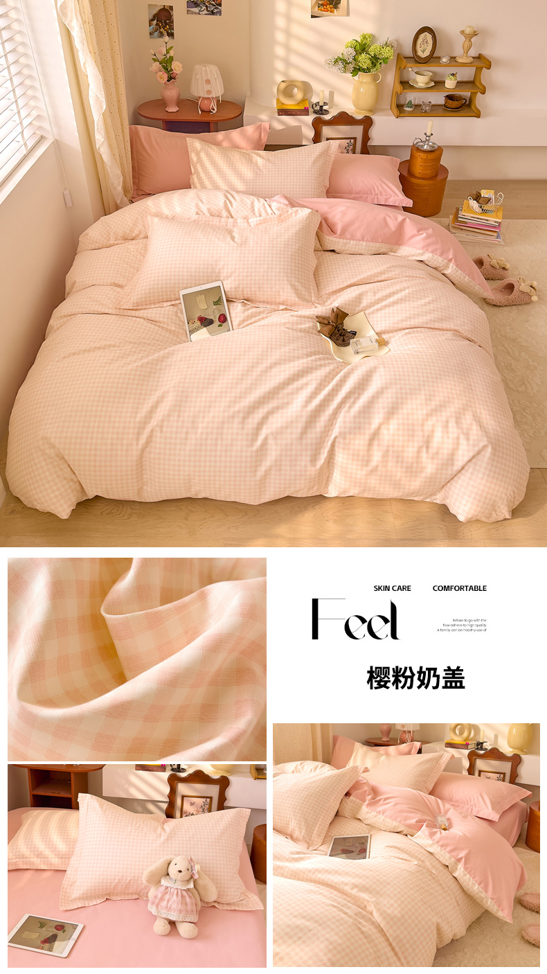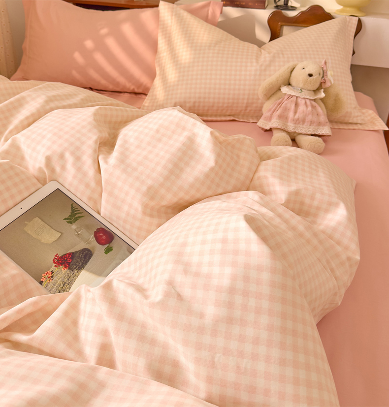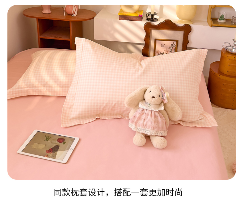 当前位置: 91家纺网 > 商品网购 > 床品套件 > 四件套 > 全棉普通四件套 > DoDo 兜兜 2026年全棉纯棉ins风小清新四件套 樱粉奶盖-枕套1对格子