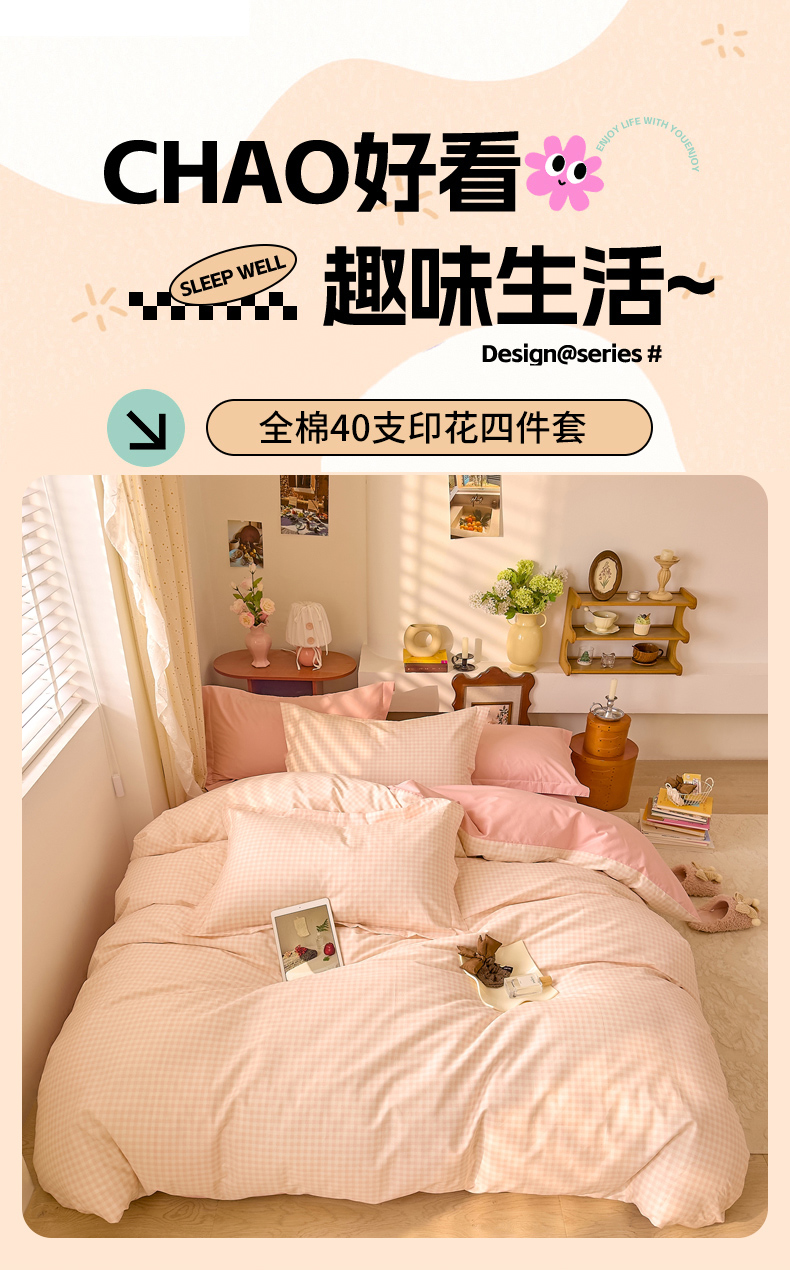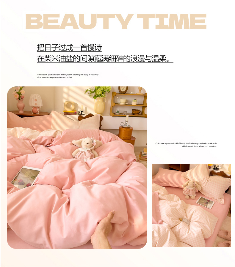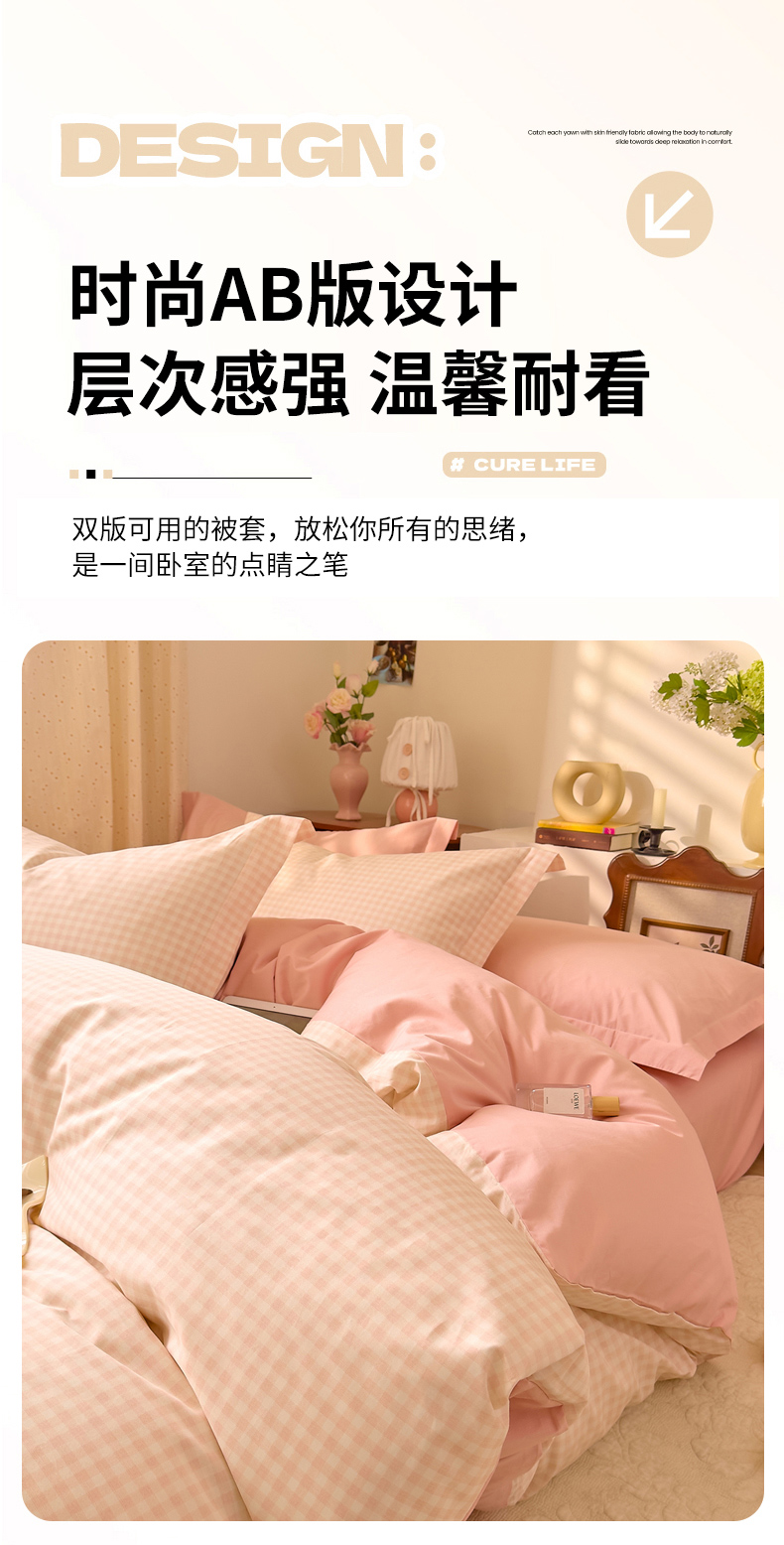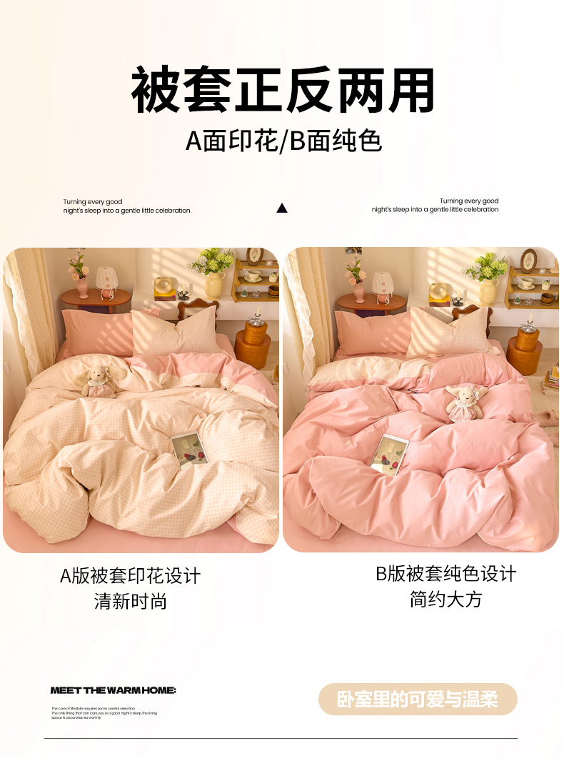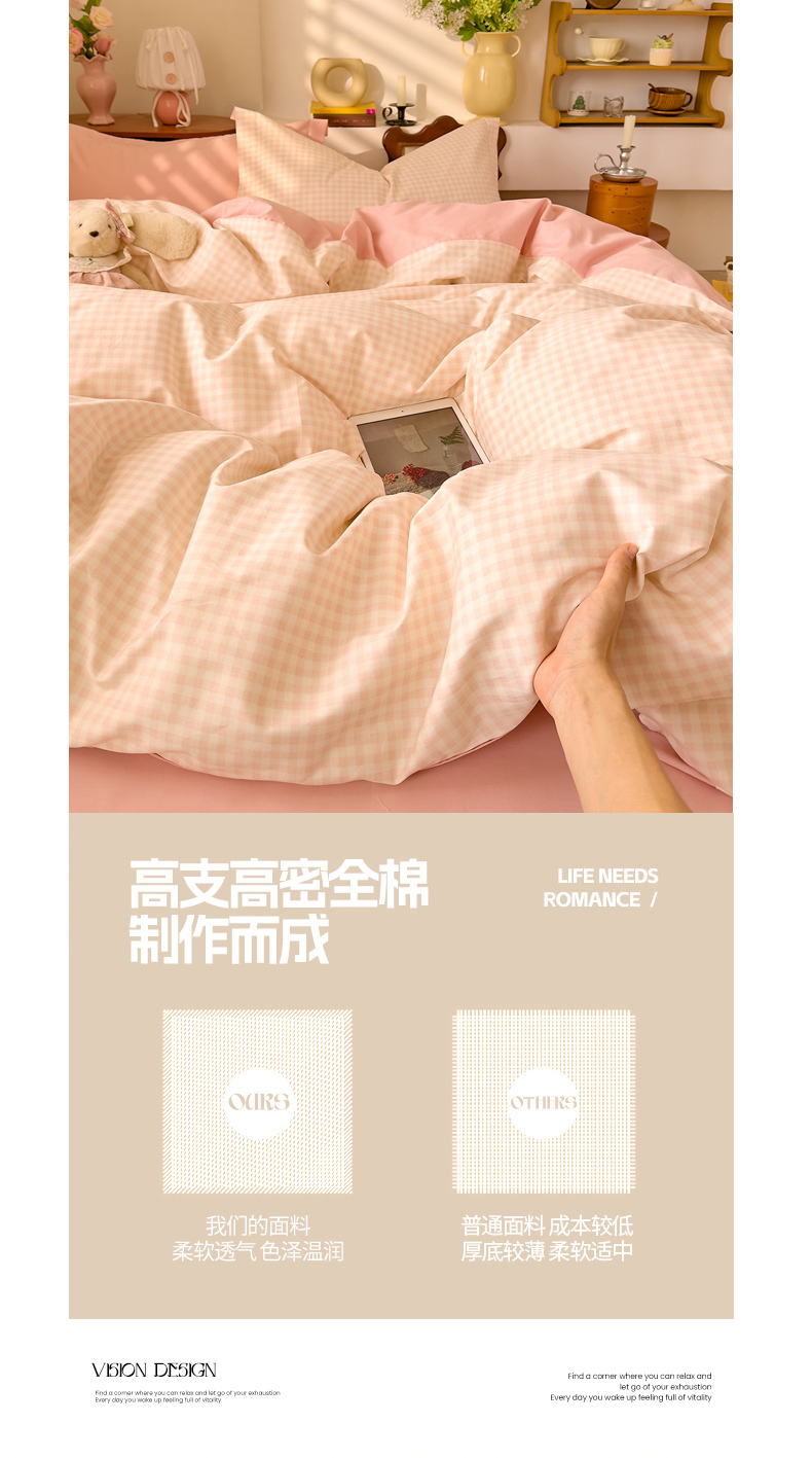 当前位置: 91家纺网 > 商品网购 > 床品套件 > 四件套 > 全棉普通四件套 > DoDo 兜兜 2026年全棉纯棉ins风小清新四件套 樱粉奶盖-枕套1对格子