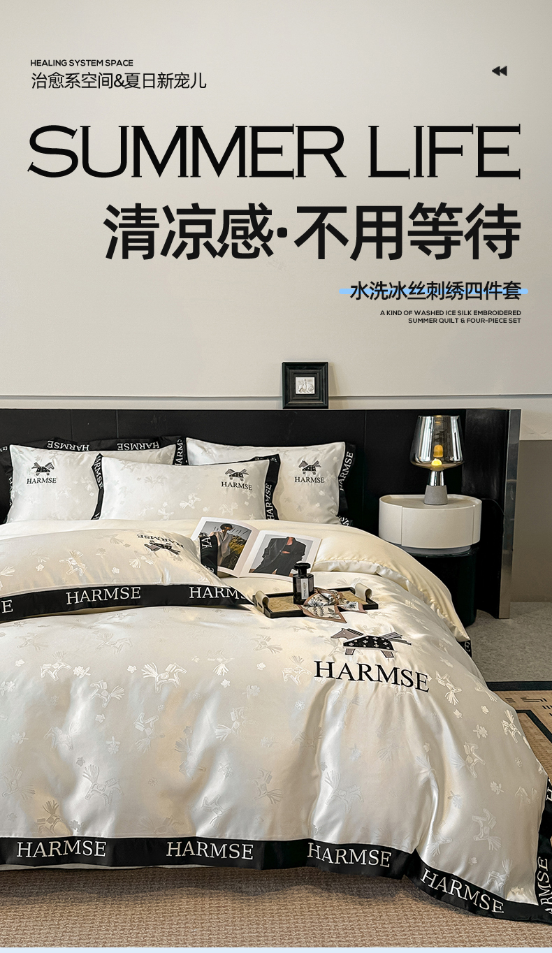 当前位置: 91家纺网 > 商品网购 > 床品套件 > 四件套 > 水洗真丝四件套 > (总)笙意家纺 2026新款水洗冰丝刺绣宽边四件套-马力全开