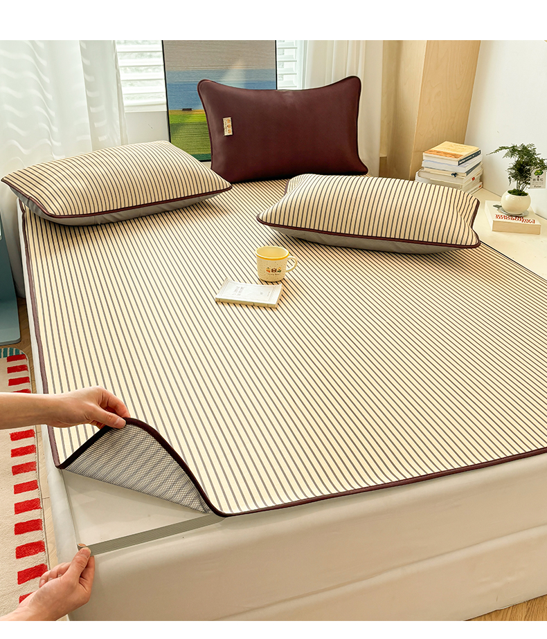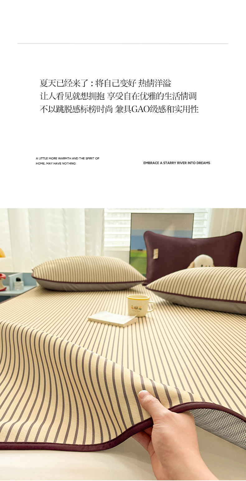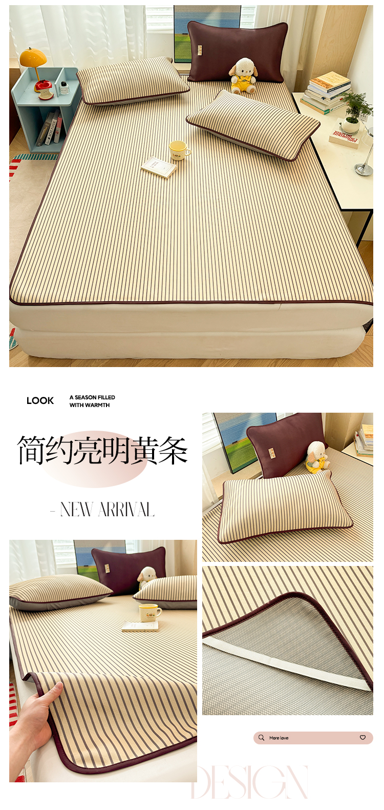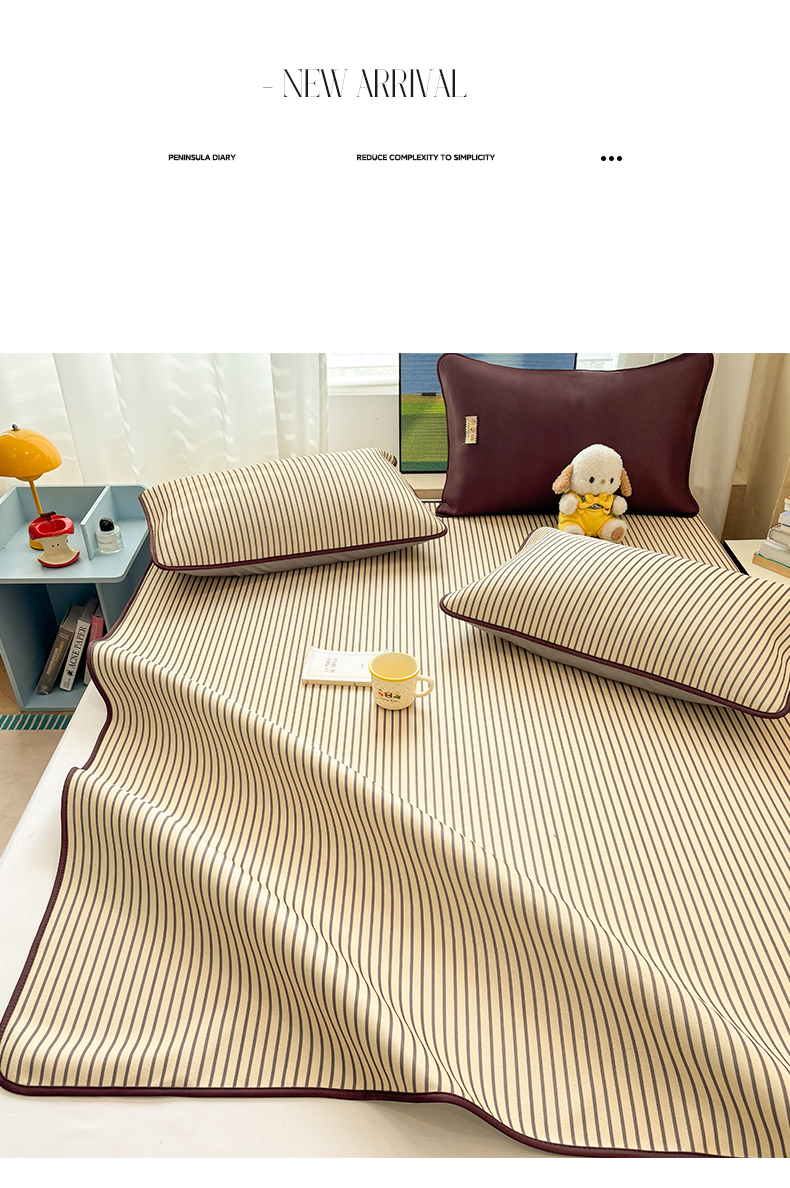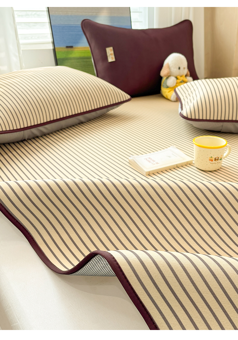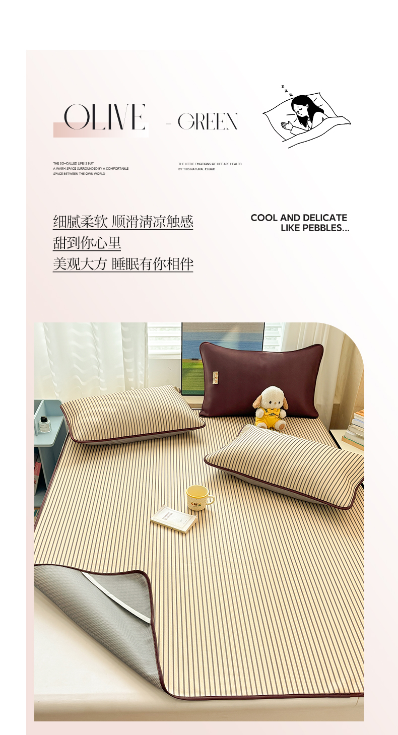 (总)雅居纺家纺 2026新款简约条纹系列凉席牛奶丝三明治底冰丝凉席,简约豆沙条,简约卡其条,简约蓝条,简约亮明黄条,简约绿条