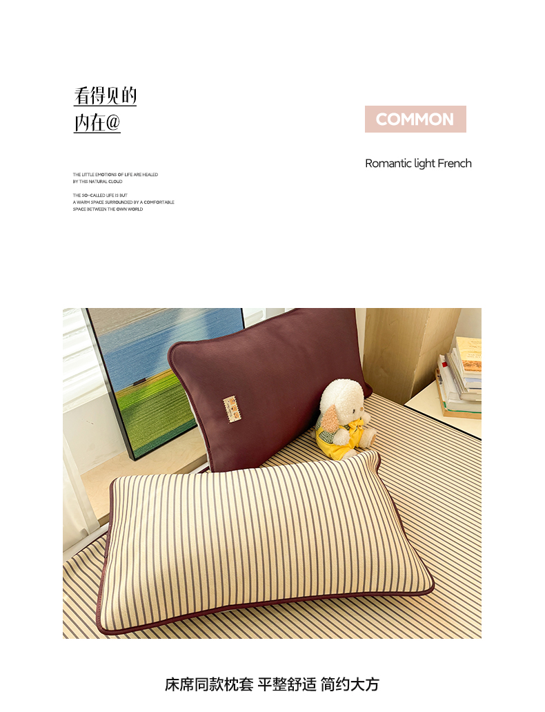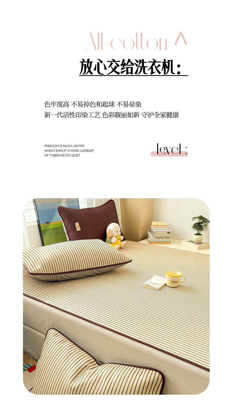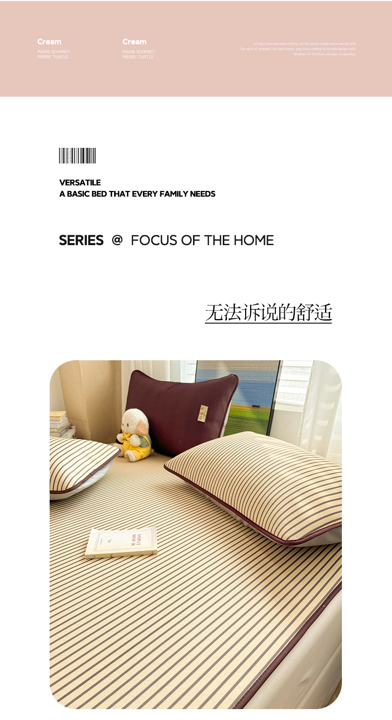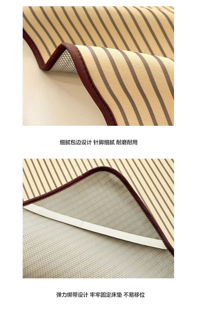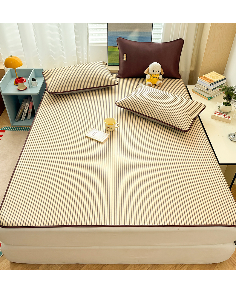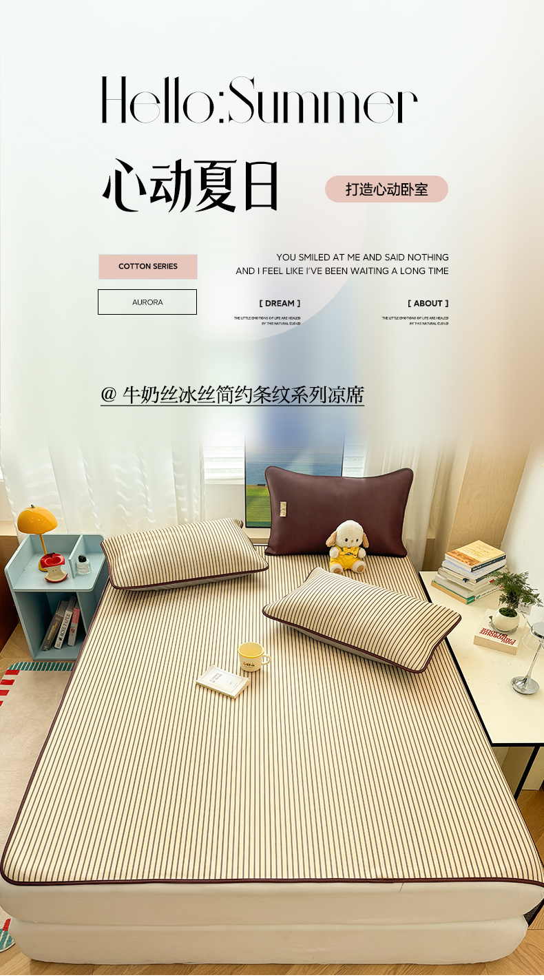 (总)雅居纺家纺 2026新款简约条纹系列凉席牛奶丝三明治底冰丝凉席,简约豆沙条,简约卡其条,简约蓝条,简约亮明黄条,简约绿条