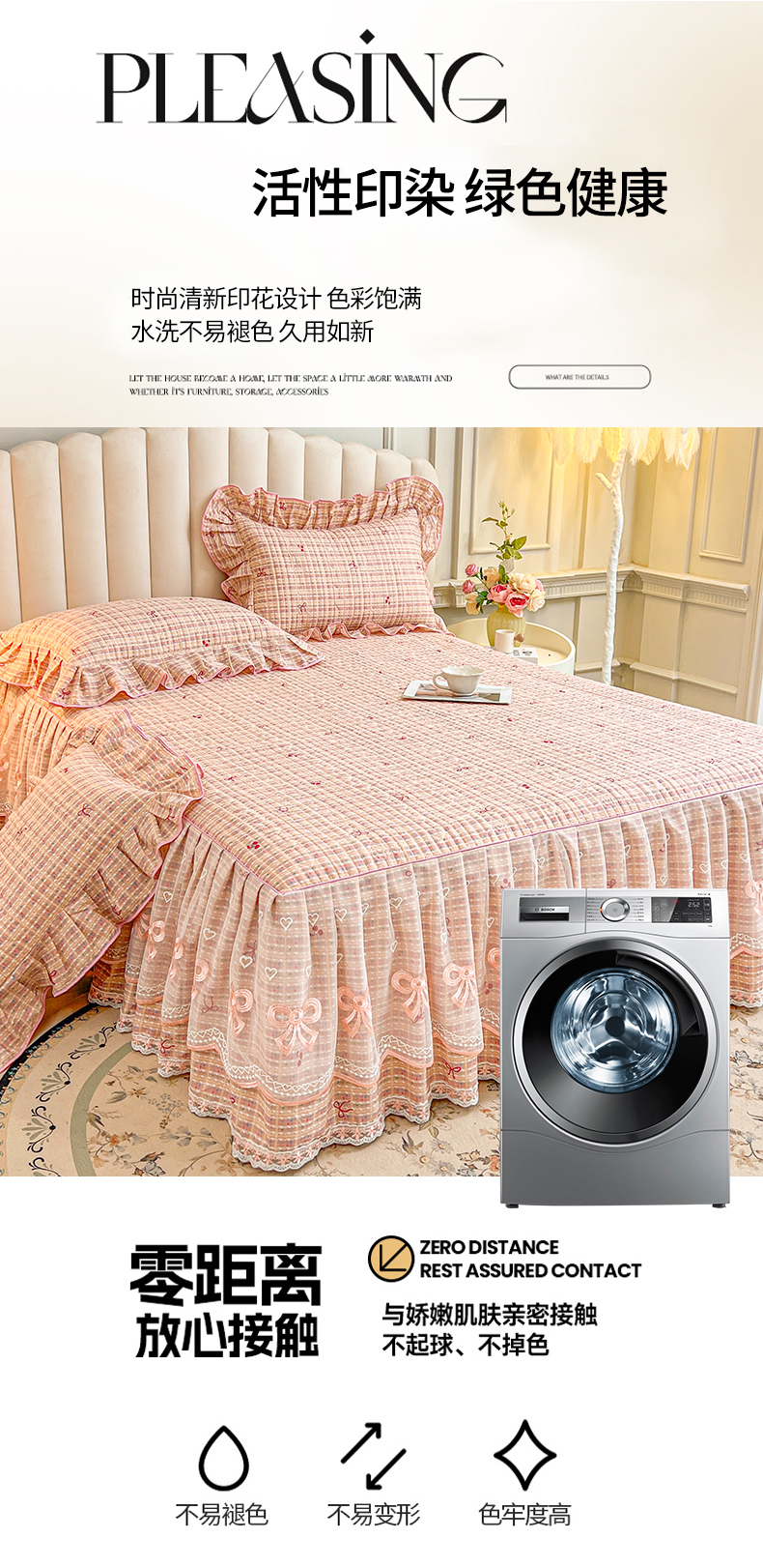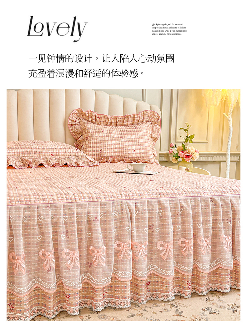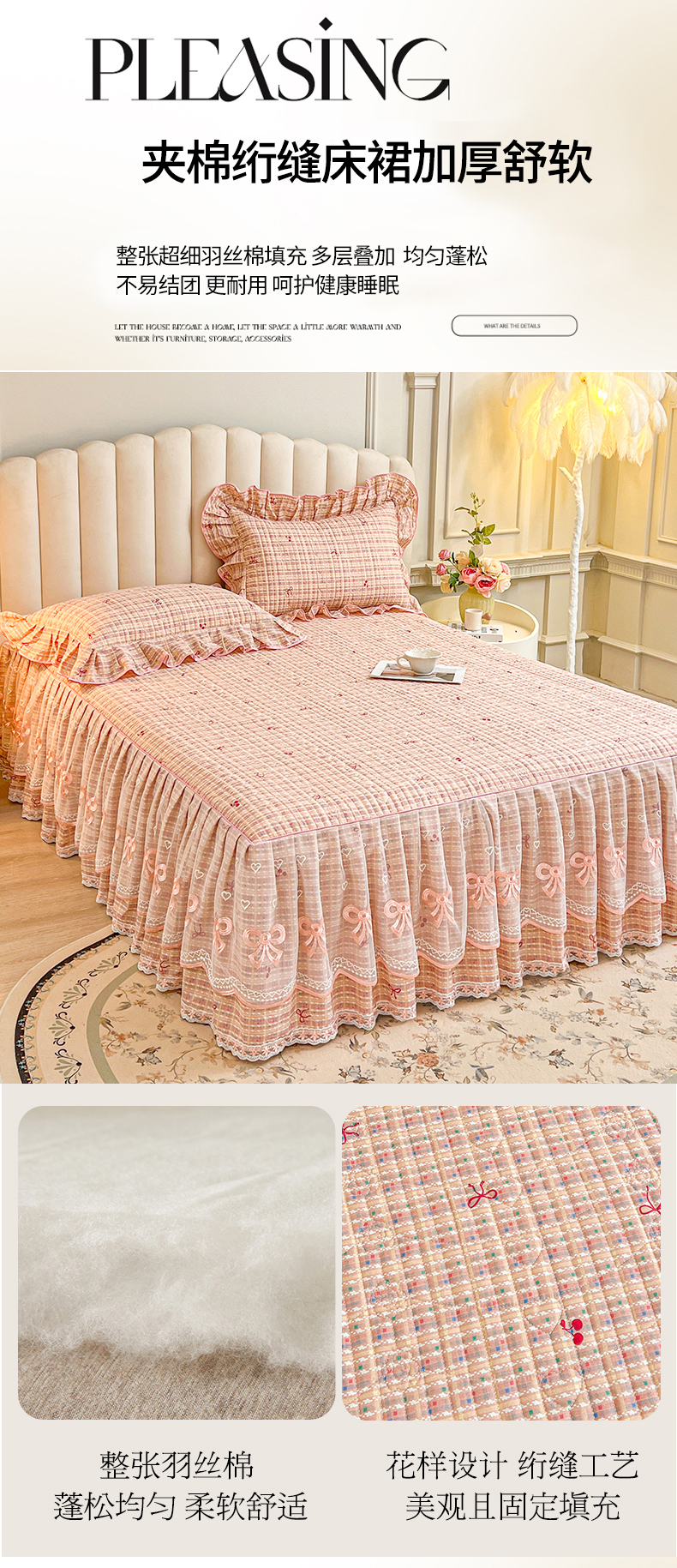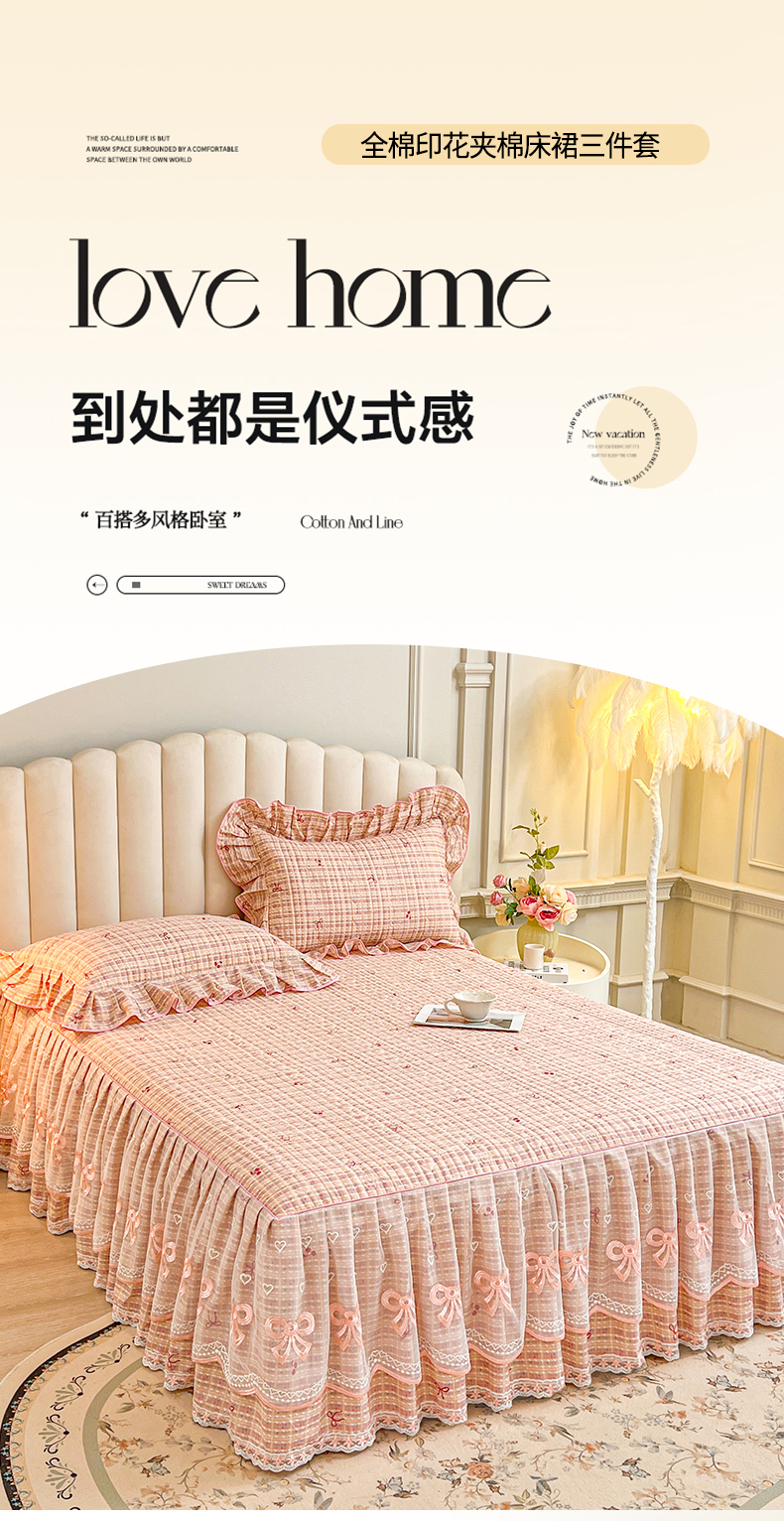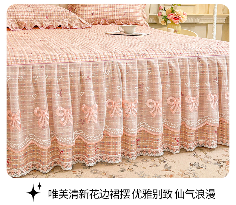 当前位置: 91家纺网 > 商品网购 > 床品套件 > 三件套 > 宜凡家纺 2026新款全棉印花公主风夹棉床裙三件套② 樱桃蝴蝶结