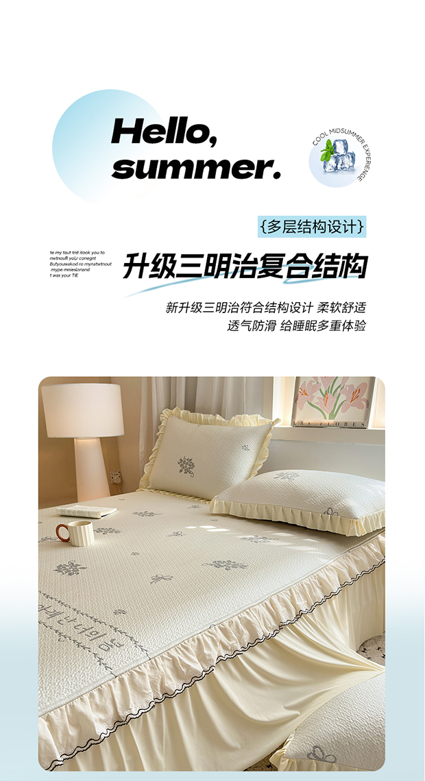 (总)美优兰 2026PE提花凉感冰豆豆三明治复合凉席 (提供买家秀),韩式米白,韩式蓝,晚亭粉,晚亭灰,晚亭蓝,晚亭绿