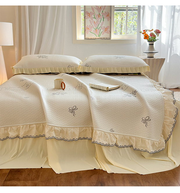 (总)美优兰 2025全棉法式花边双层纱水洗棉花床盖三件套(提供买家秀),组合图仅供参考,半亩花田,波点绿,春意盎然粉,春意盎然绿,玛德琳紫,南风,如画,写意,朱樱