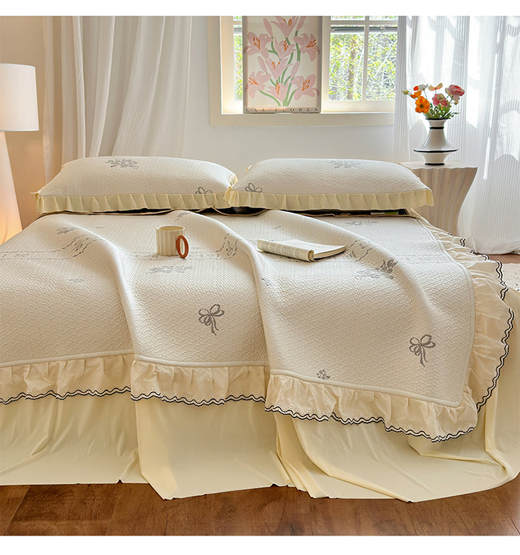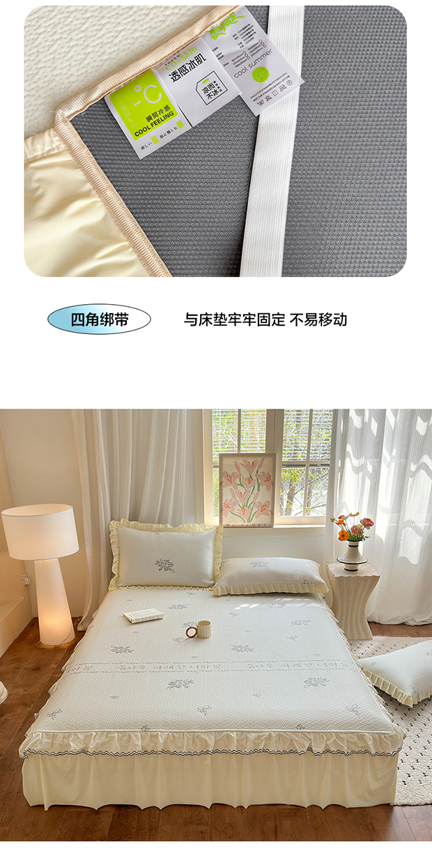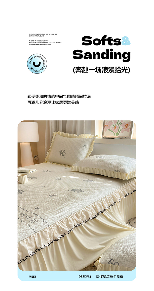 商品名称:美优兰 2026PE提花凉感冰豆豆三明治复合凉席 (提供买家秀) 韩式米白