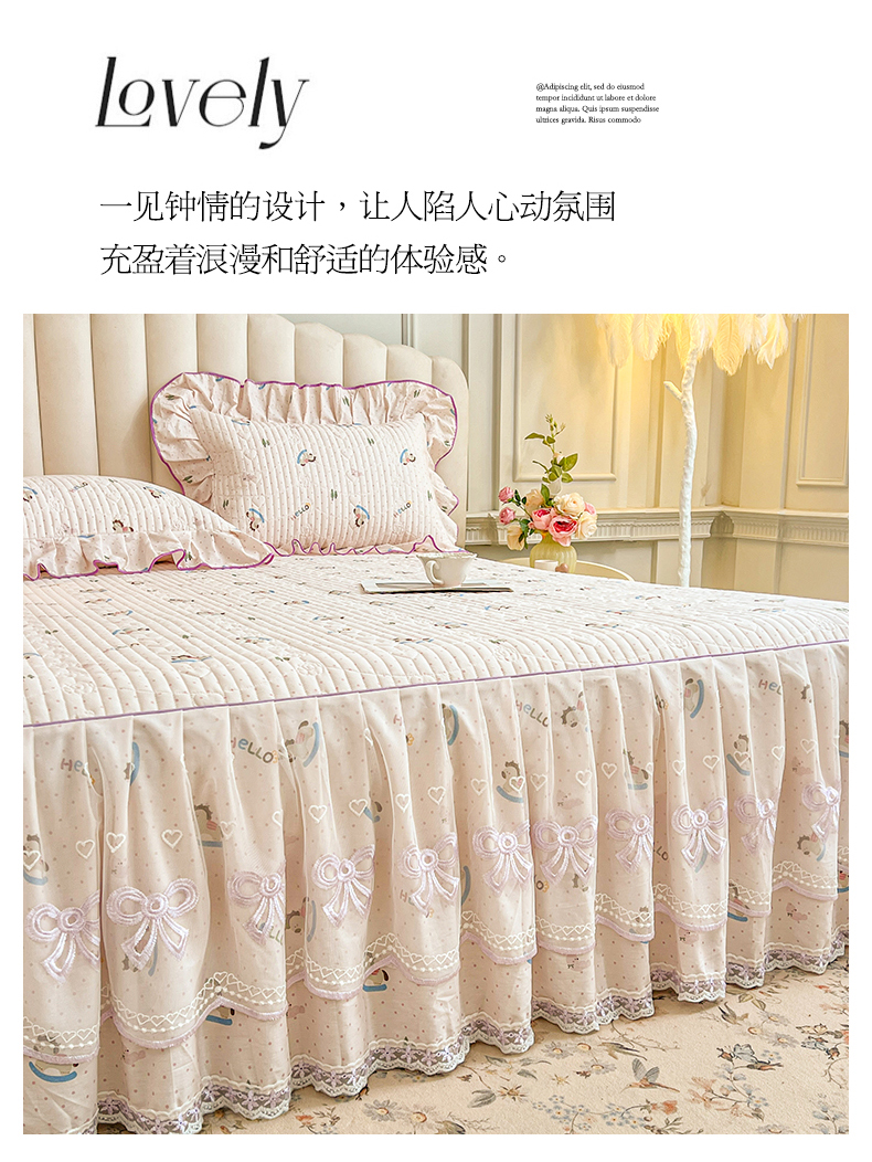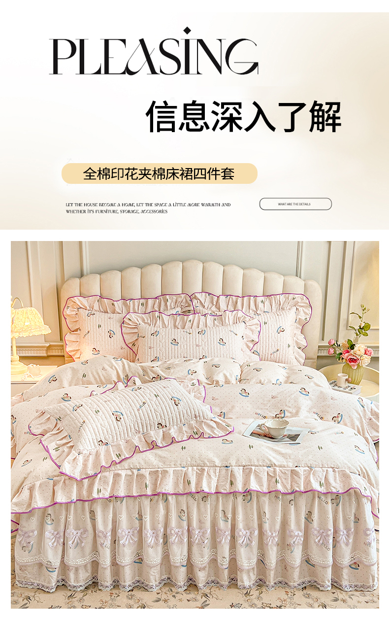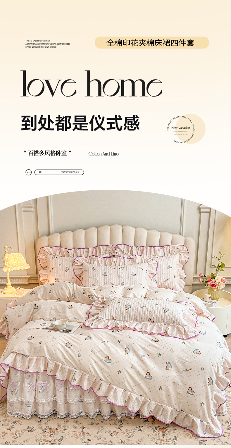 当前位置: 91家纺网 > 商品网购 > 床品套件 > 四件套 > 全棉普通四件套 > 宜凡家纺 2026新款全棉印花公主风夹棉床裙四件套② 摇摇木马