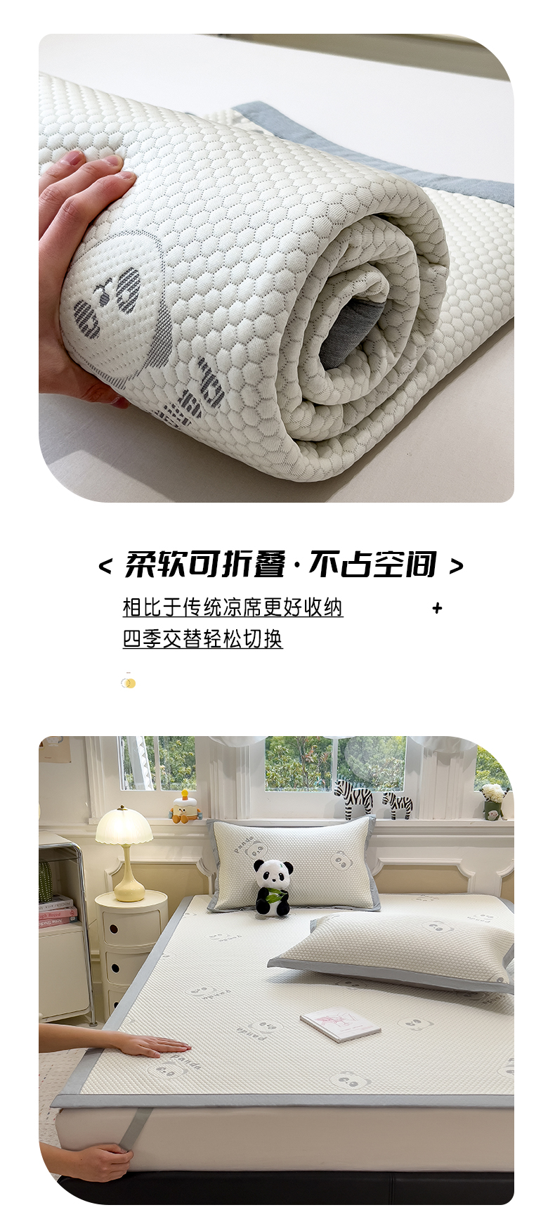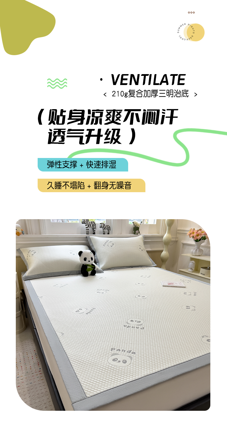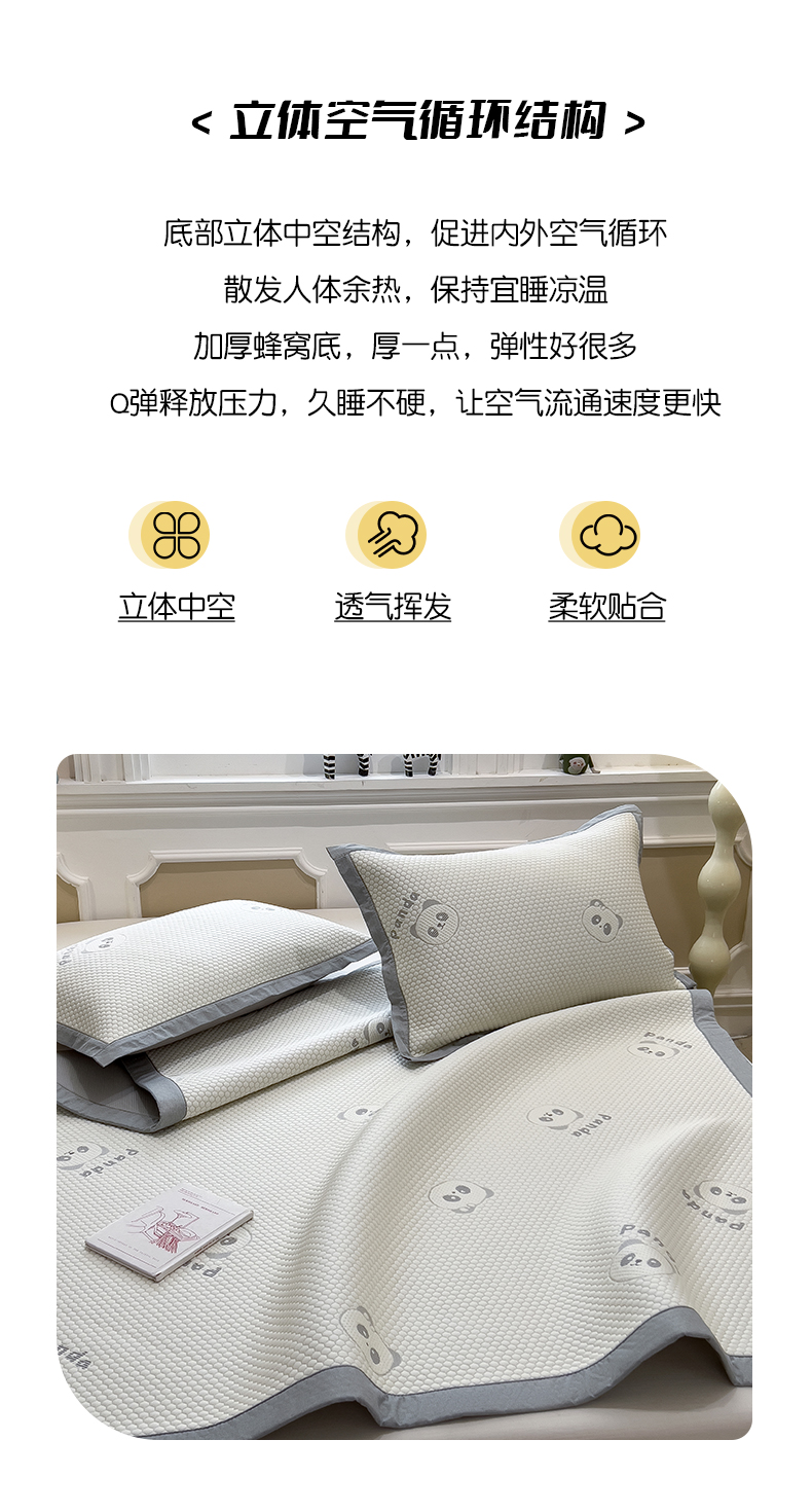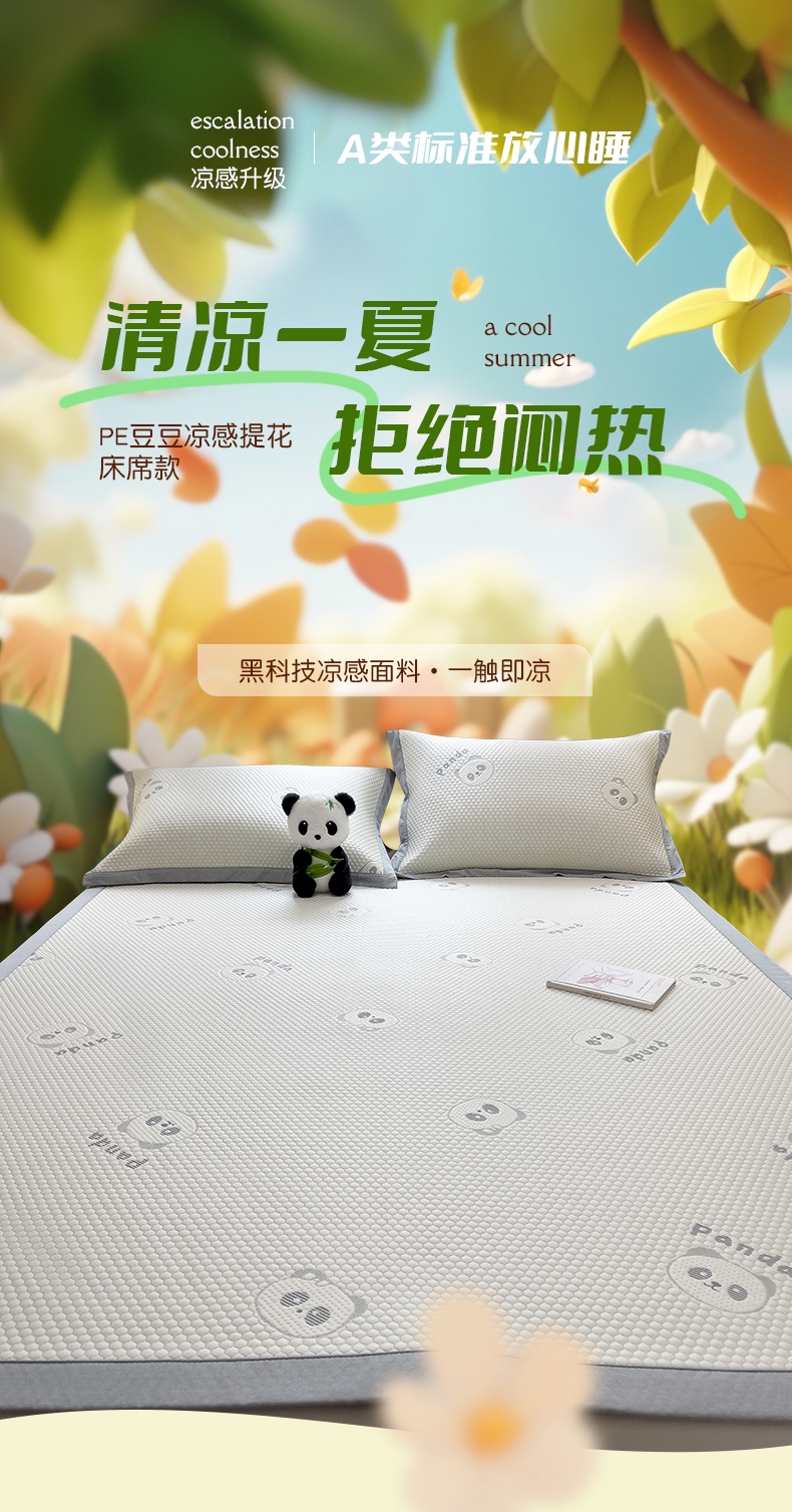 倾慕家纺 2026新款PE时尚风豆豆凉席卡通系列--床席款 经典熊猫床席款