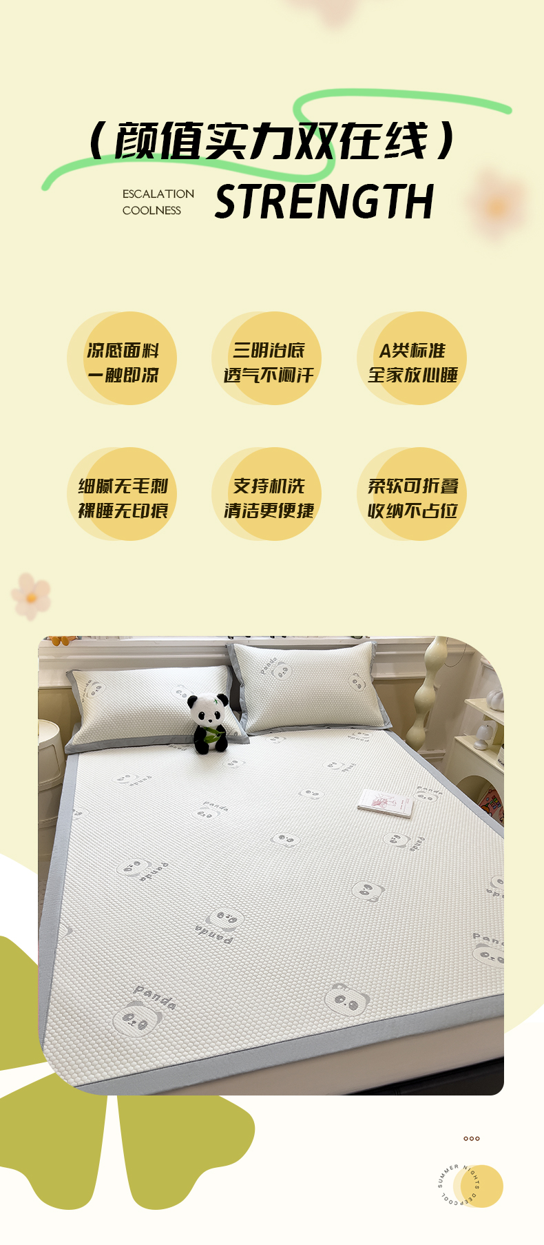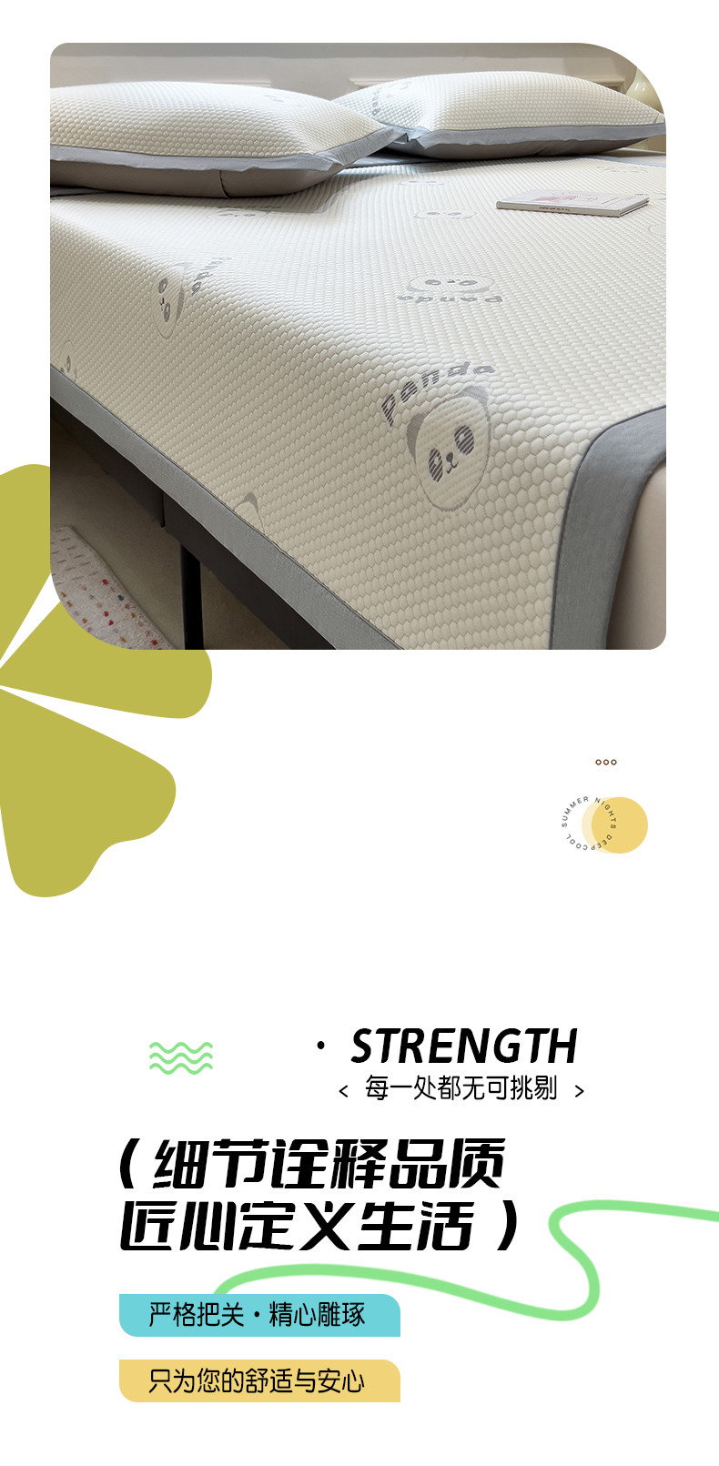 商品名称:倾慕家纺 2026新款PE时尚风豆豆凉席卡通系列--床席款 经典熊猫床席款
