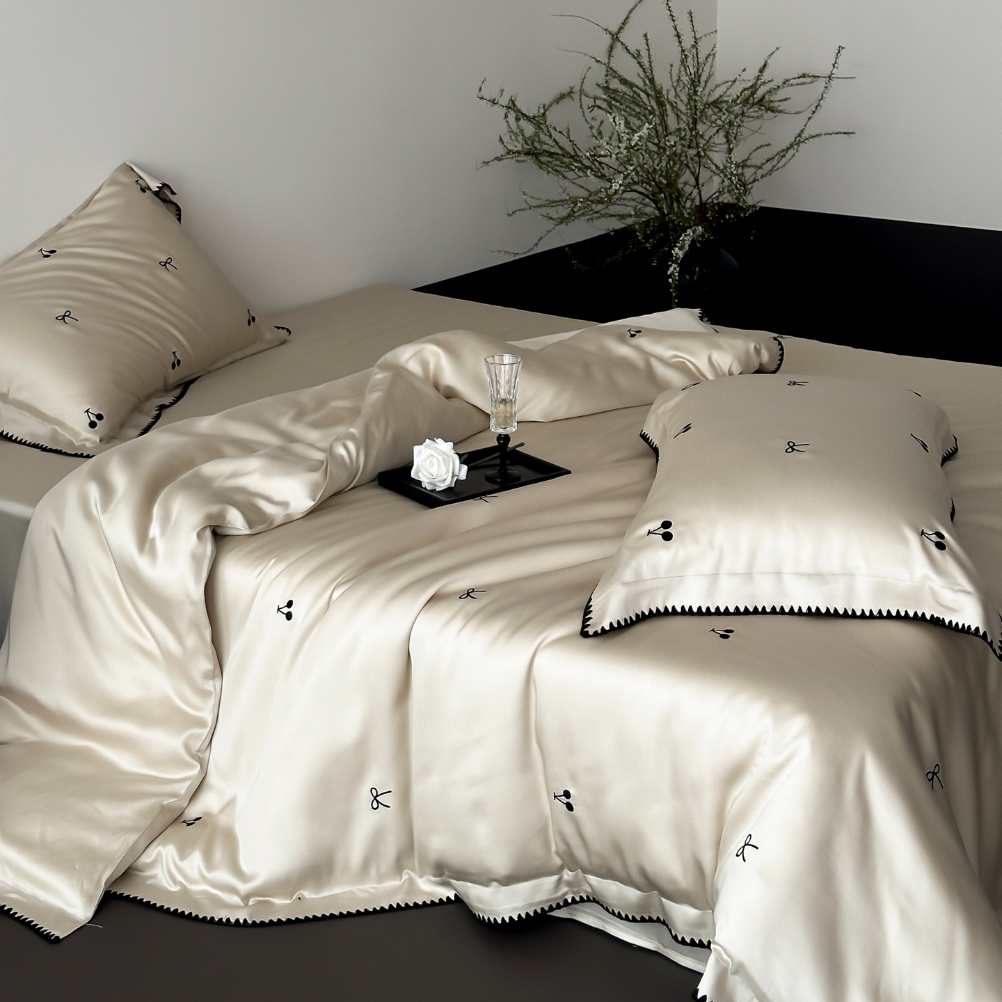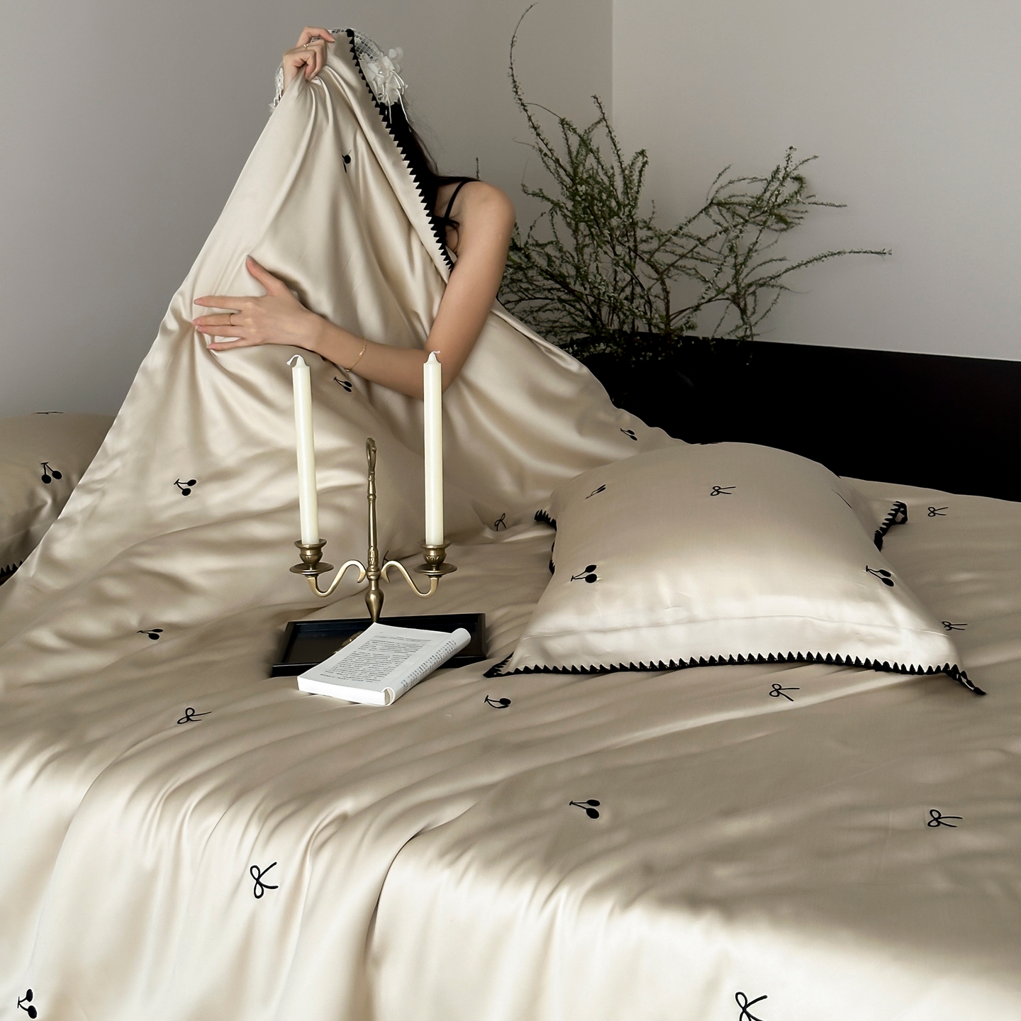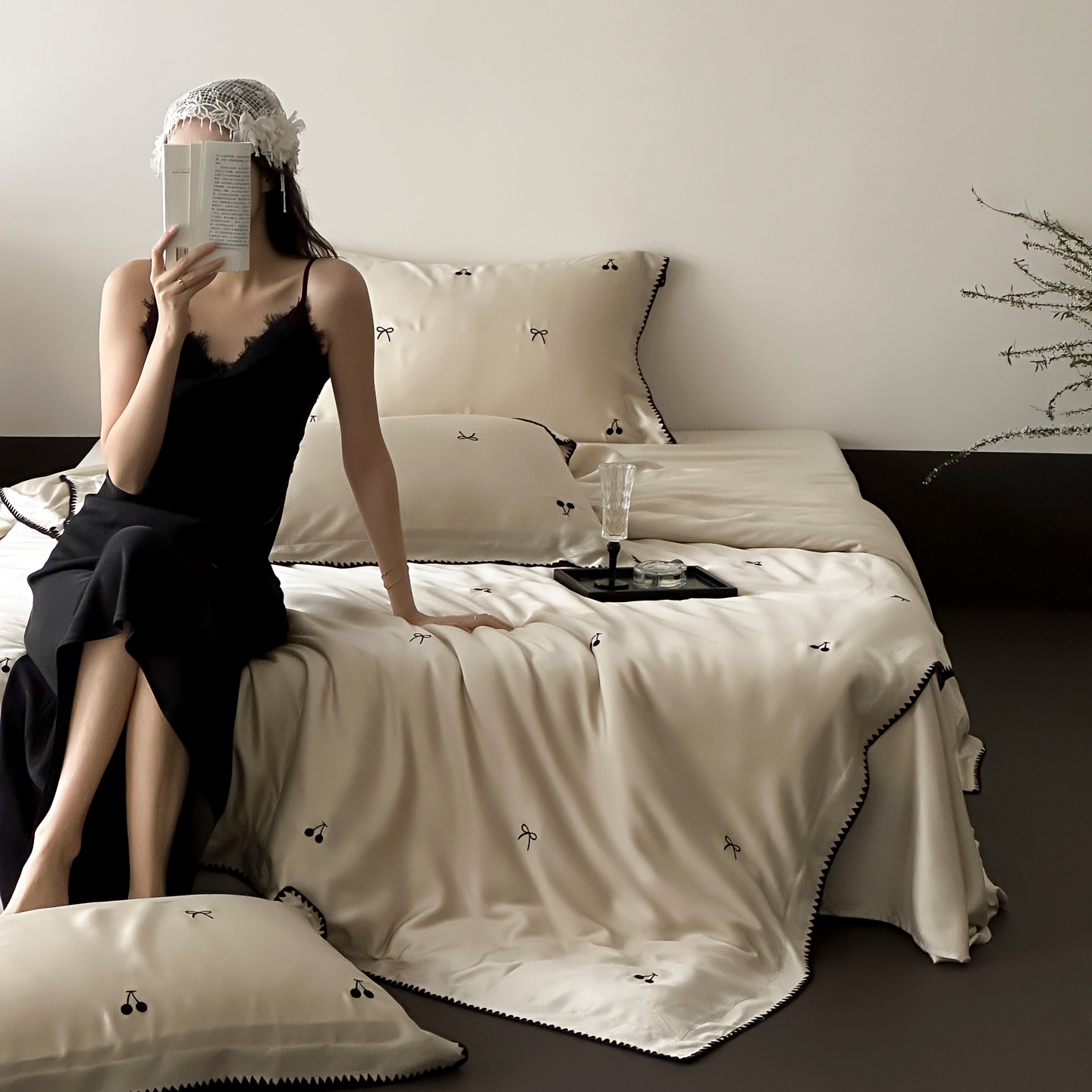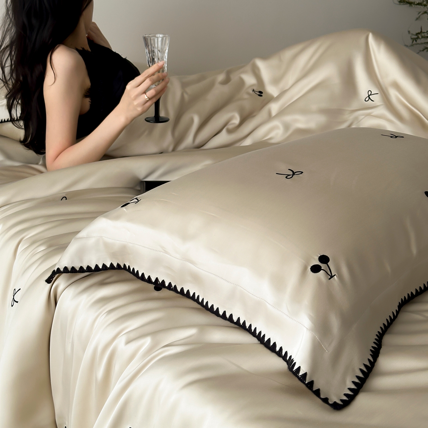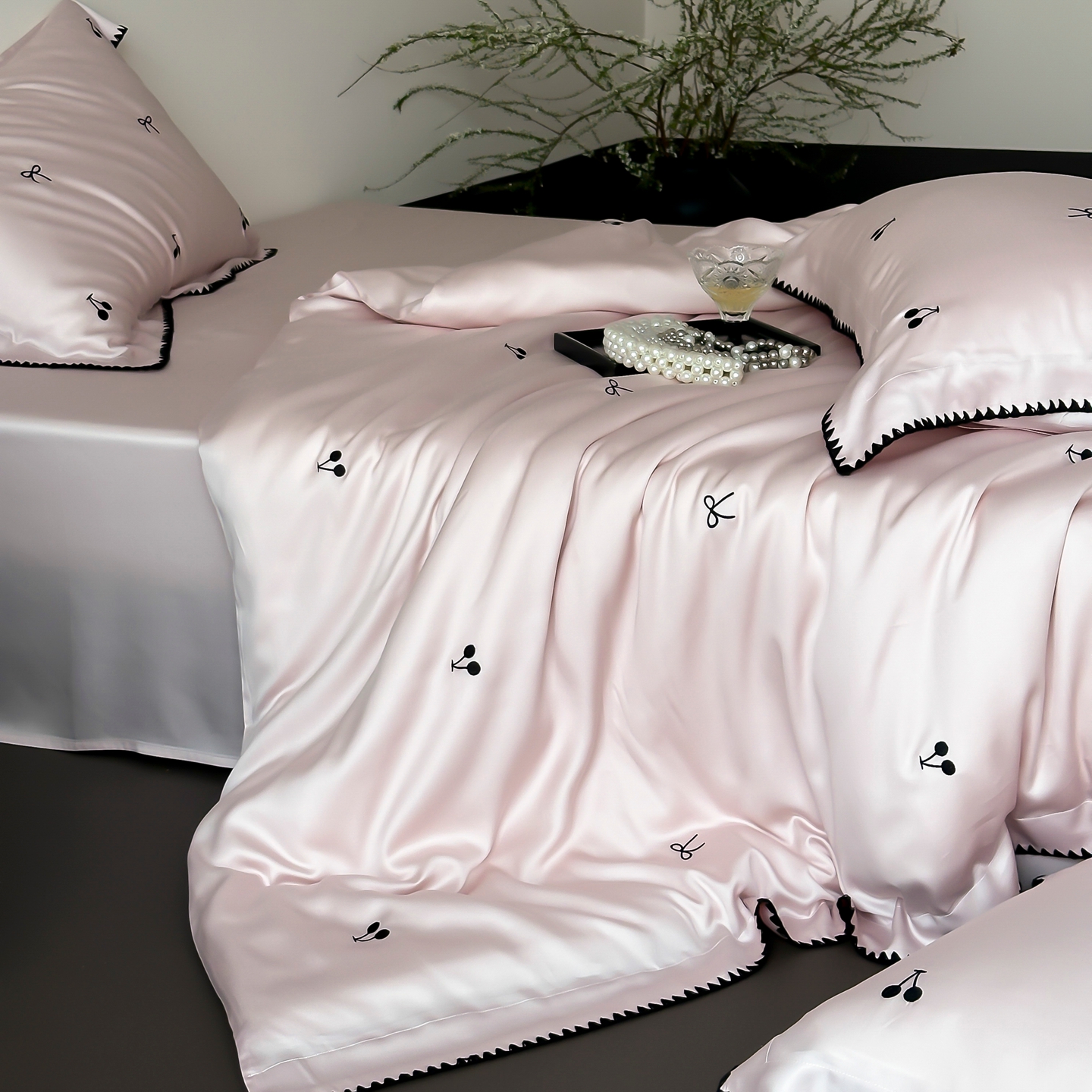 商品名称:(总)时亿家居 2026春夏新款兰精天丝四件套-黑樱梦境