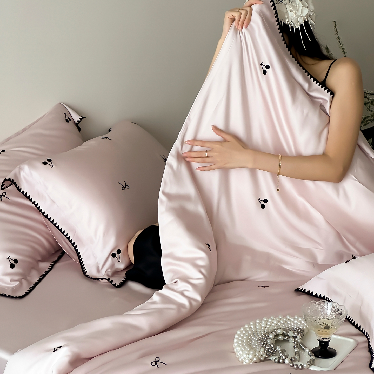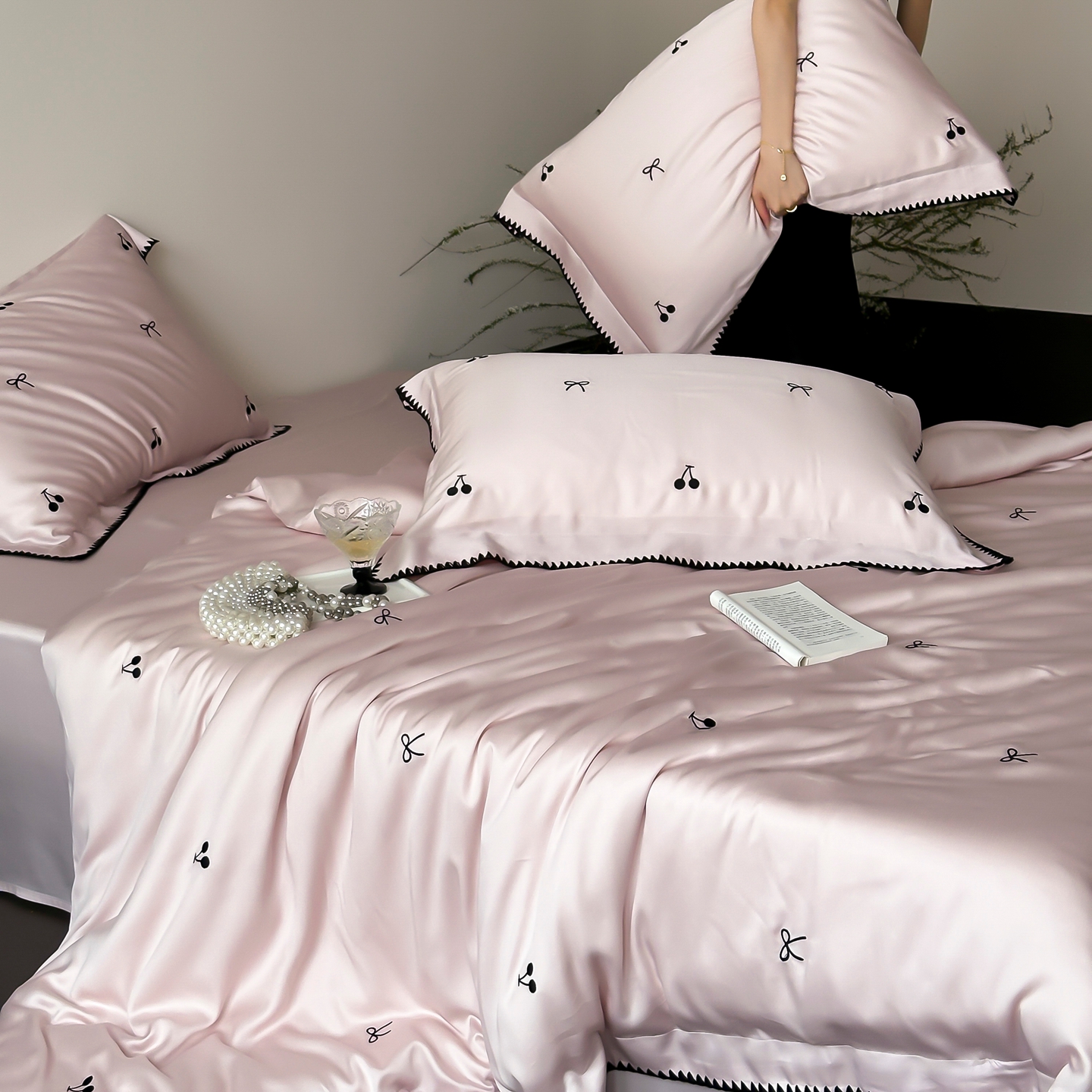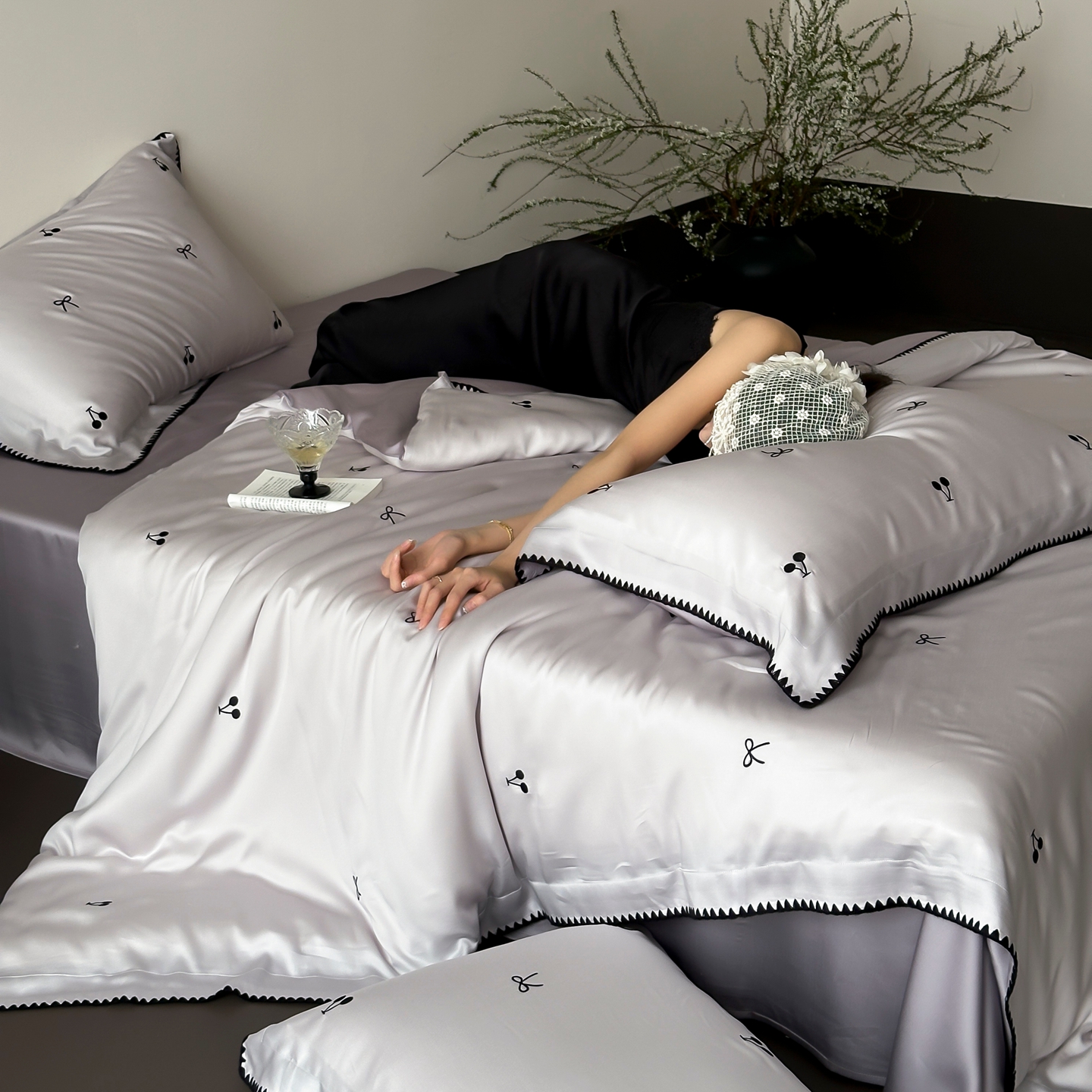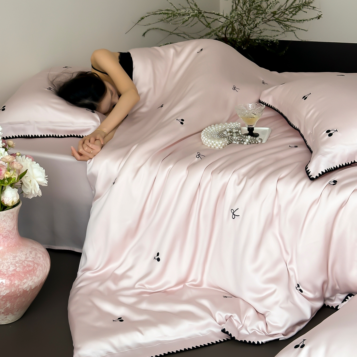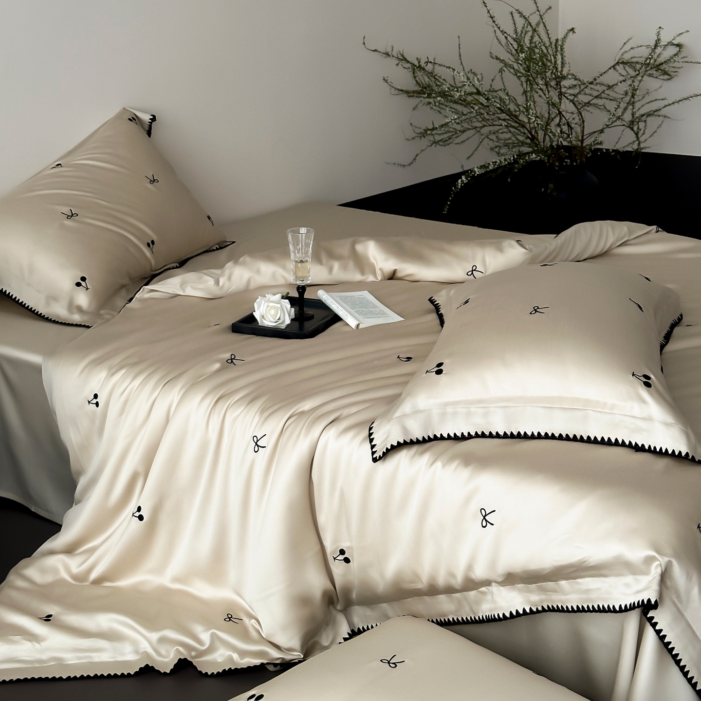 商品名称:(总)时亿家居 2026春夏新款兰精天丝四件套-黑樱梦境