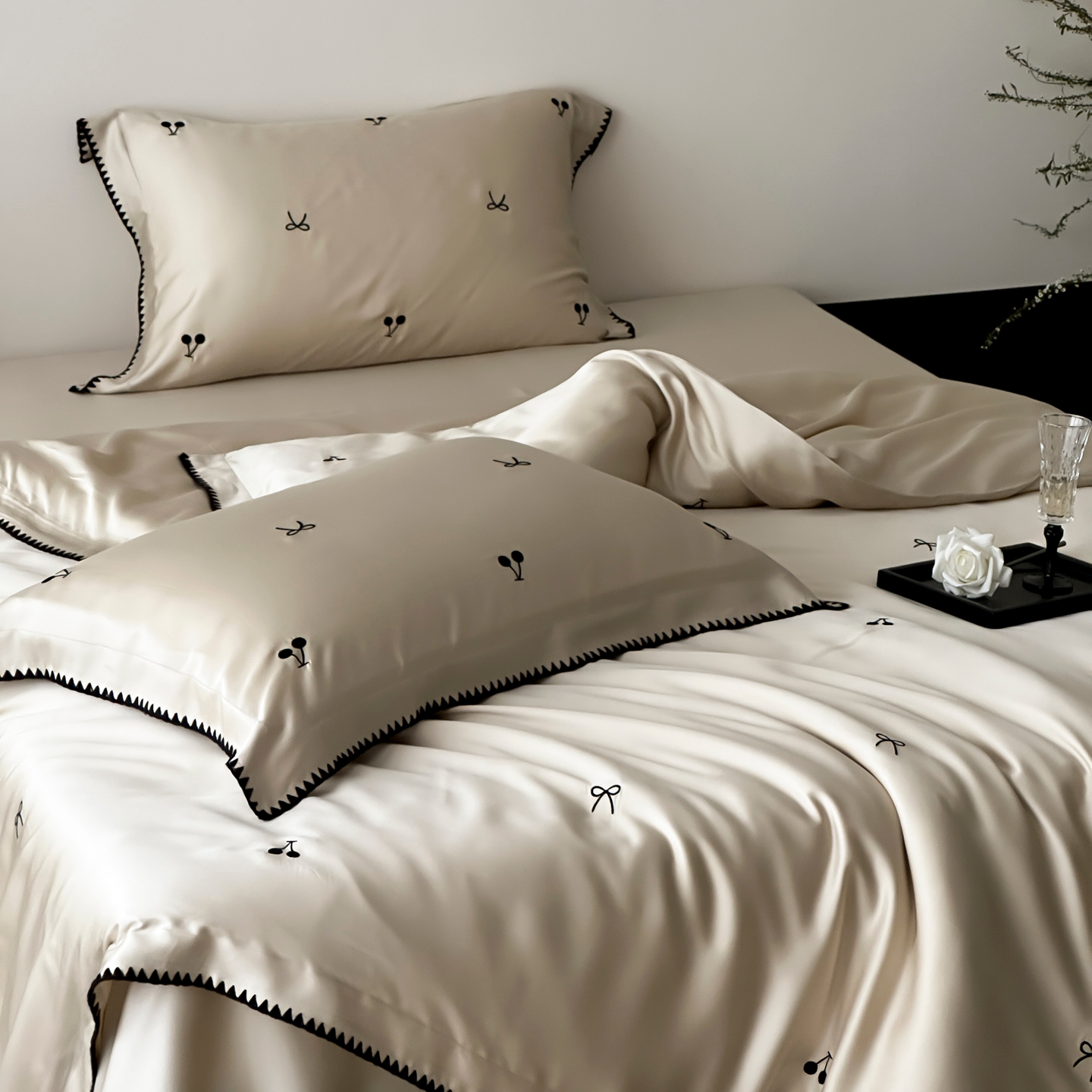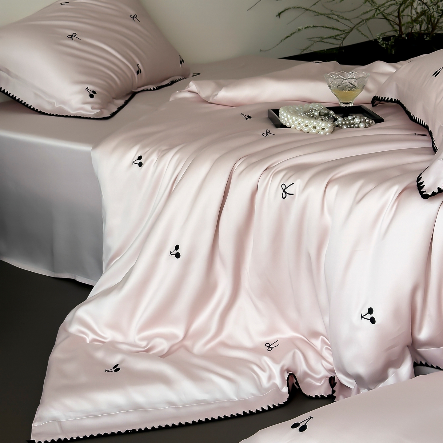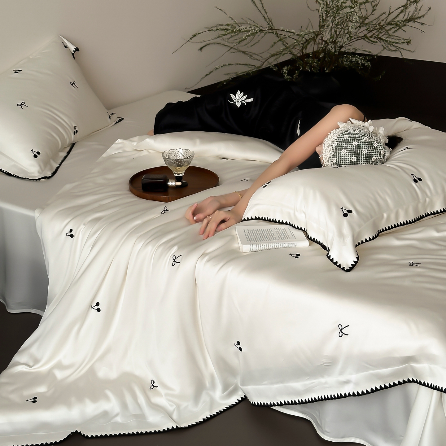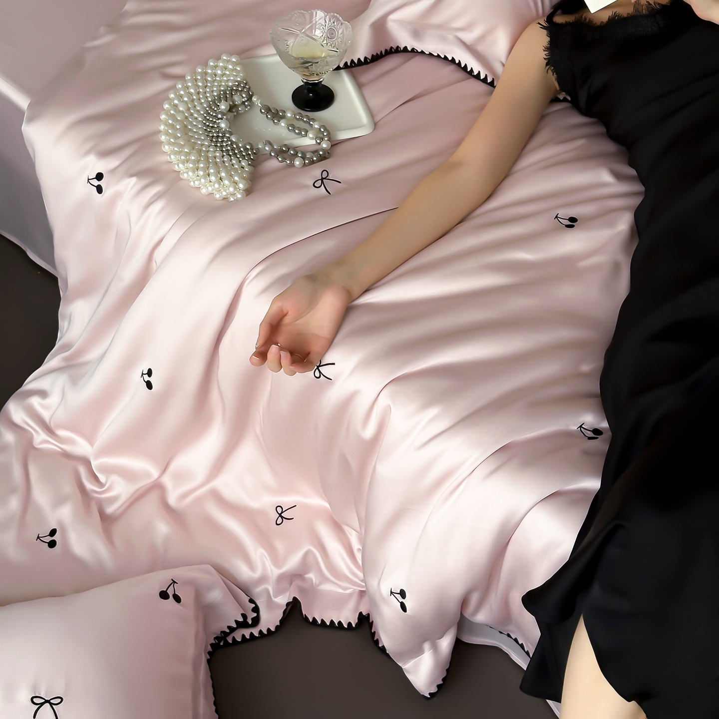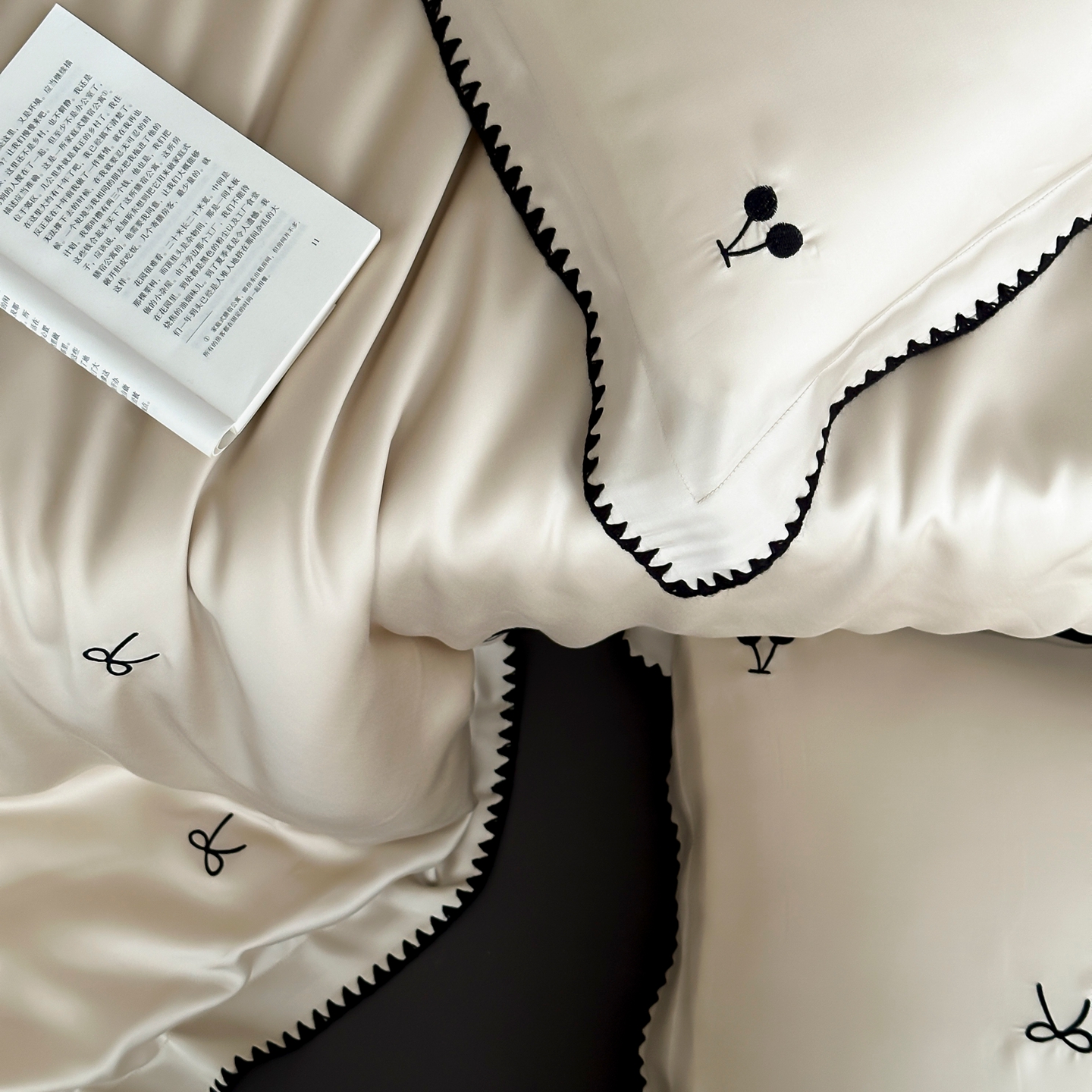 商品名称:(总)时亿家居 2026春夏新款兰精天丝四件套-黑樱梦境