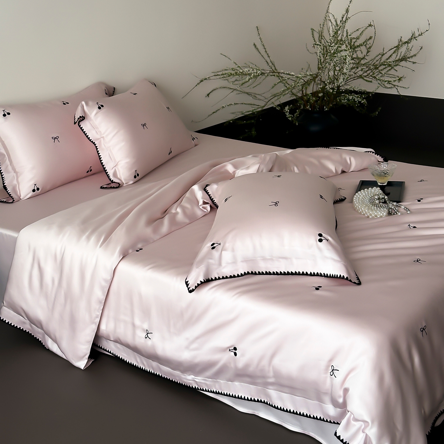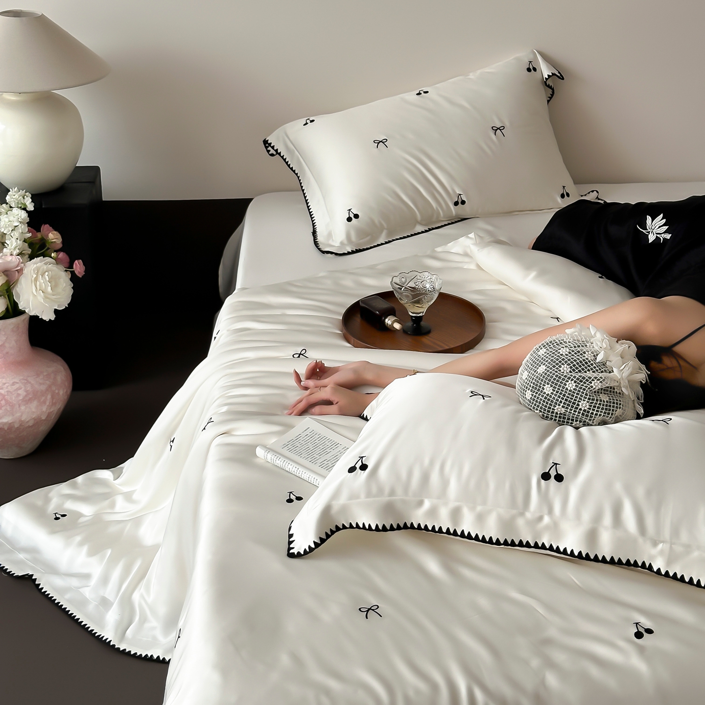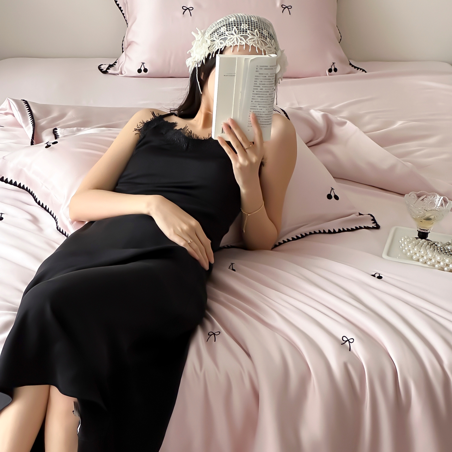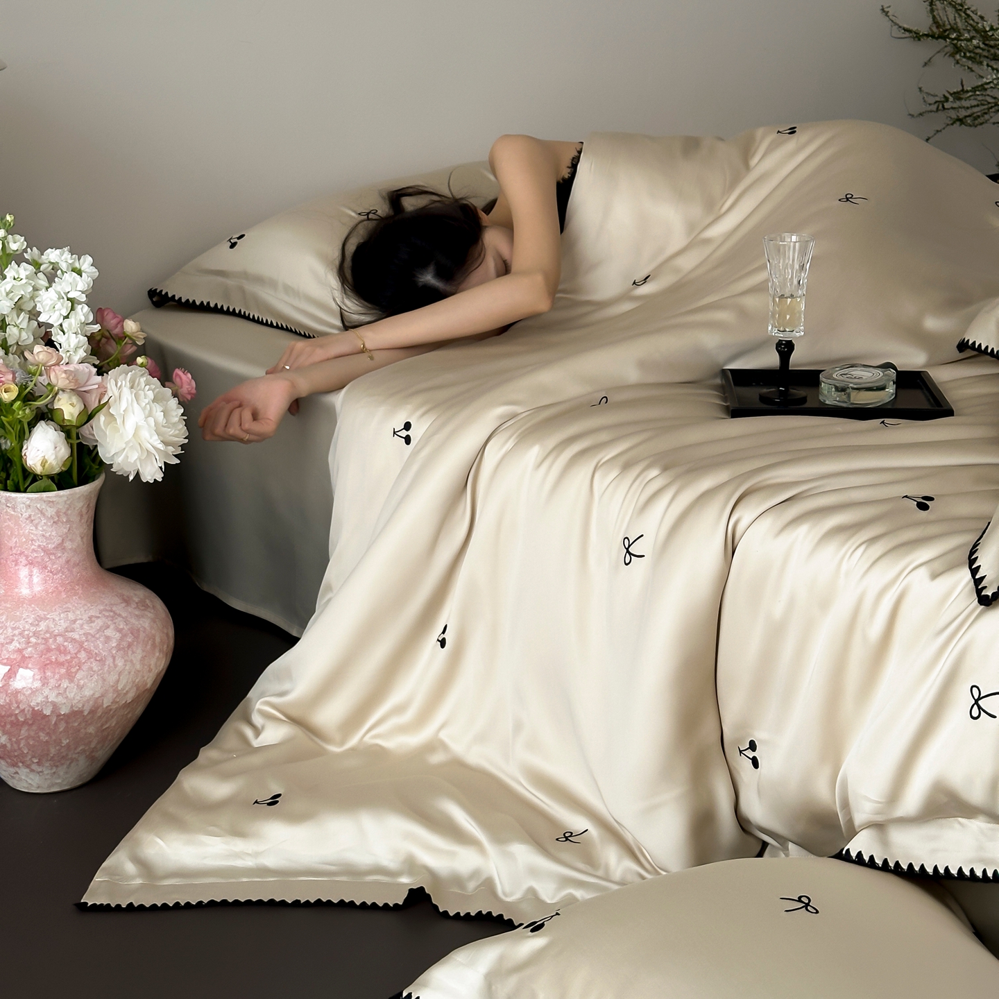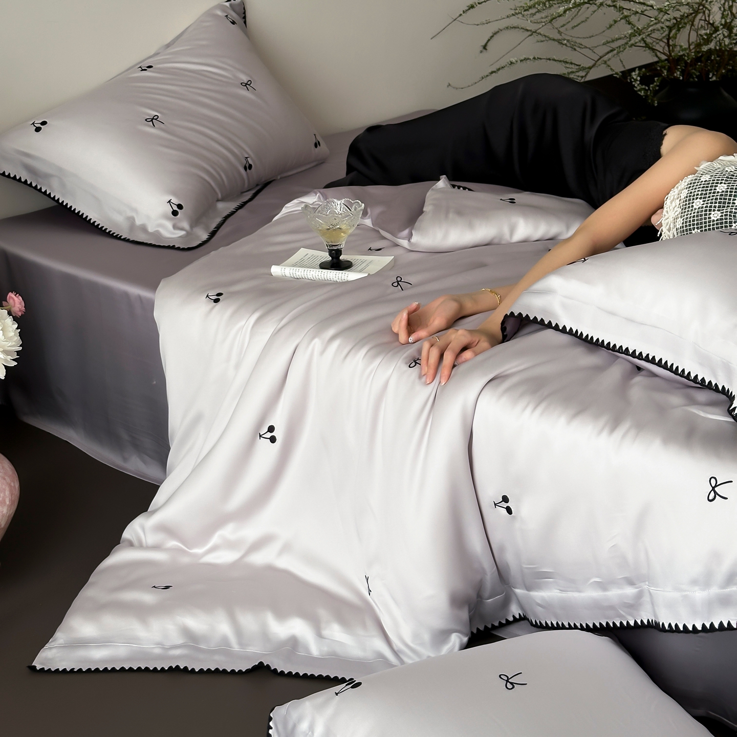 商品名称:(总)时亿家居 2026春夏新款兰精天丝四件套-黑樱梦境