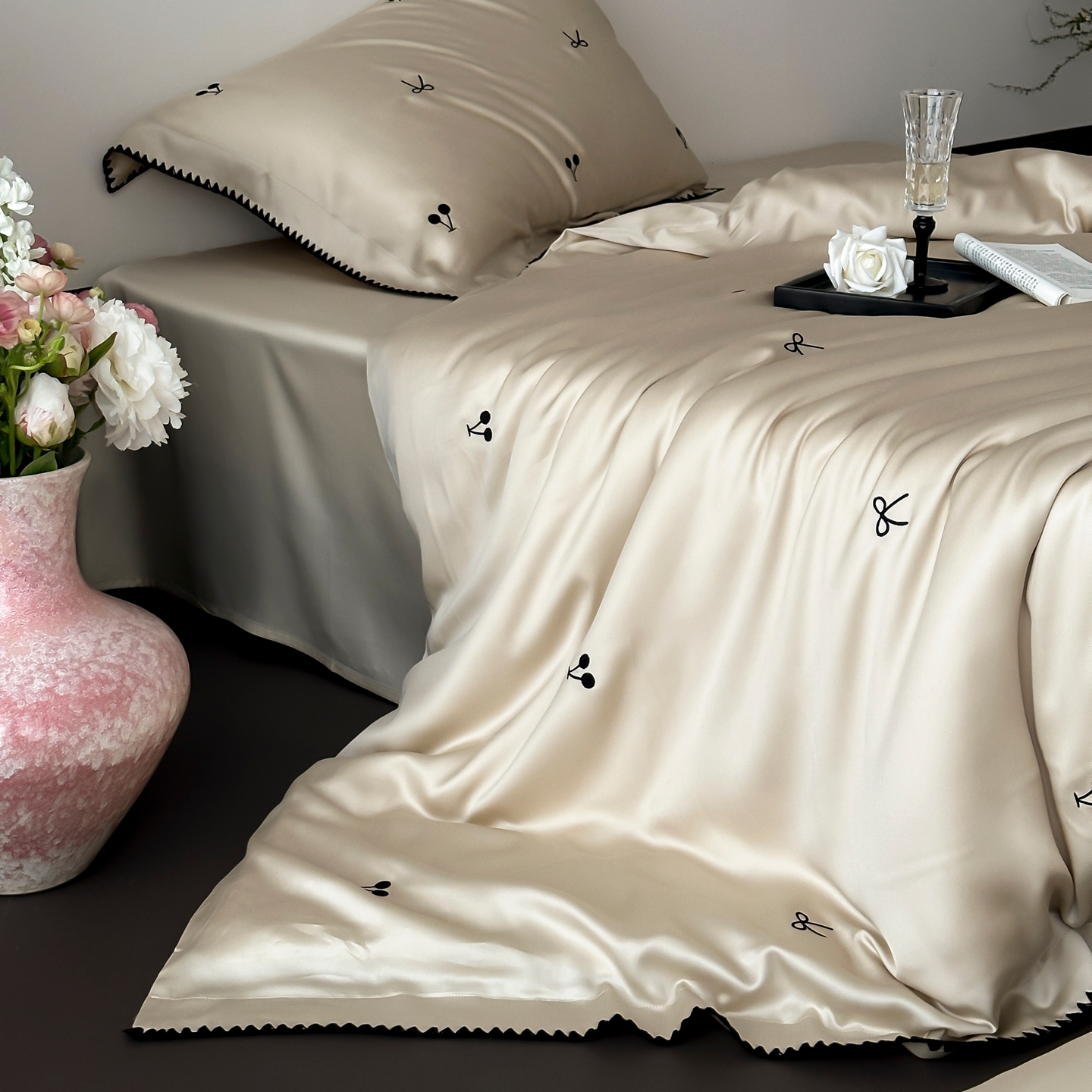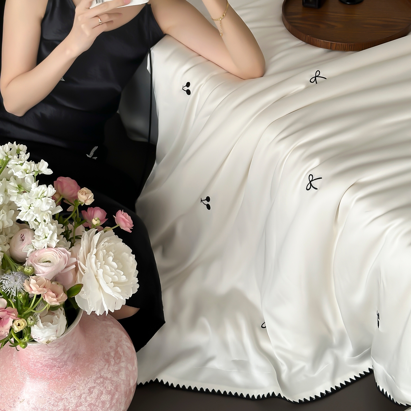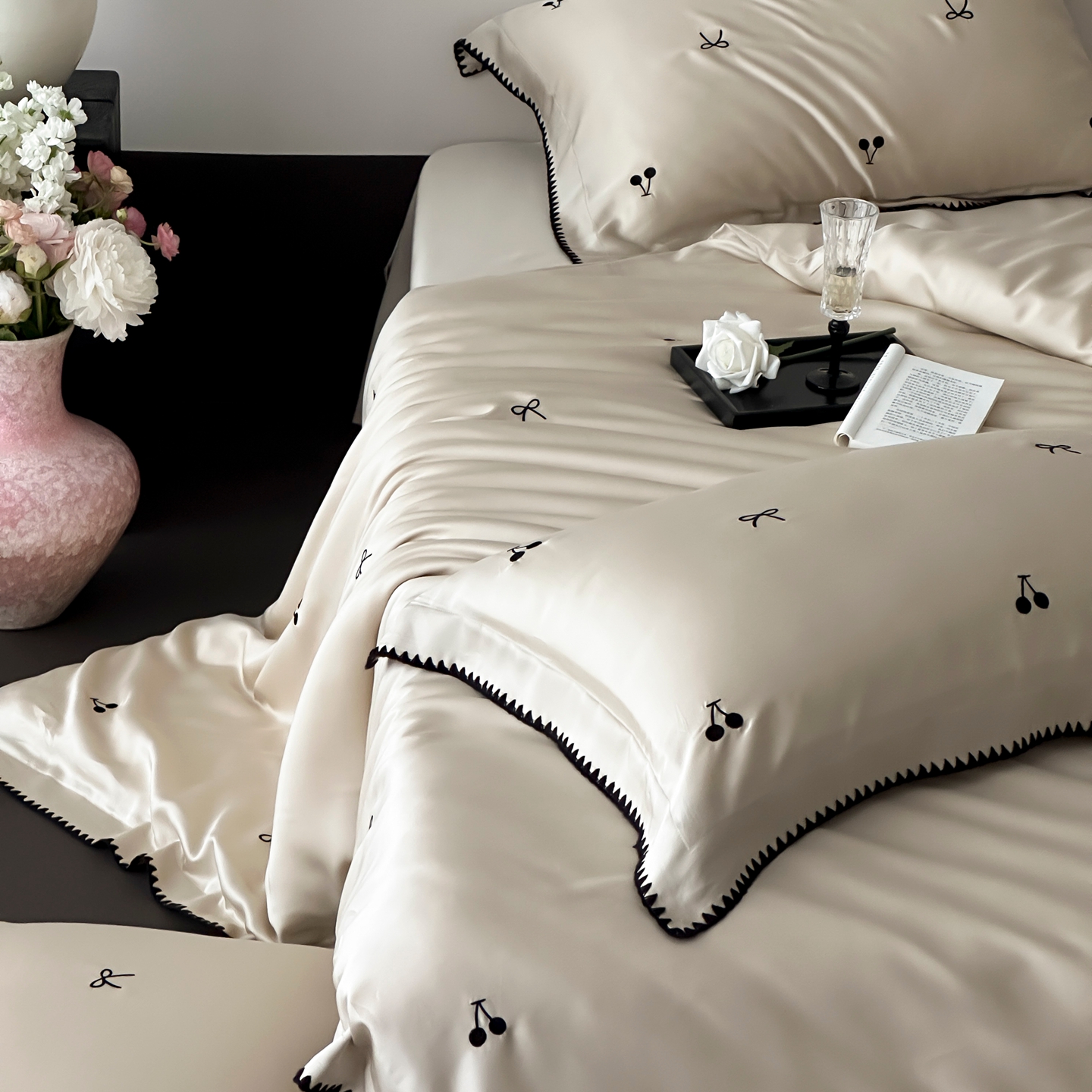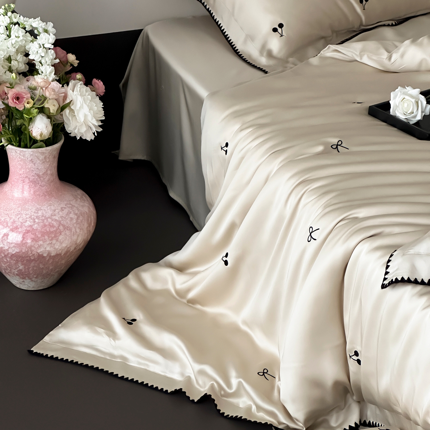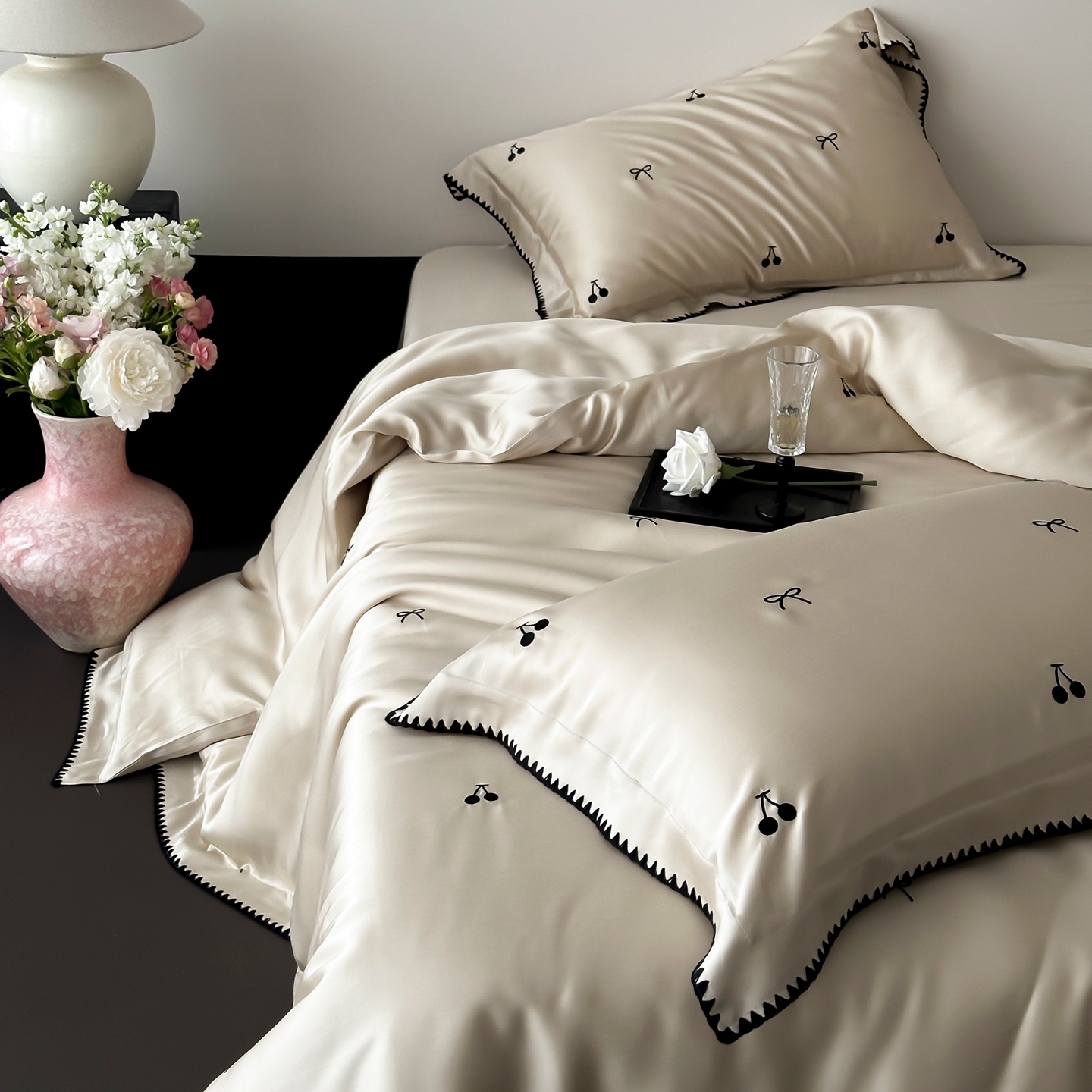 商品名称:(总)时亿家居 2026春夏新款兰精天丝四件套-黑樱梦境