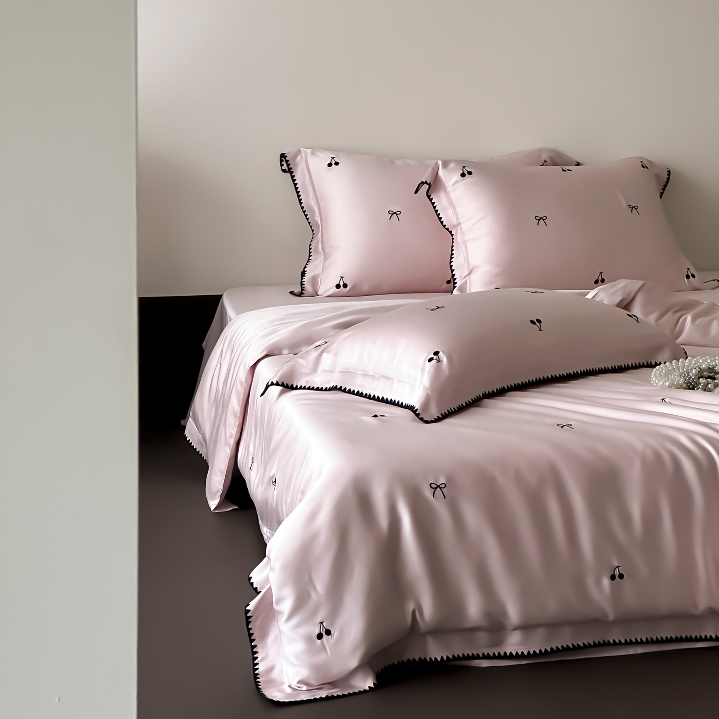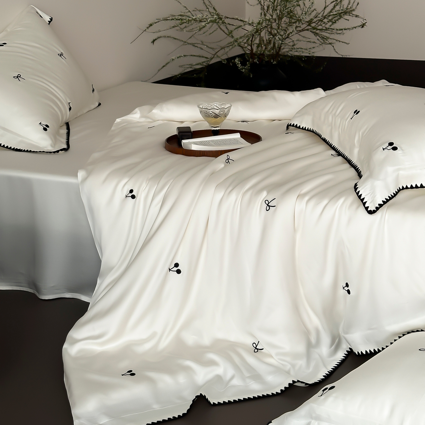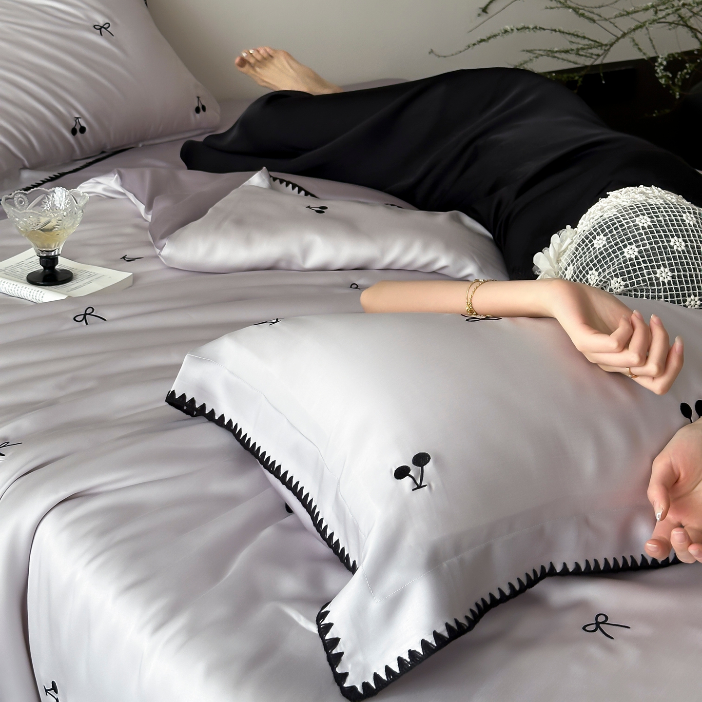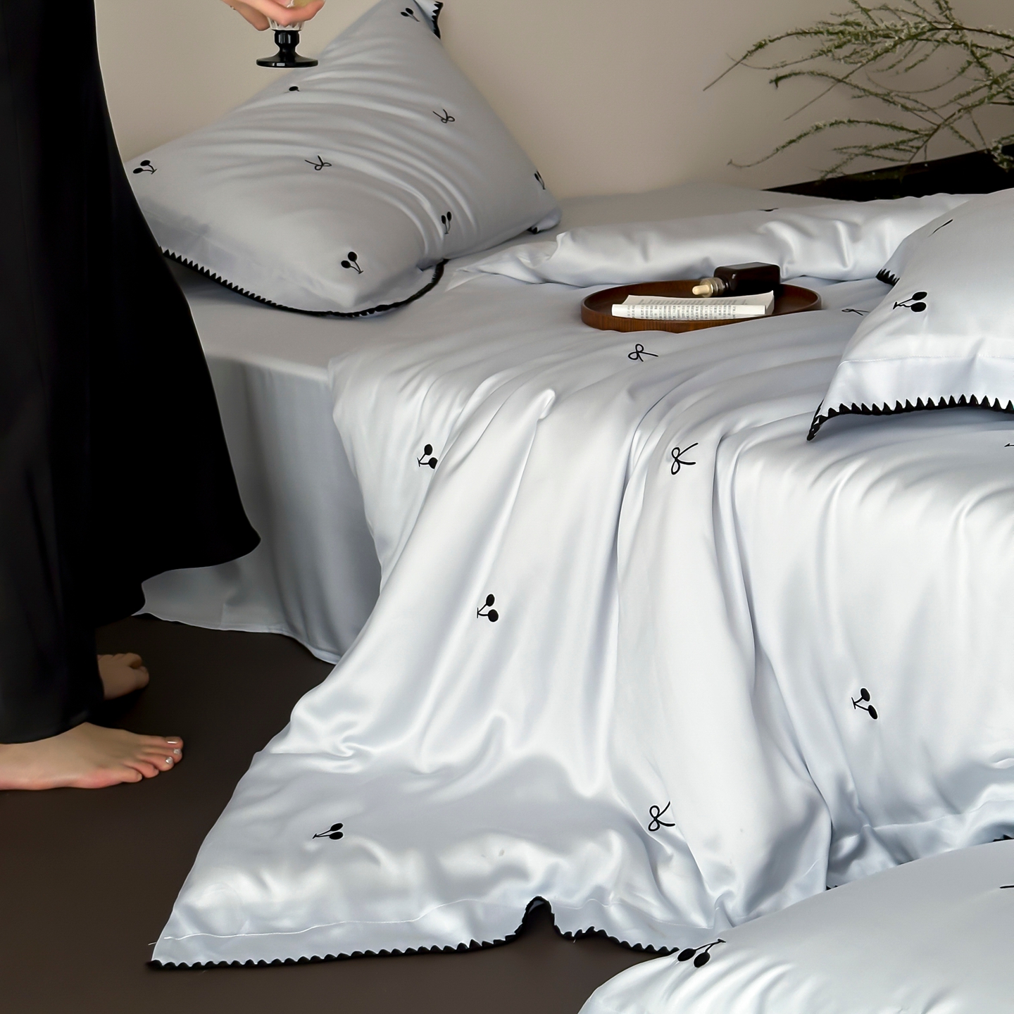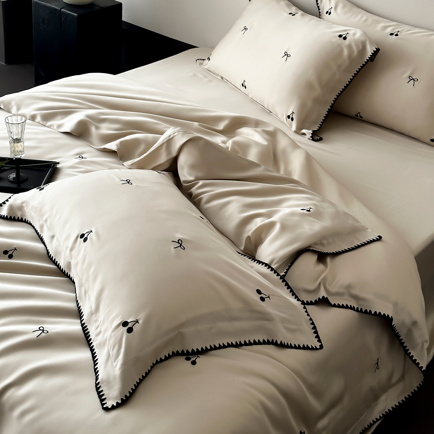 商品名称:(总)时亿家居 2026春夏新款兰精天丝四件套-黑樱梦境