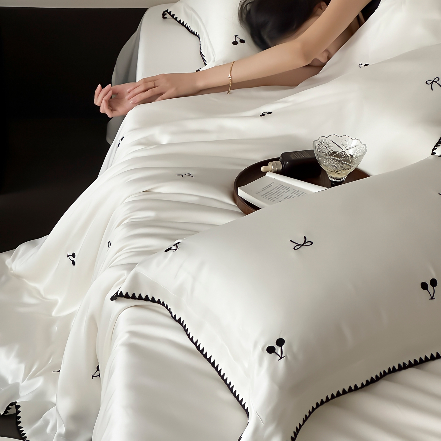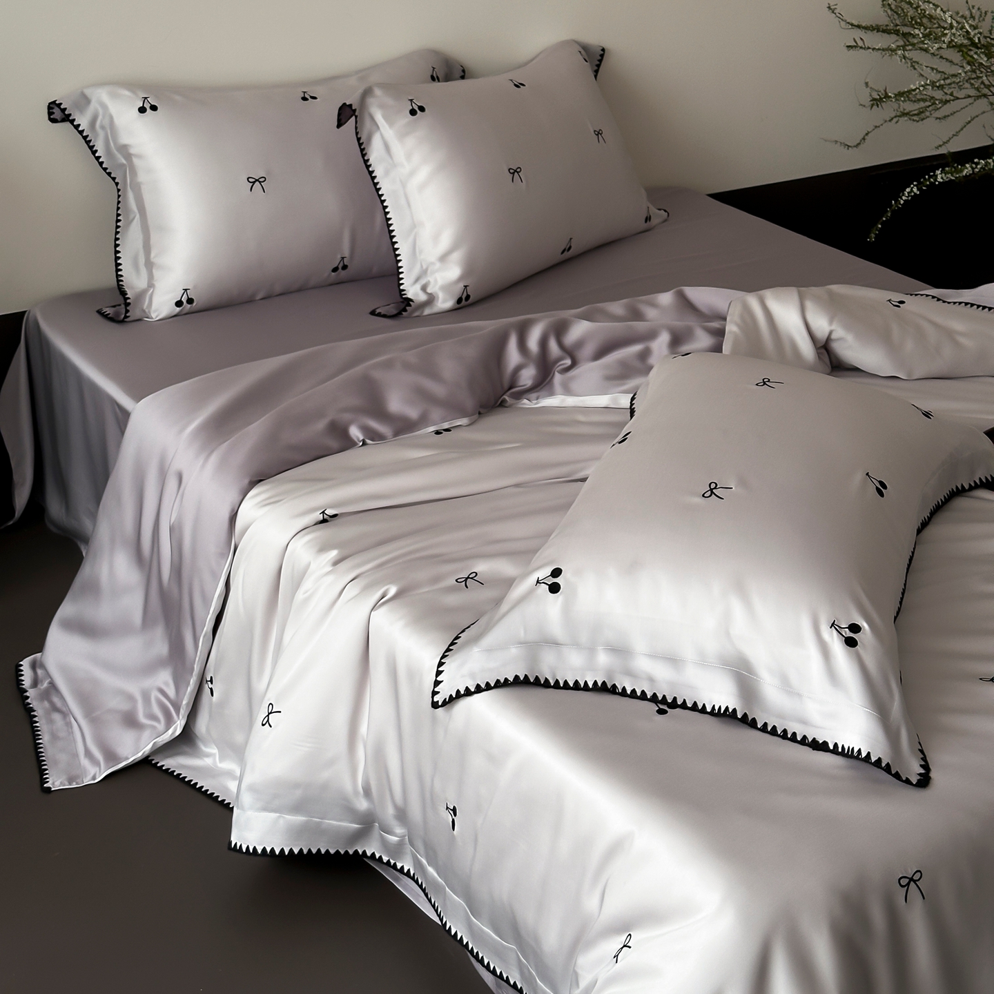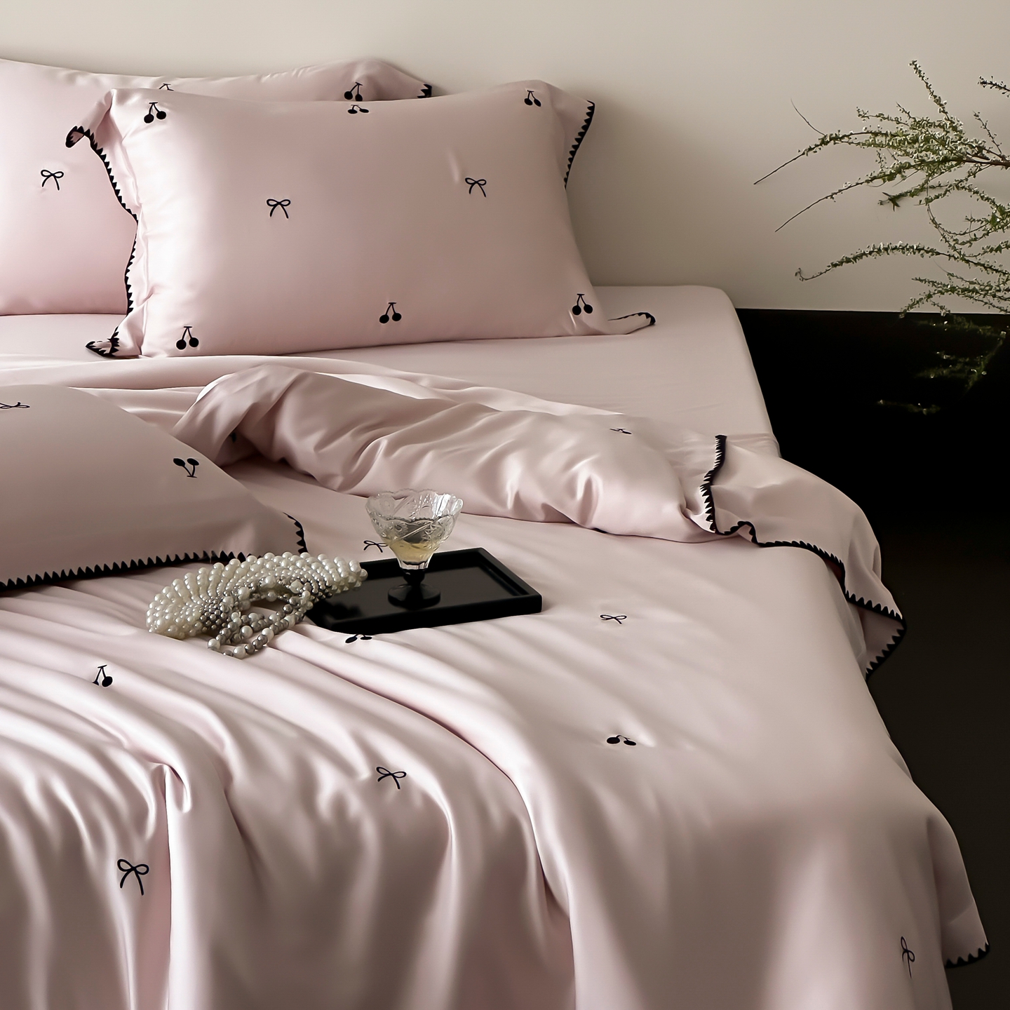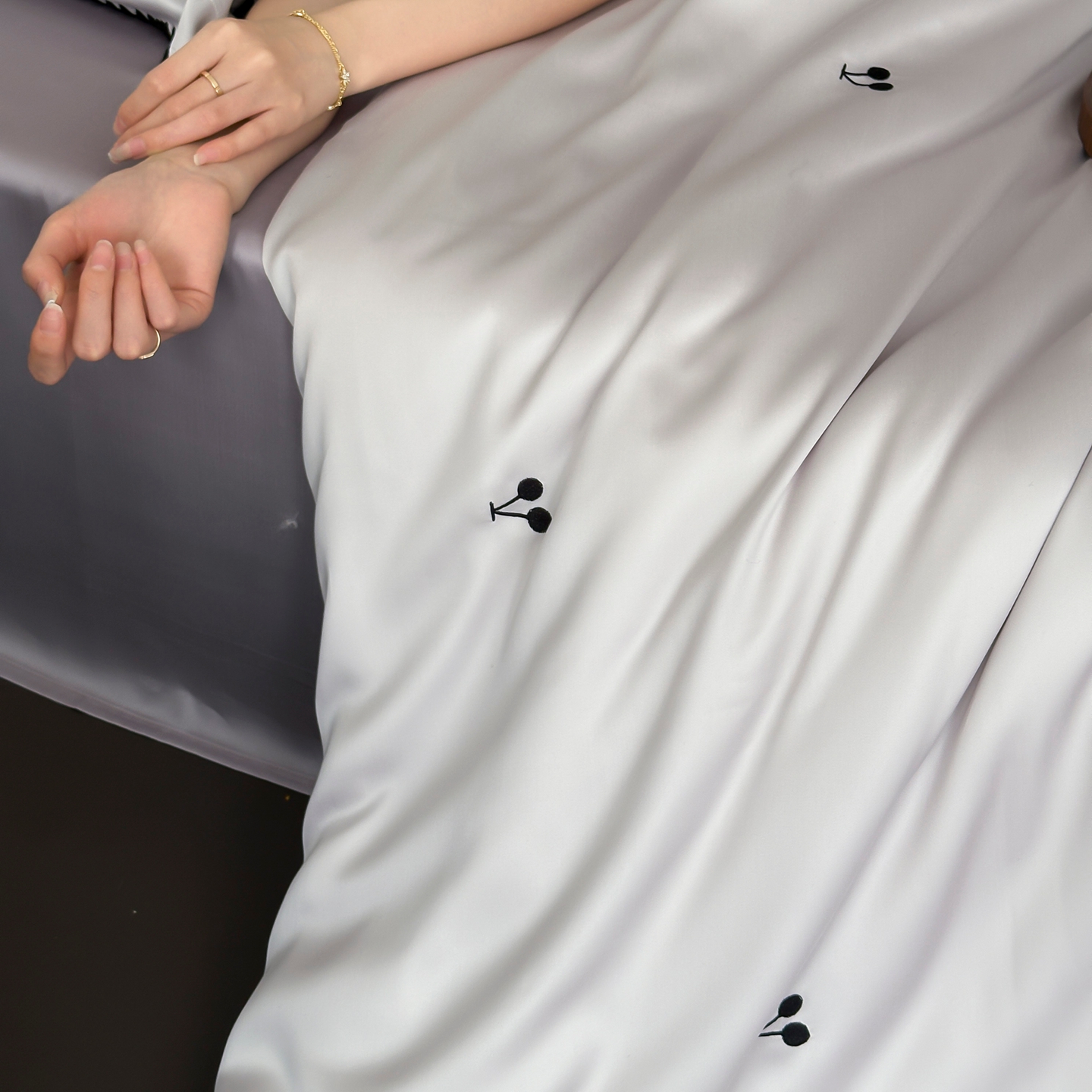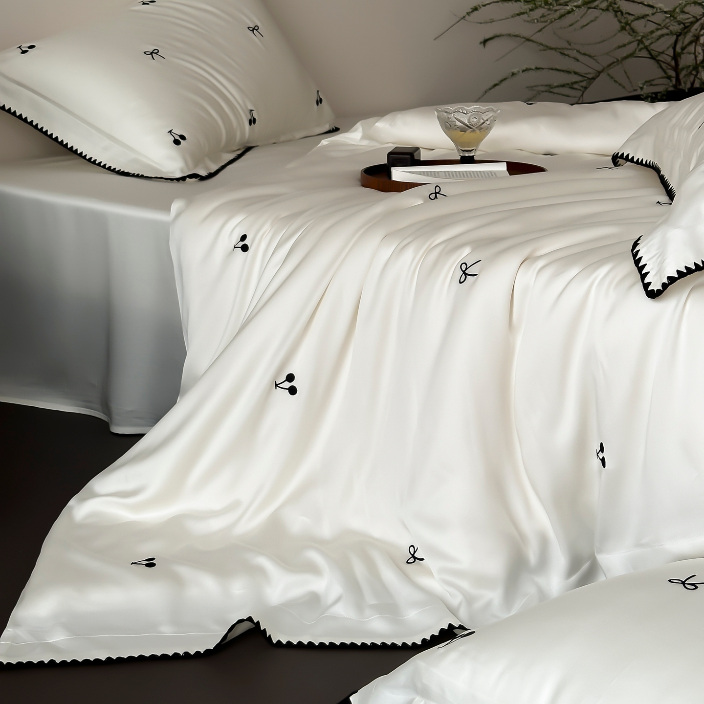 商品名称:(总)时亿家居 2026春夏新款兰精天丝四件套-黑樱梦境