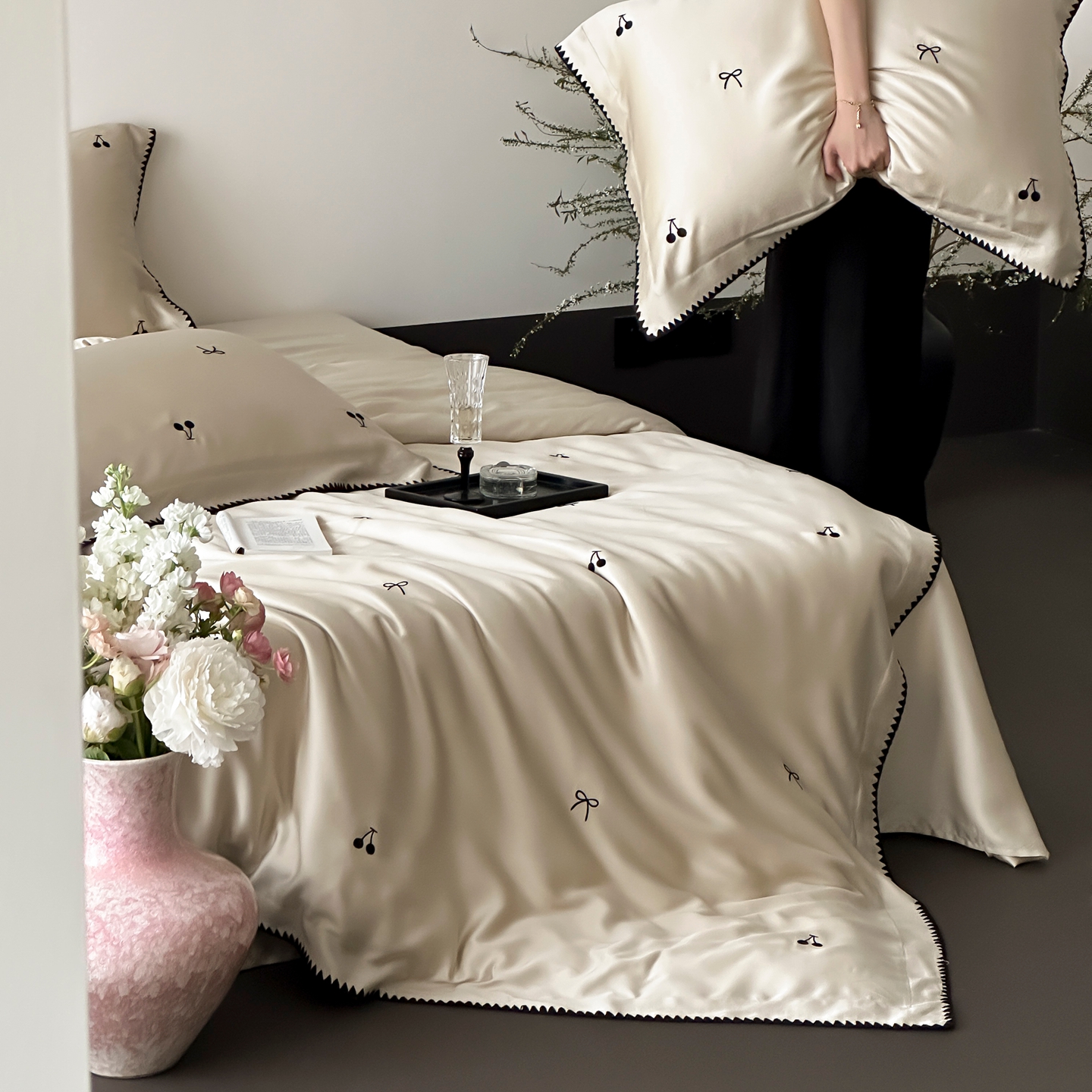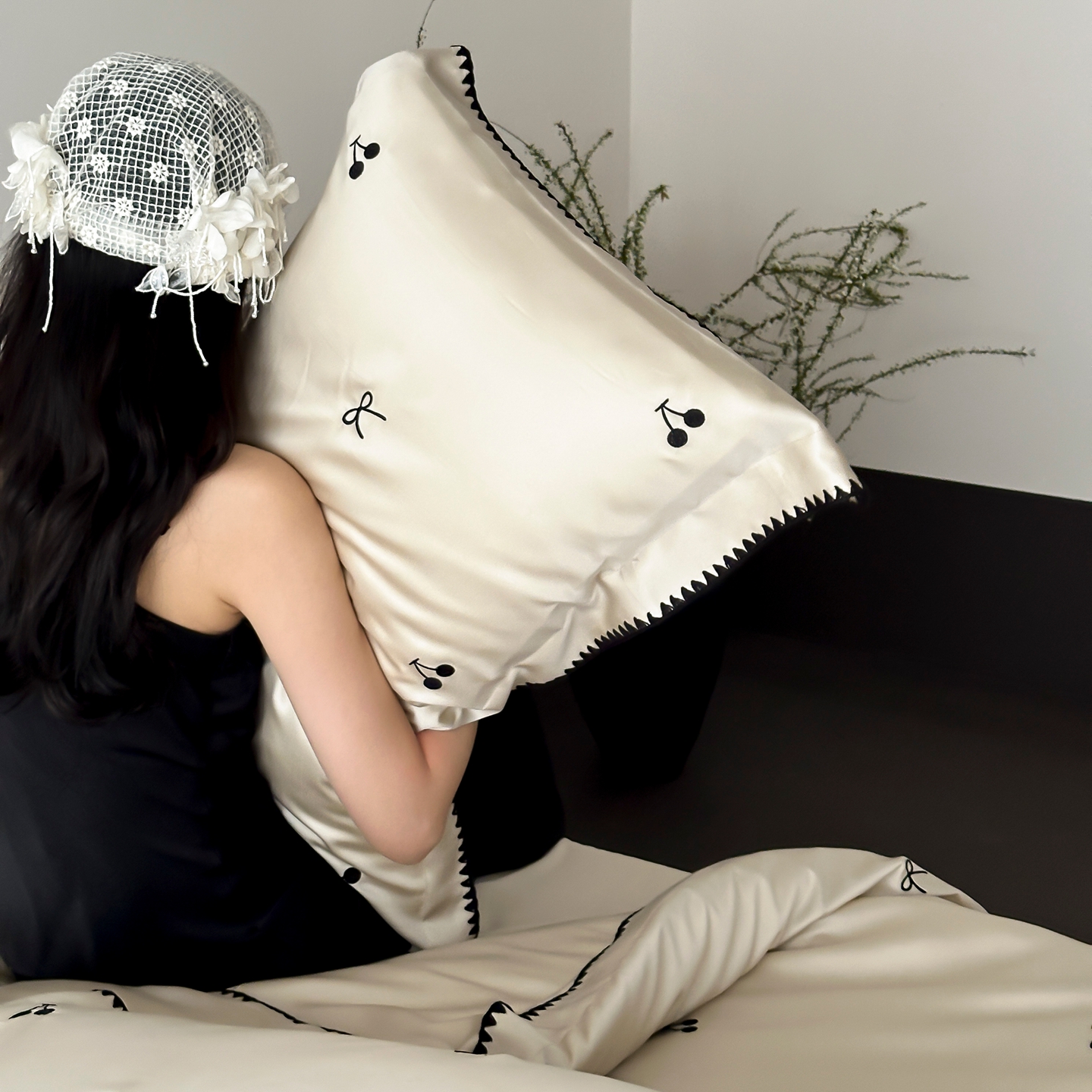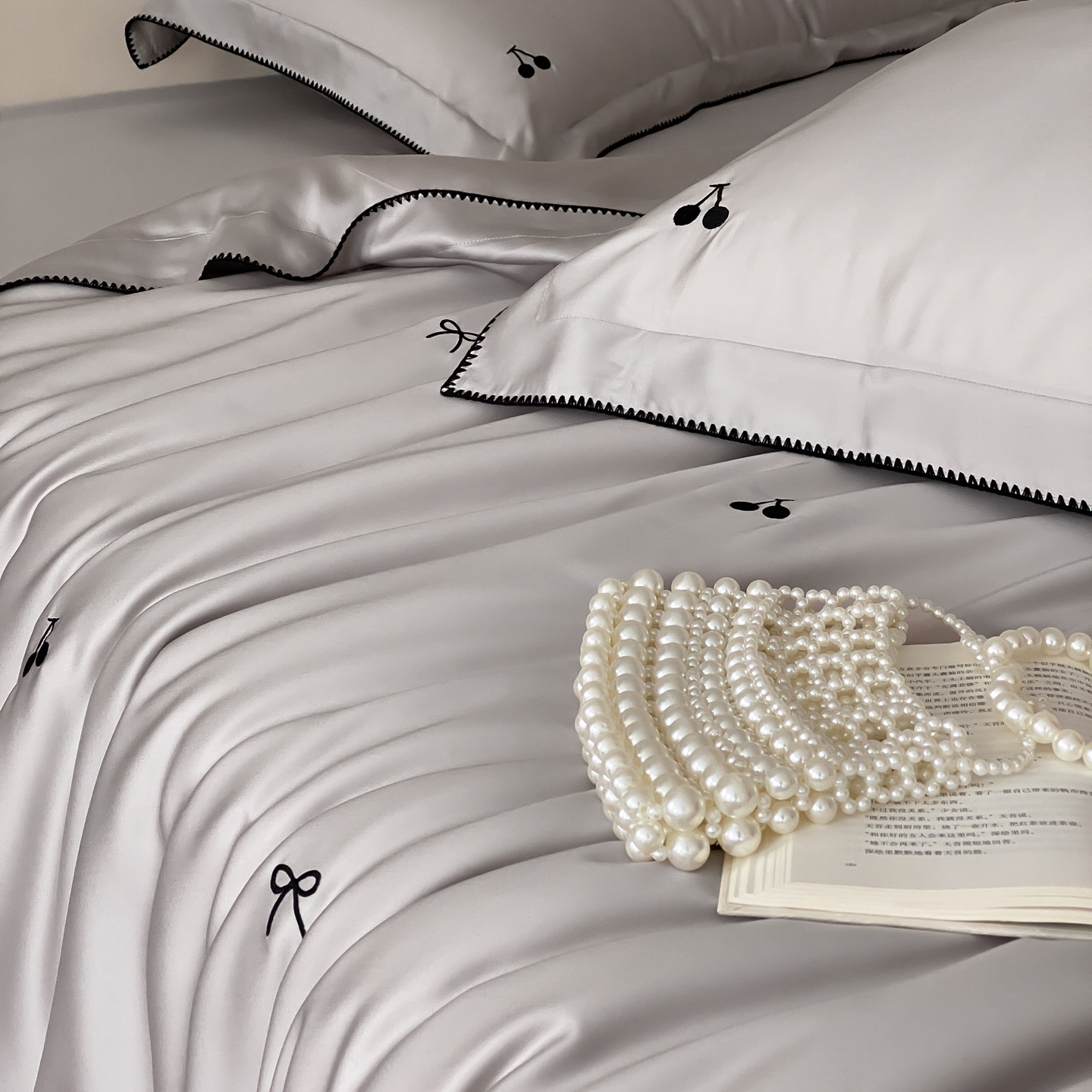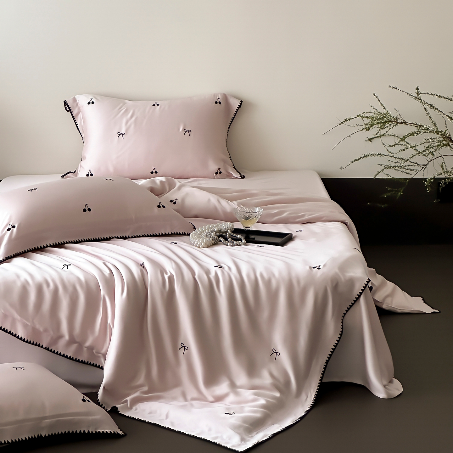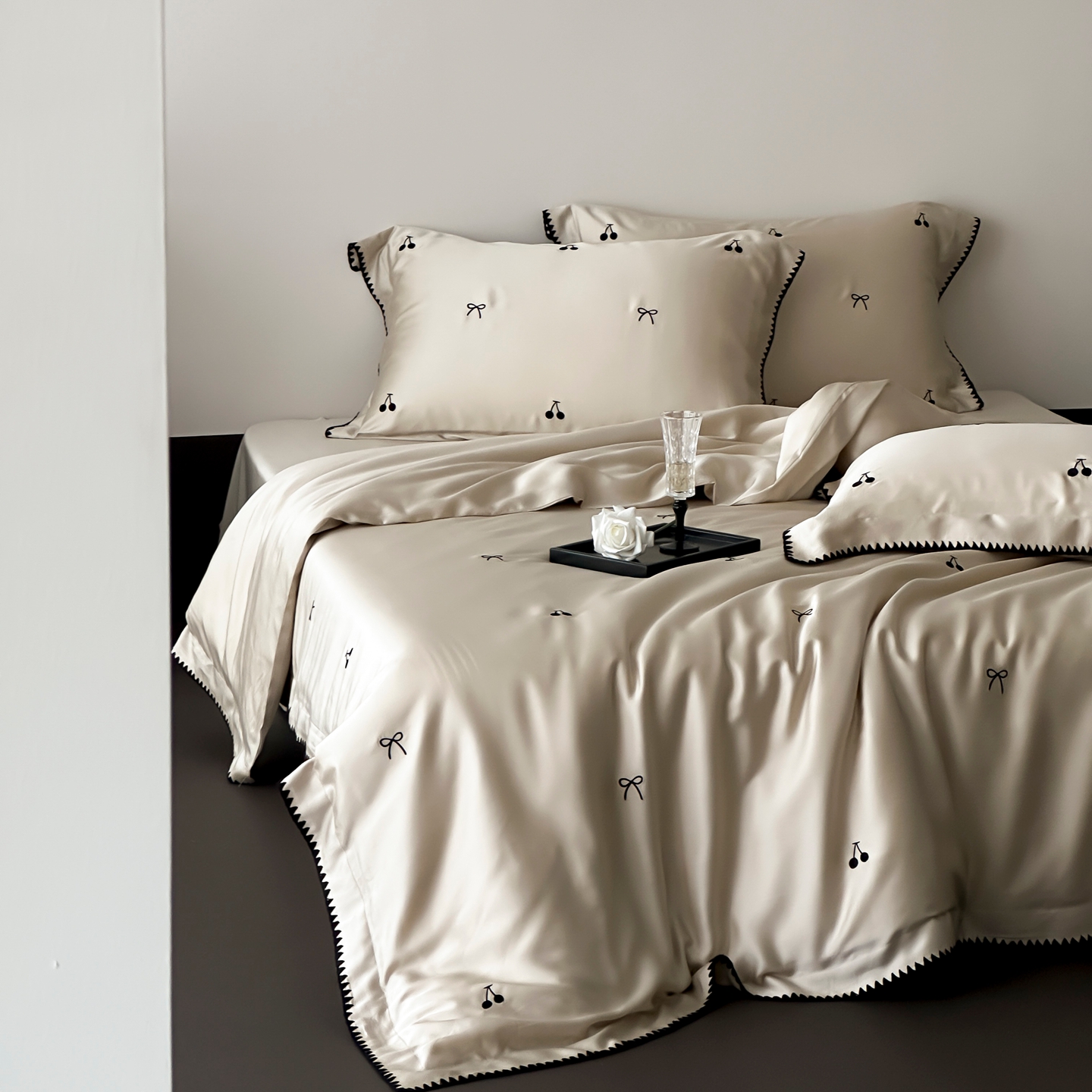 商品名称:(总)时亿家居 2026春夏新款兰精天丝四件套-黑樱梦境