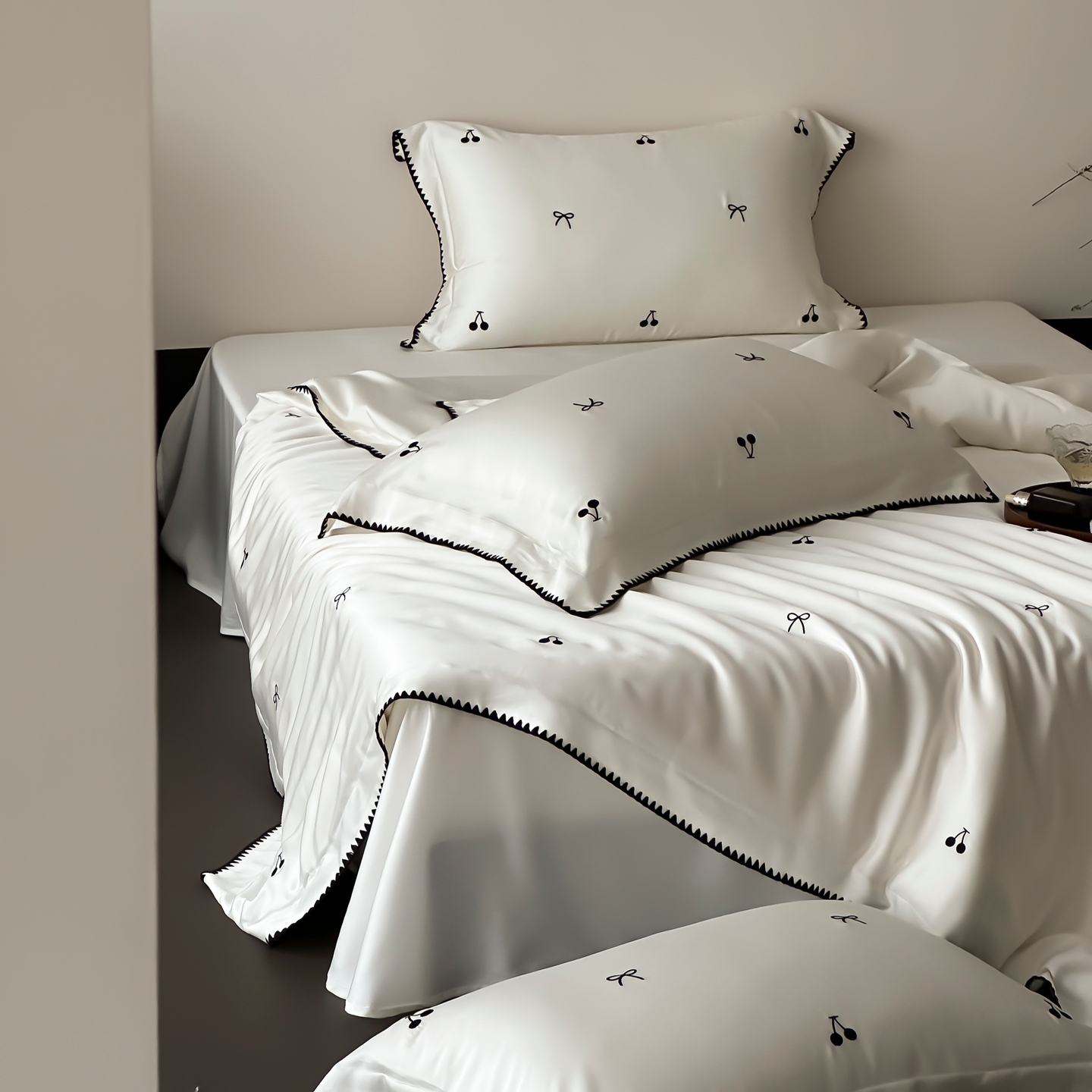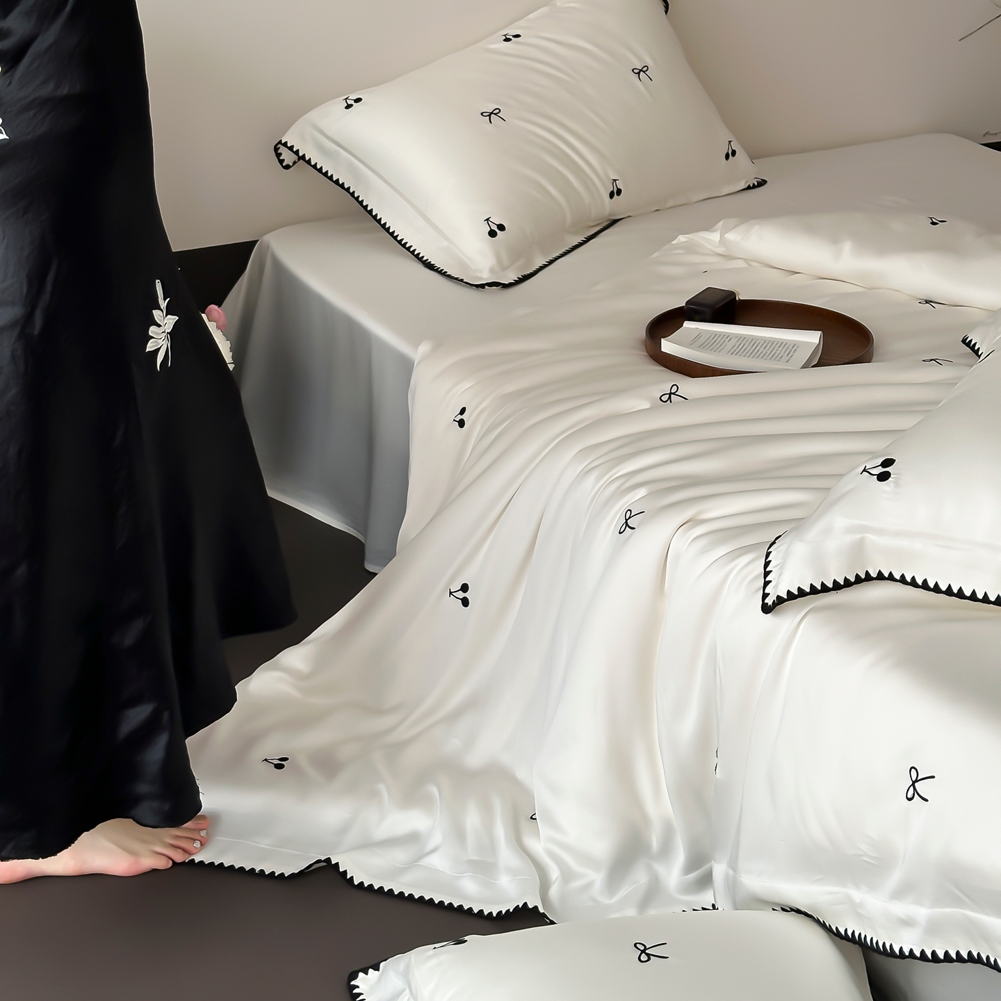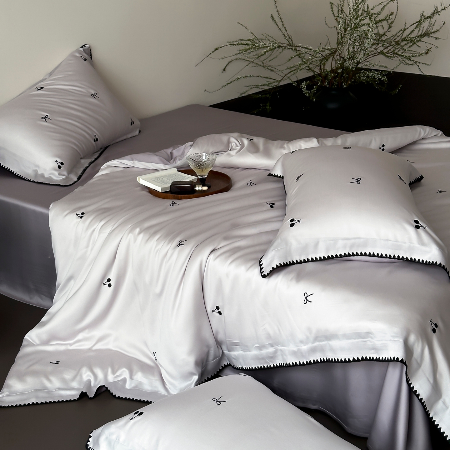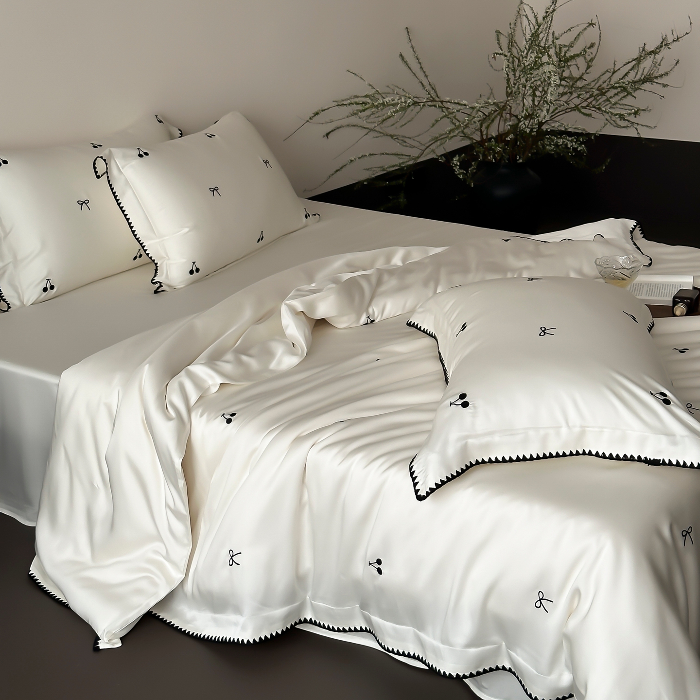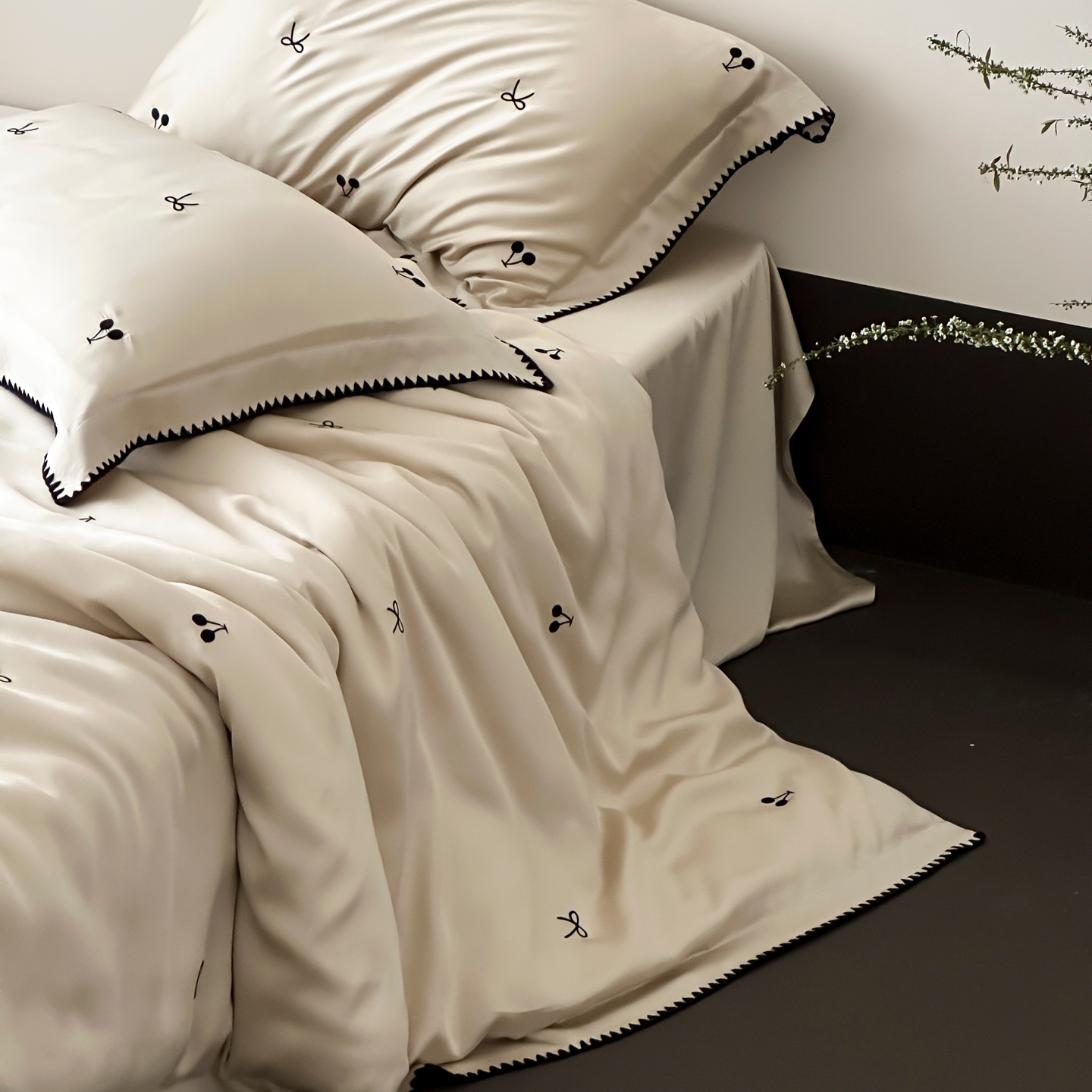 商品名称:(总)时亿家居 2026春夏新款兰精天丝四件套-黑樱梦境