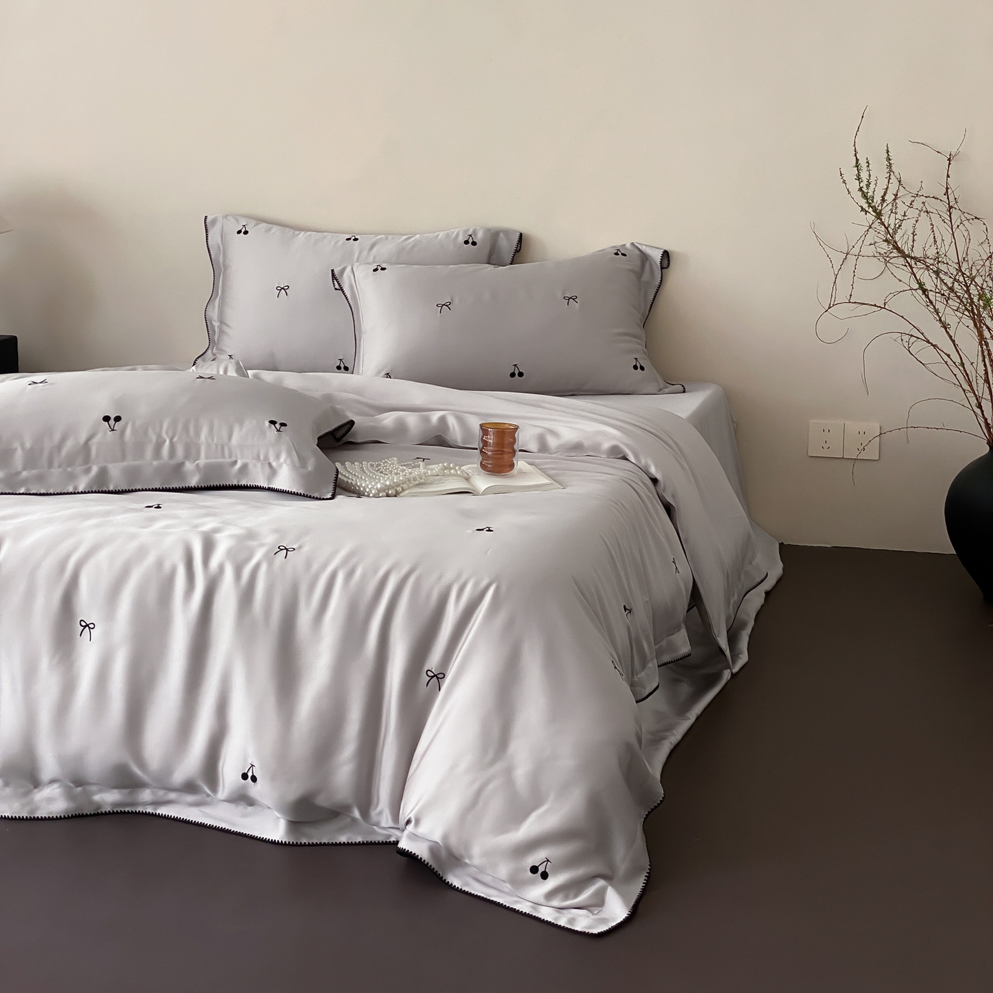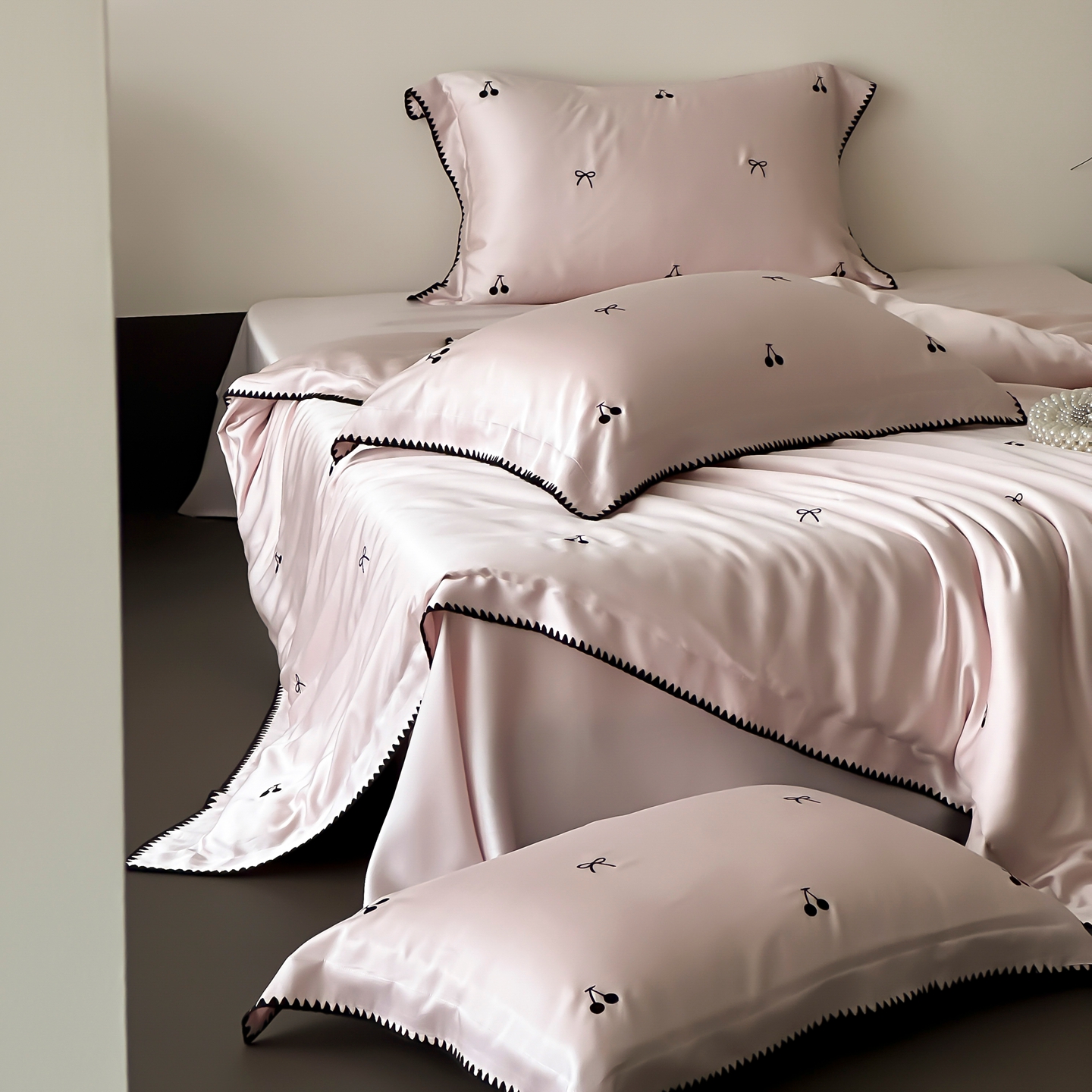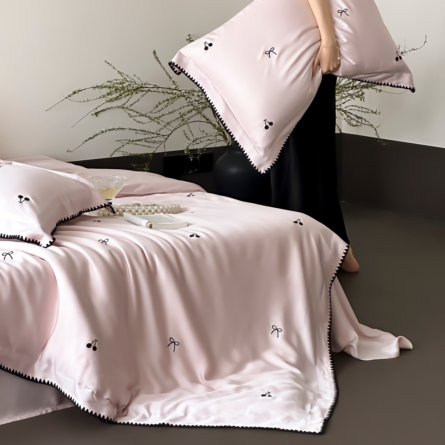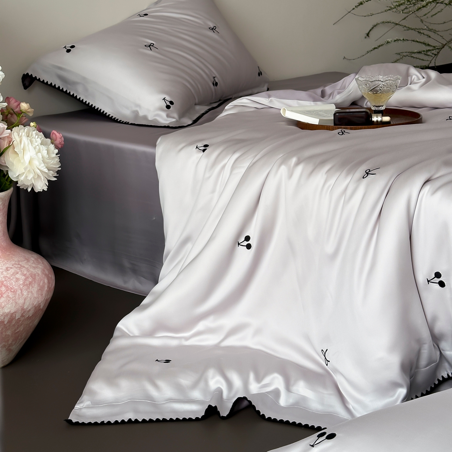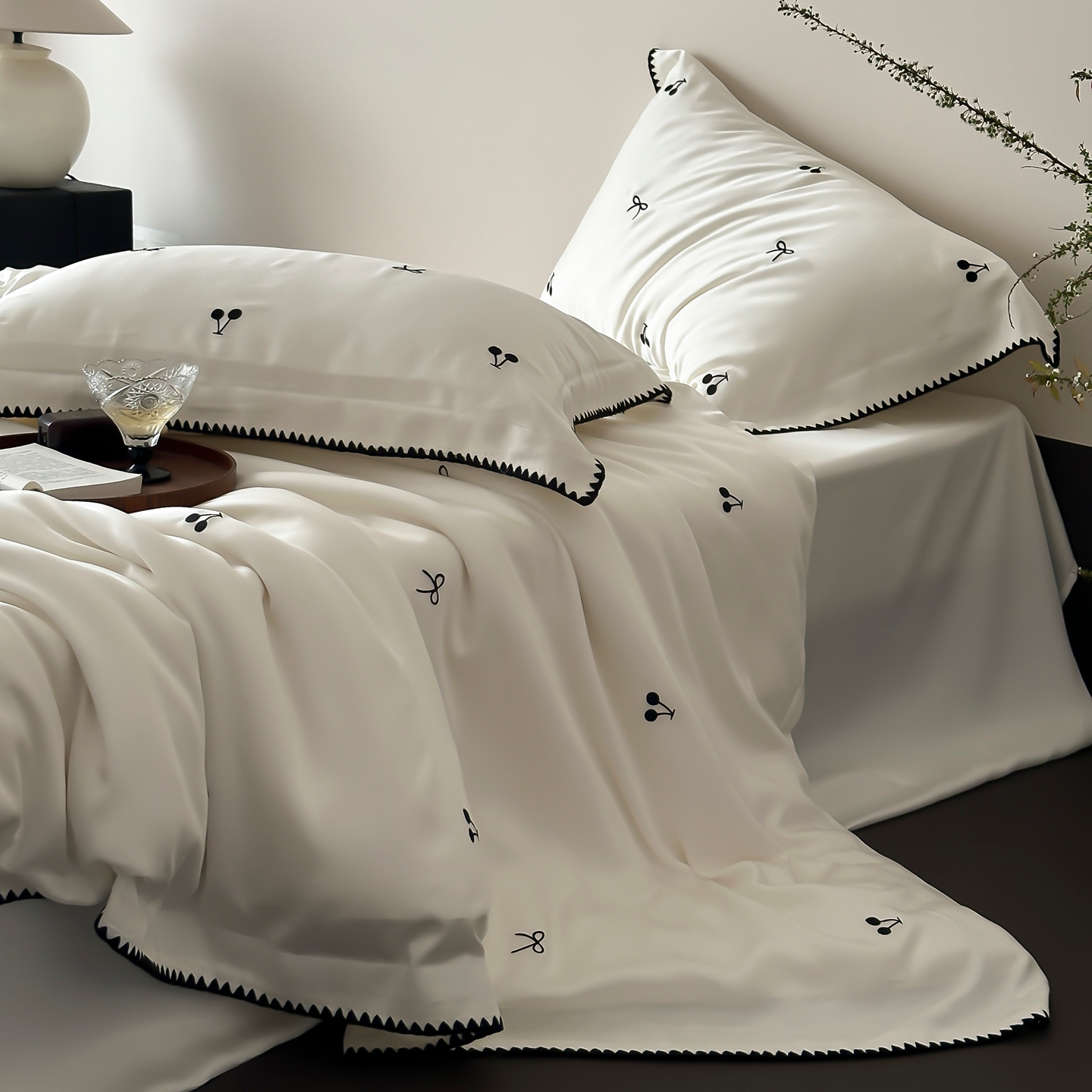 商品名称:(总)时亿家居 2026春夏新款兰精天丝四件套-黑樱梦境