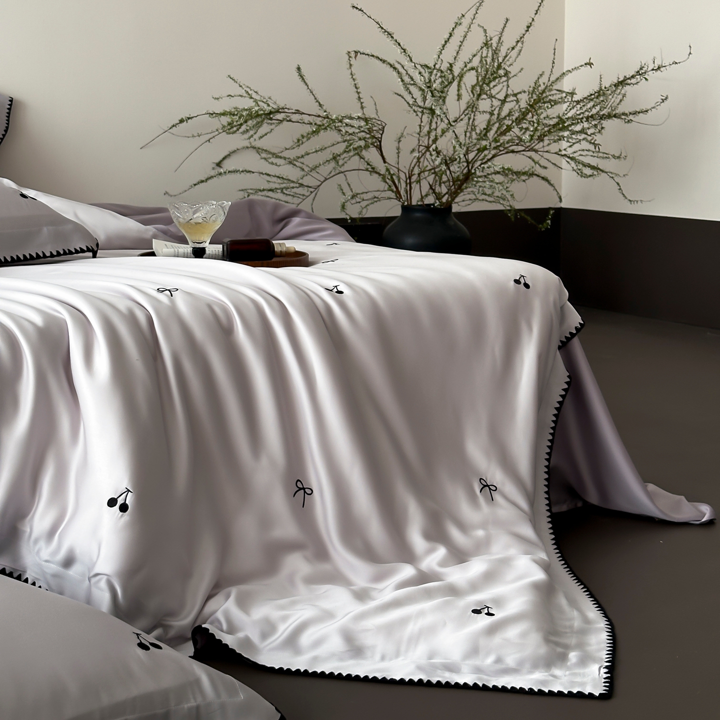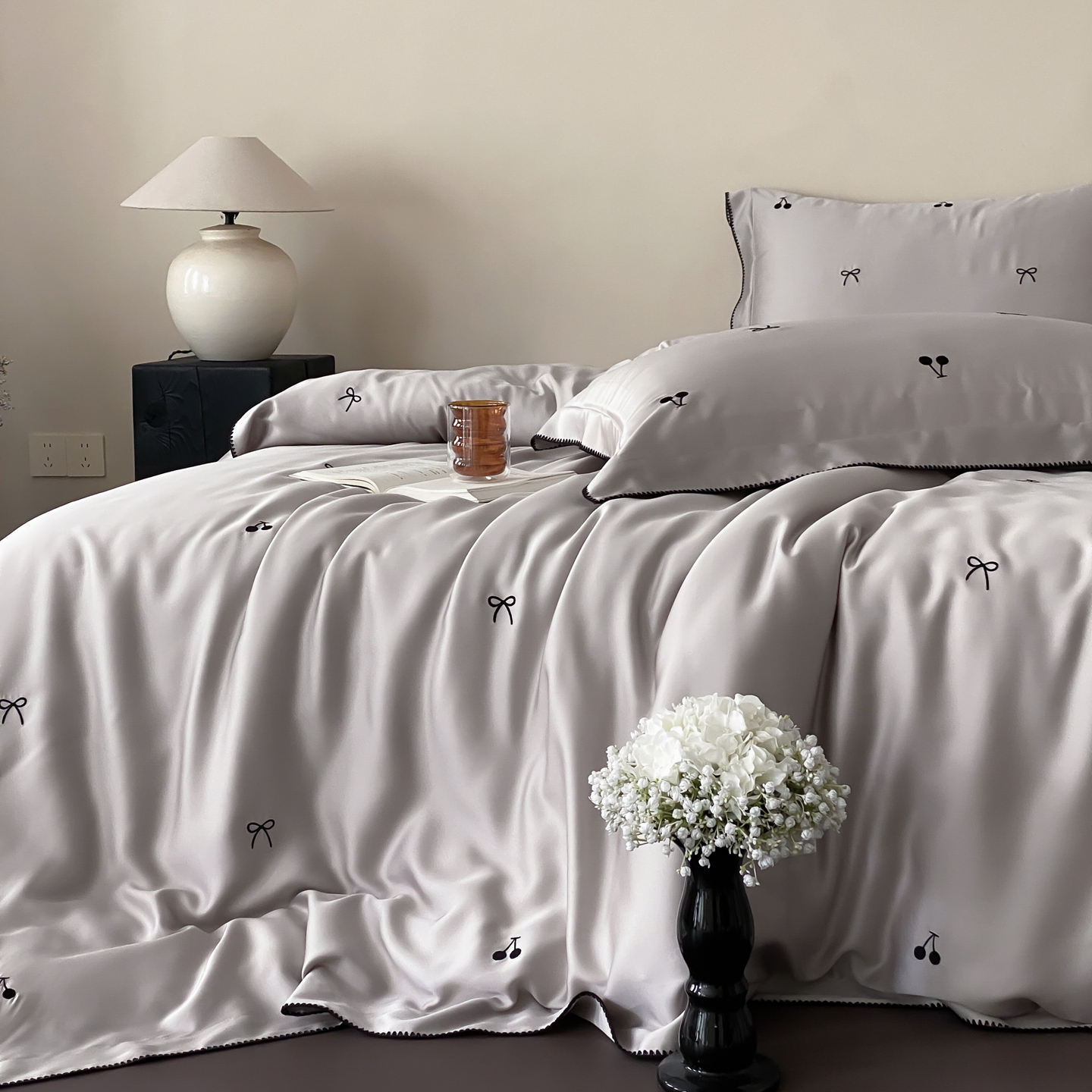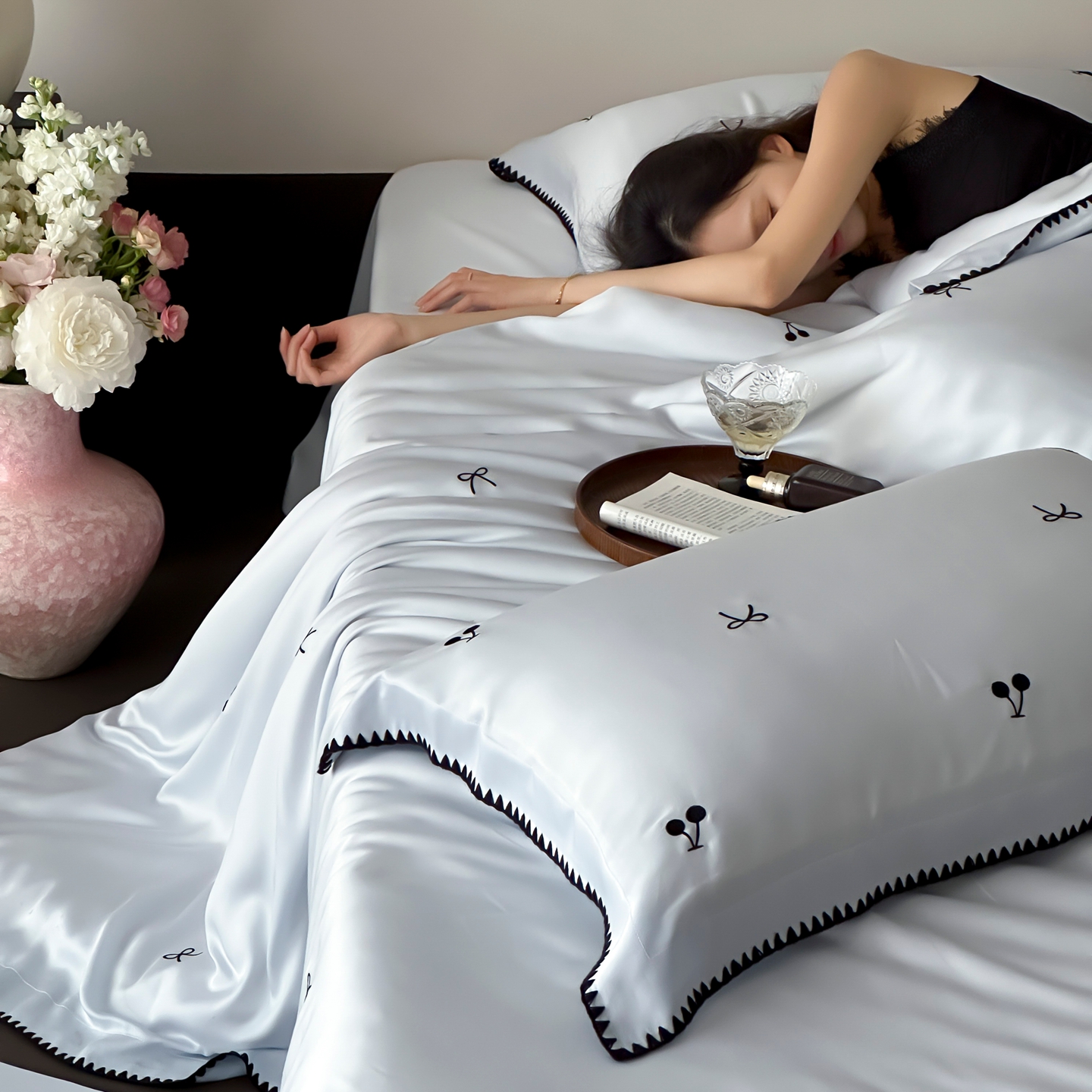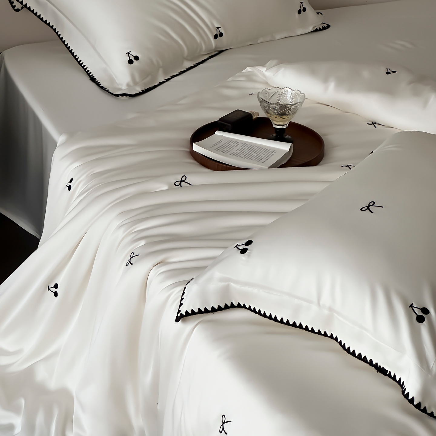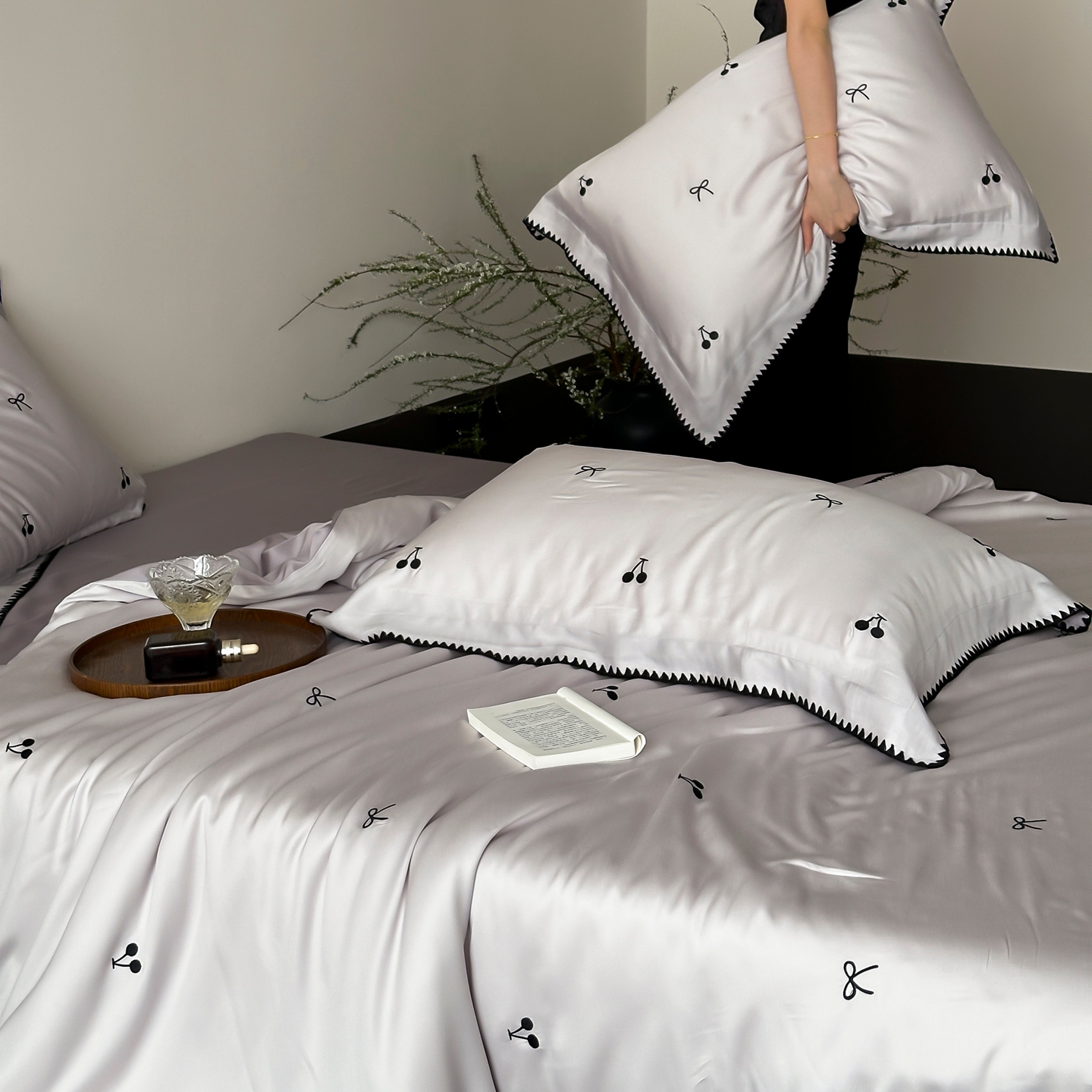 商品名称:(总)时亿家居 2026春夏新款兰精天丝四件套-黑樱梦境