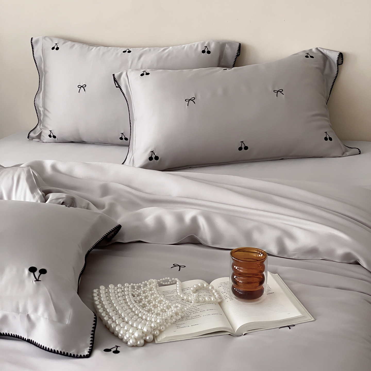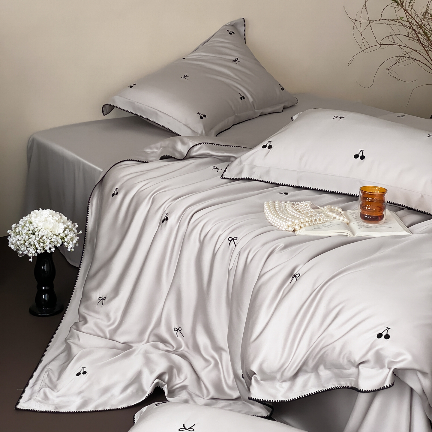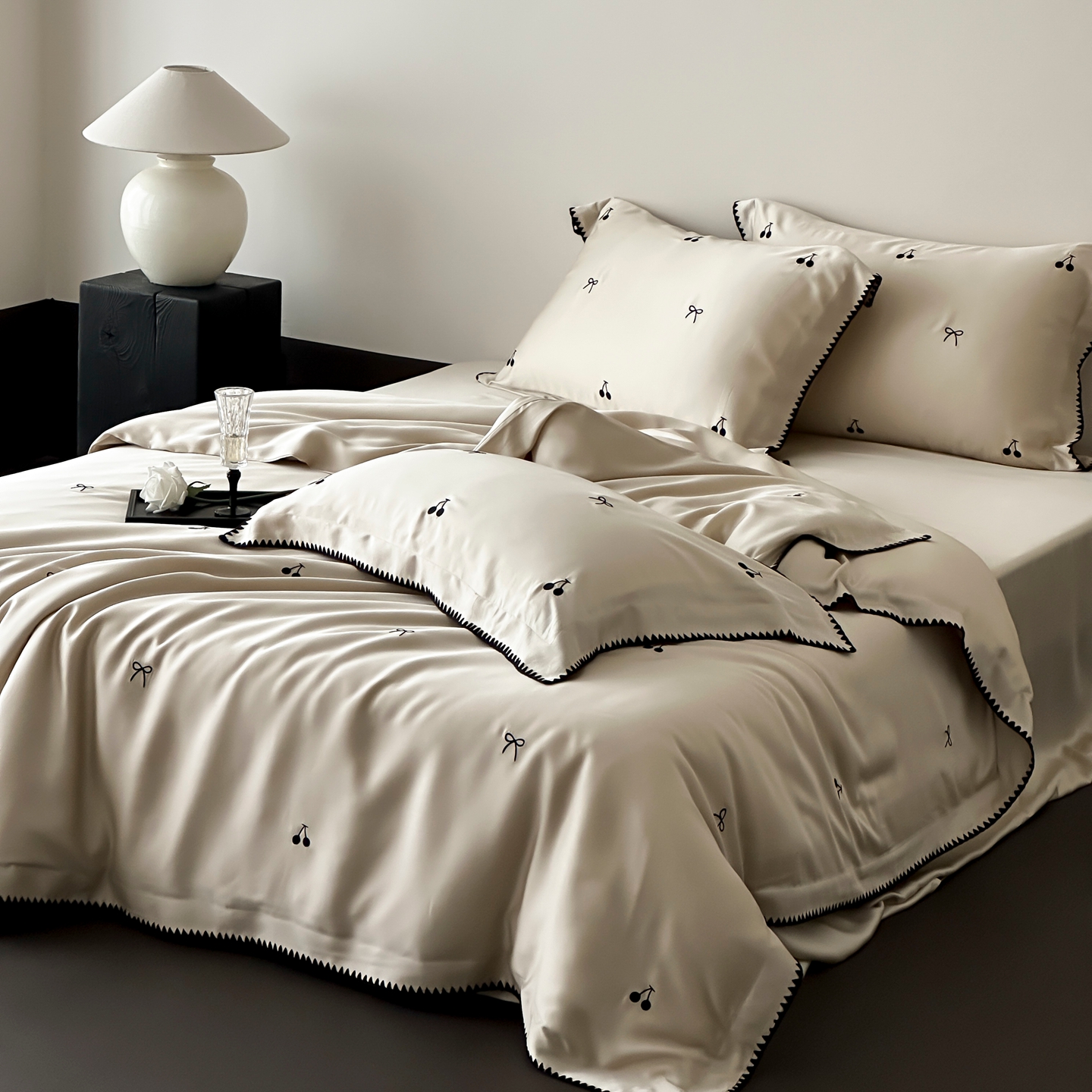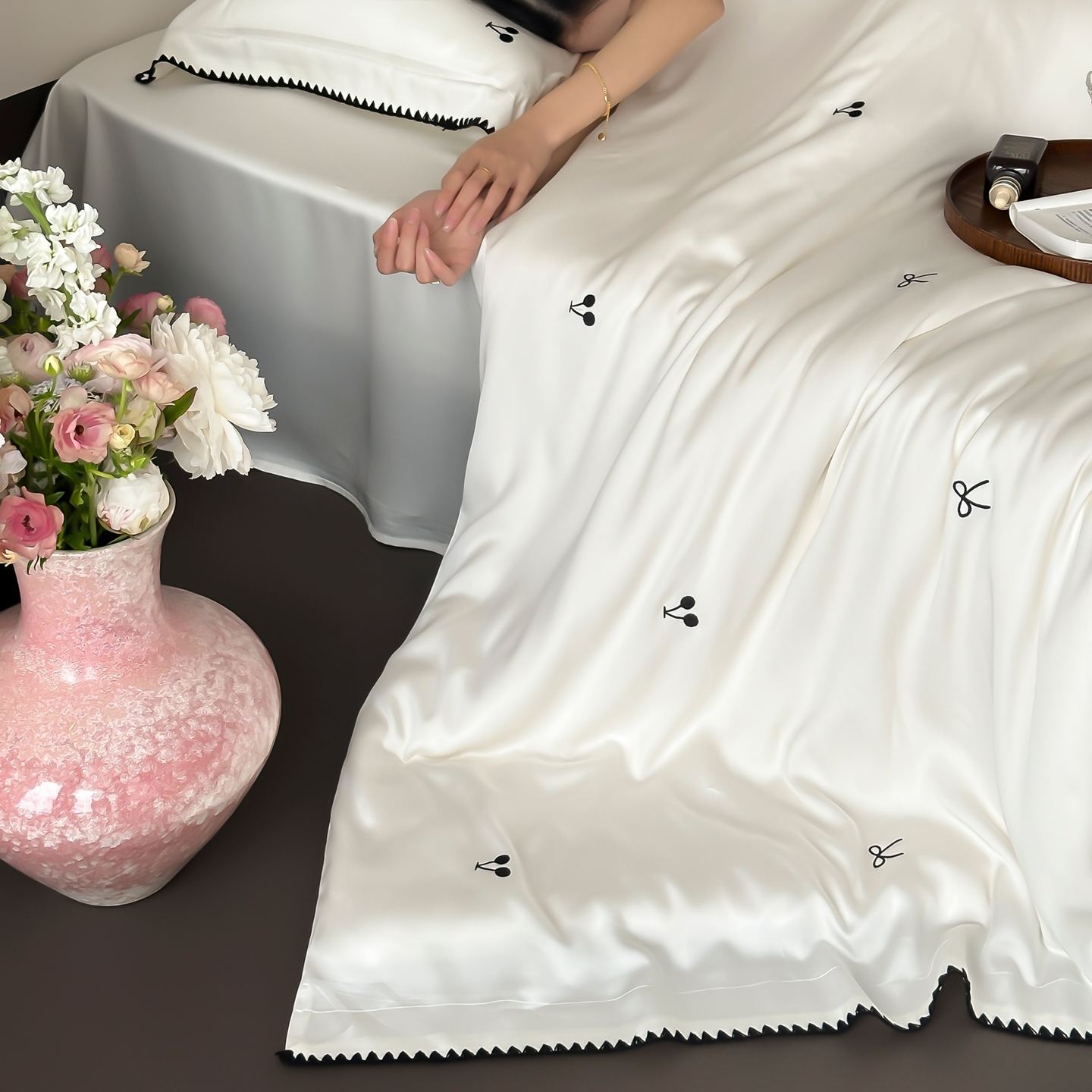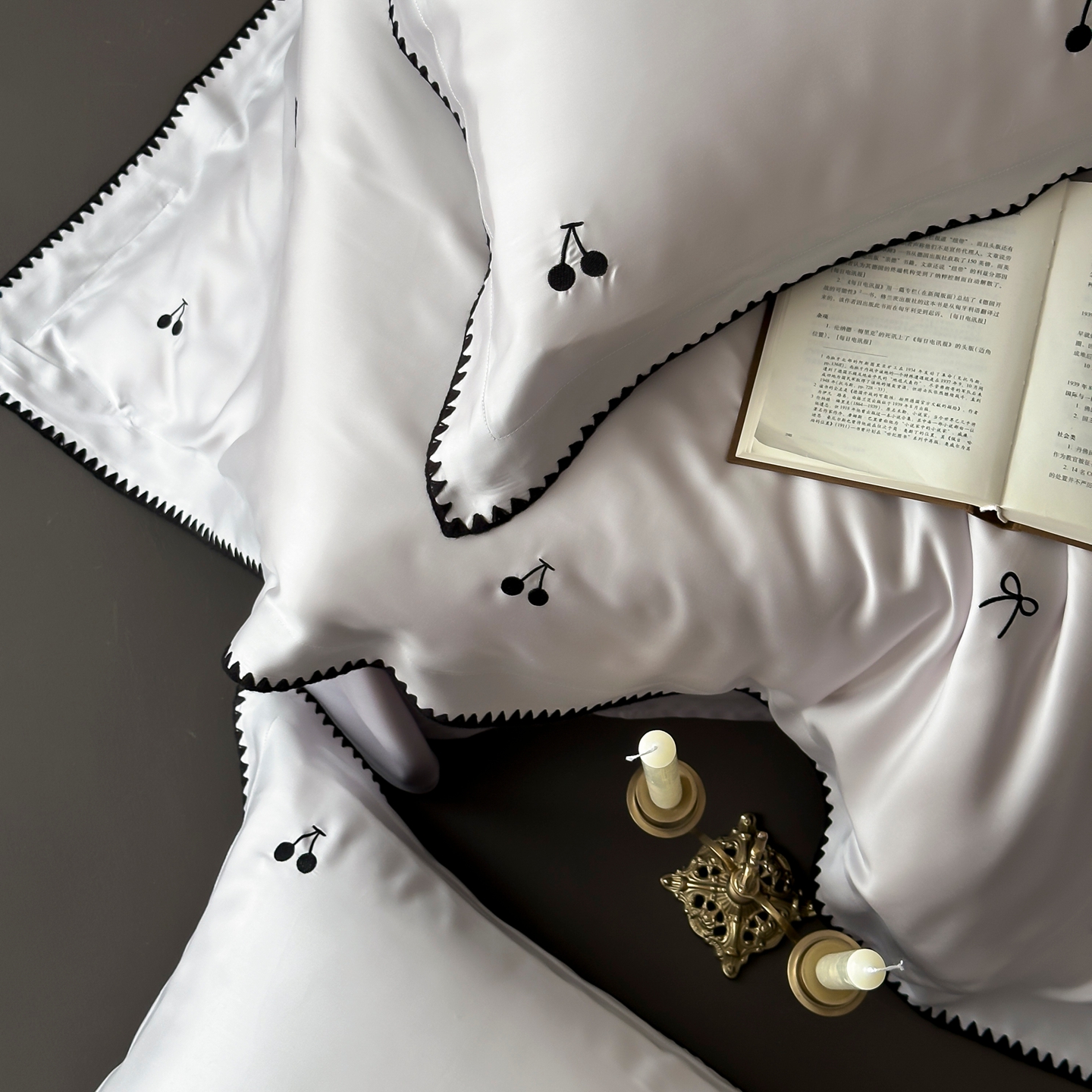 商品名称:(总)时亿家居 2026春夏新款兰精天丝四件套-黑樱梦境
