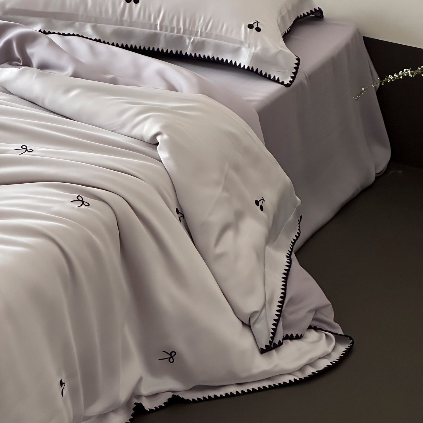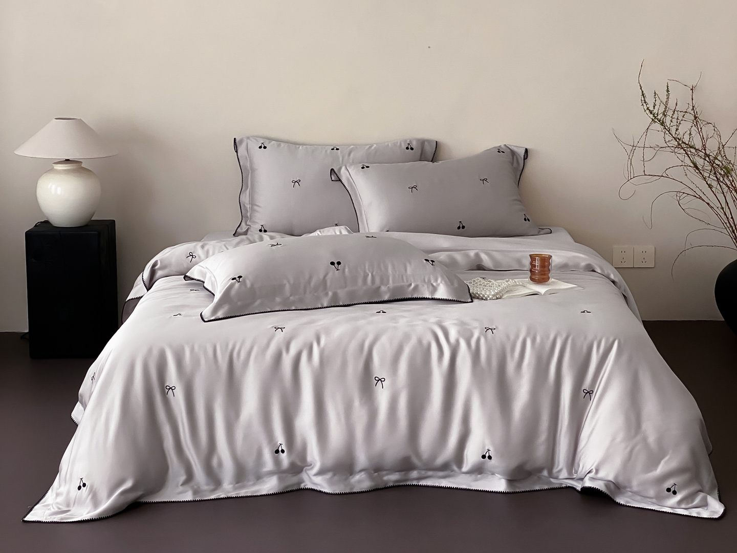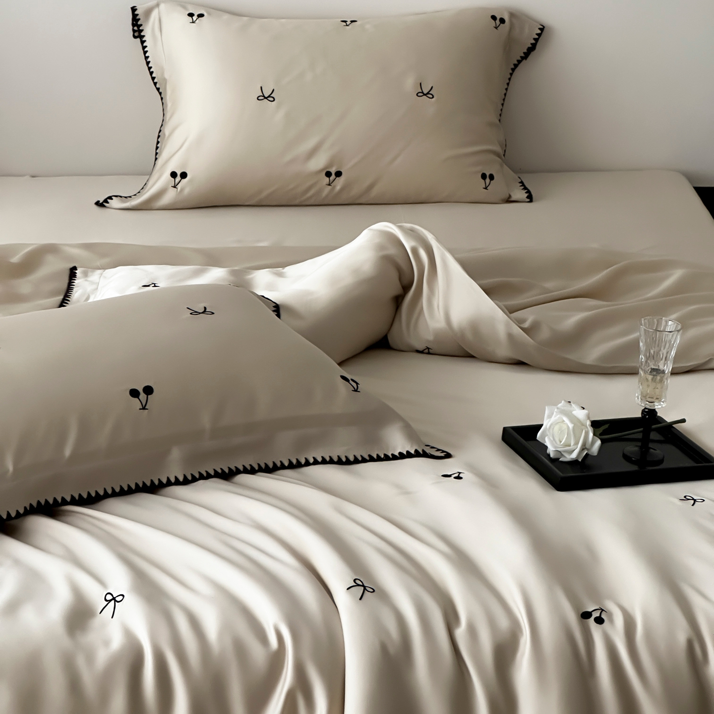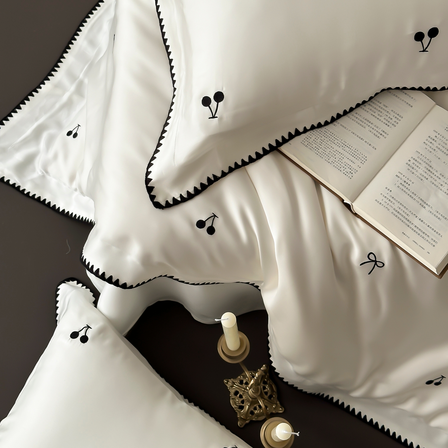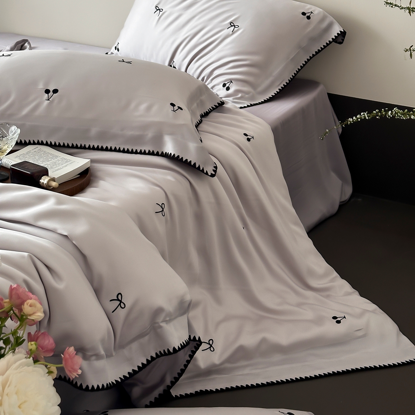 商品名称:(总)时亿家居 2026春夏新款兰精天丝四件套-黑樱梦境