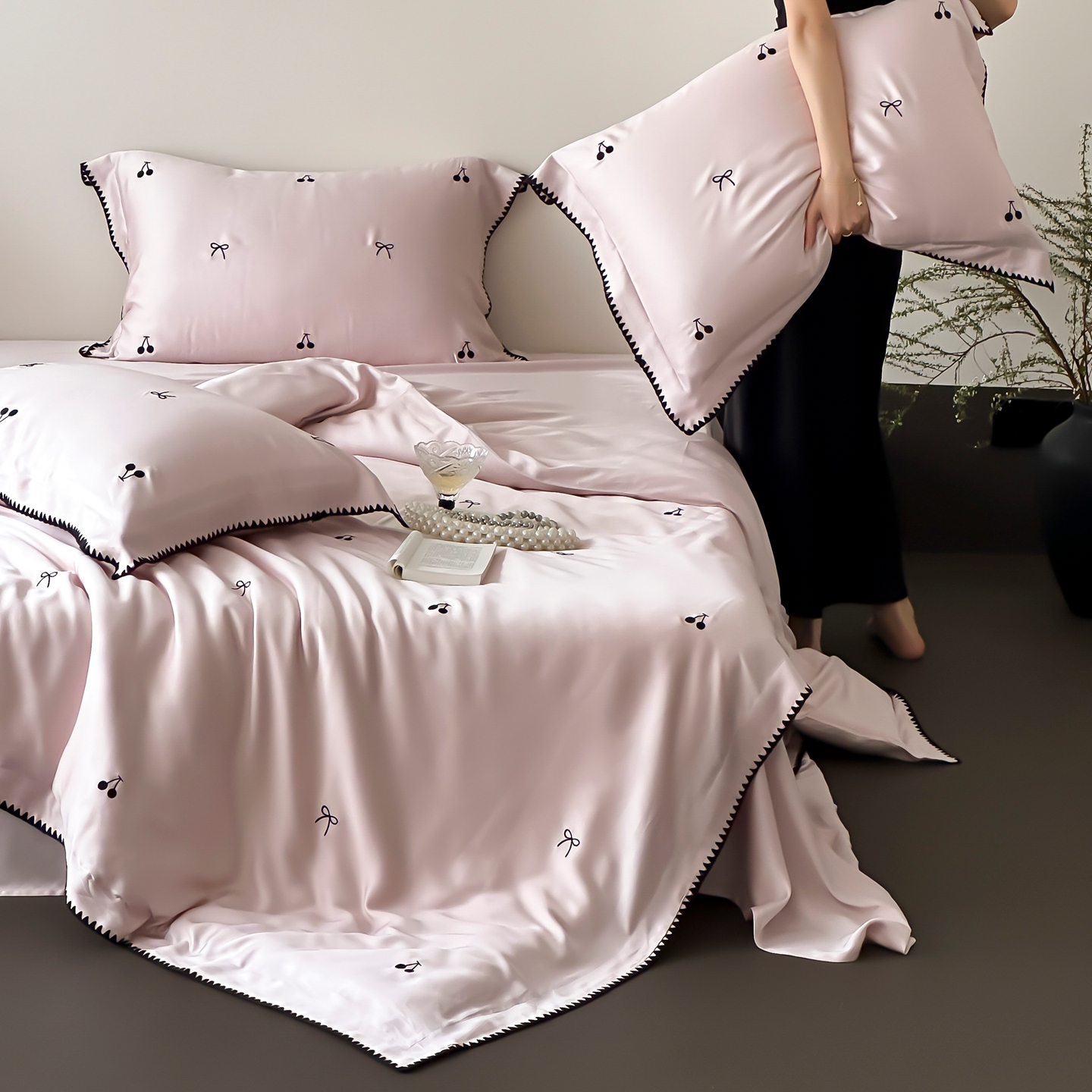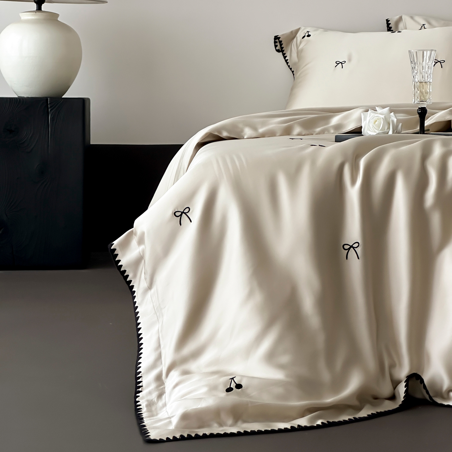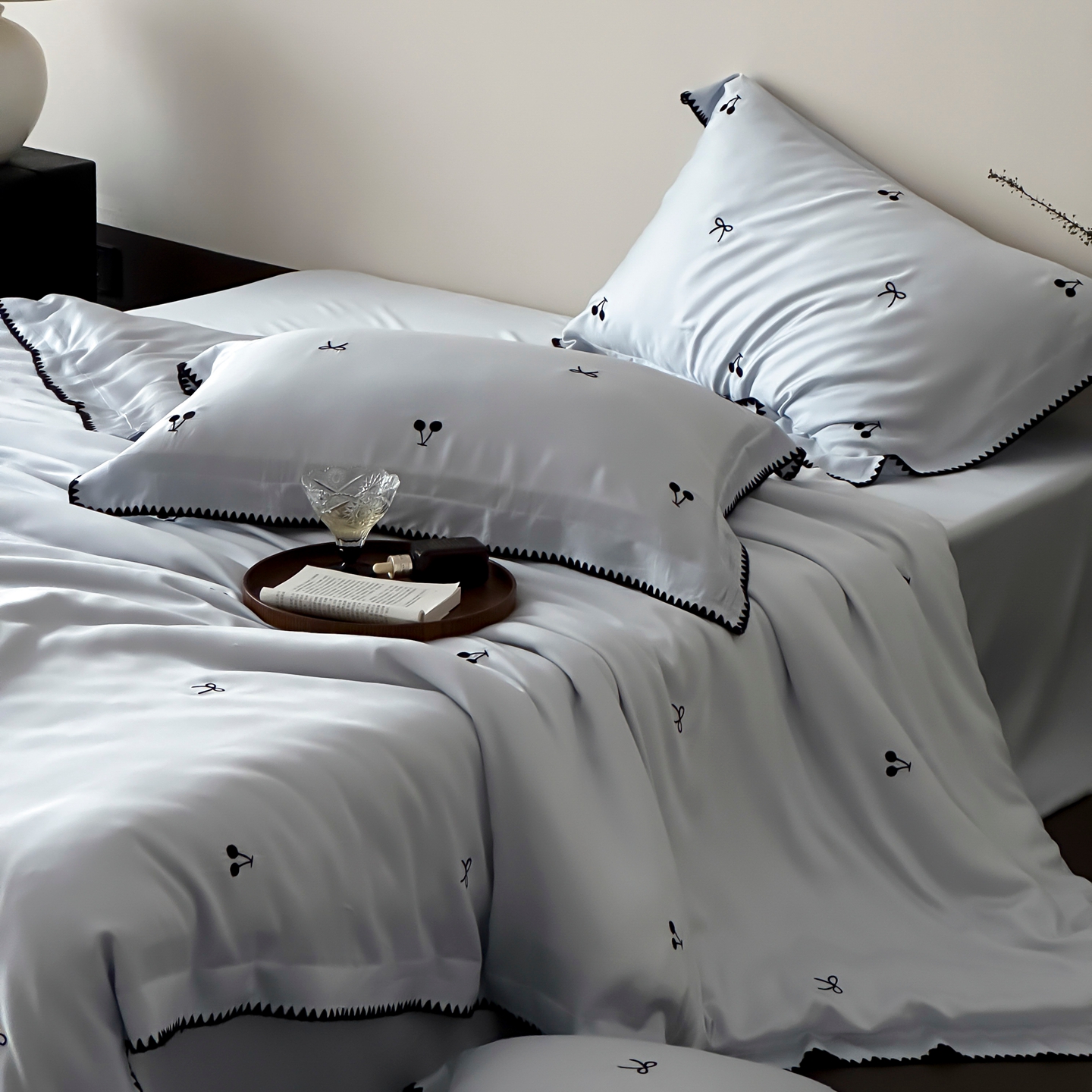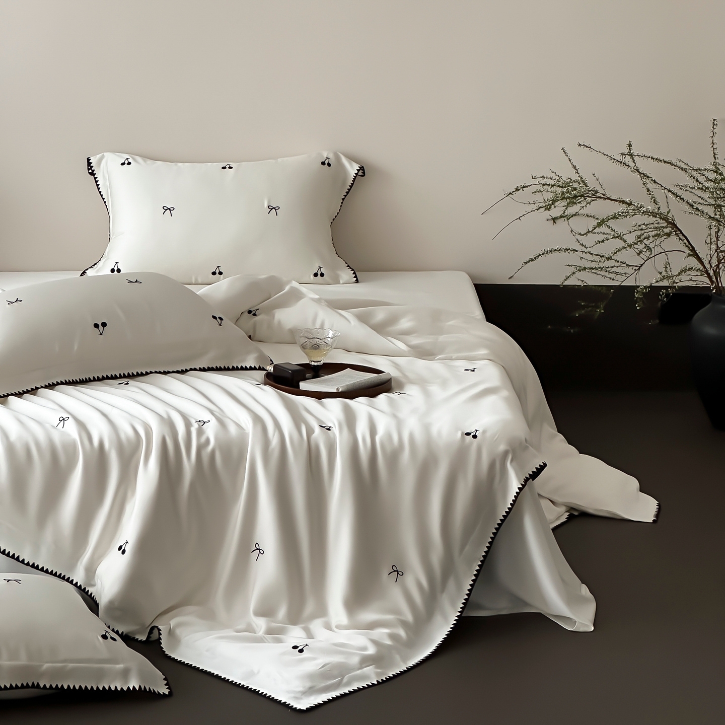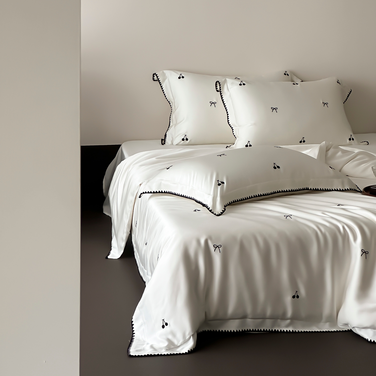 商品名称:(总)时亿家居 2026春夏新款兰精天丝四件套-黑樱梦境