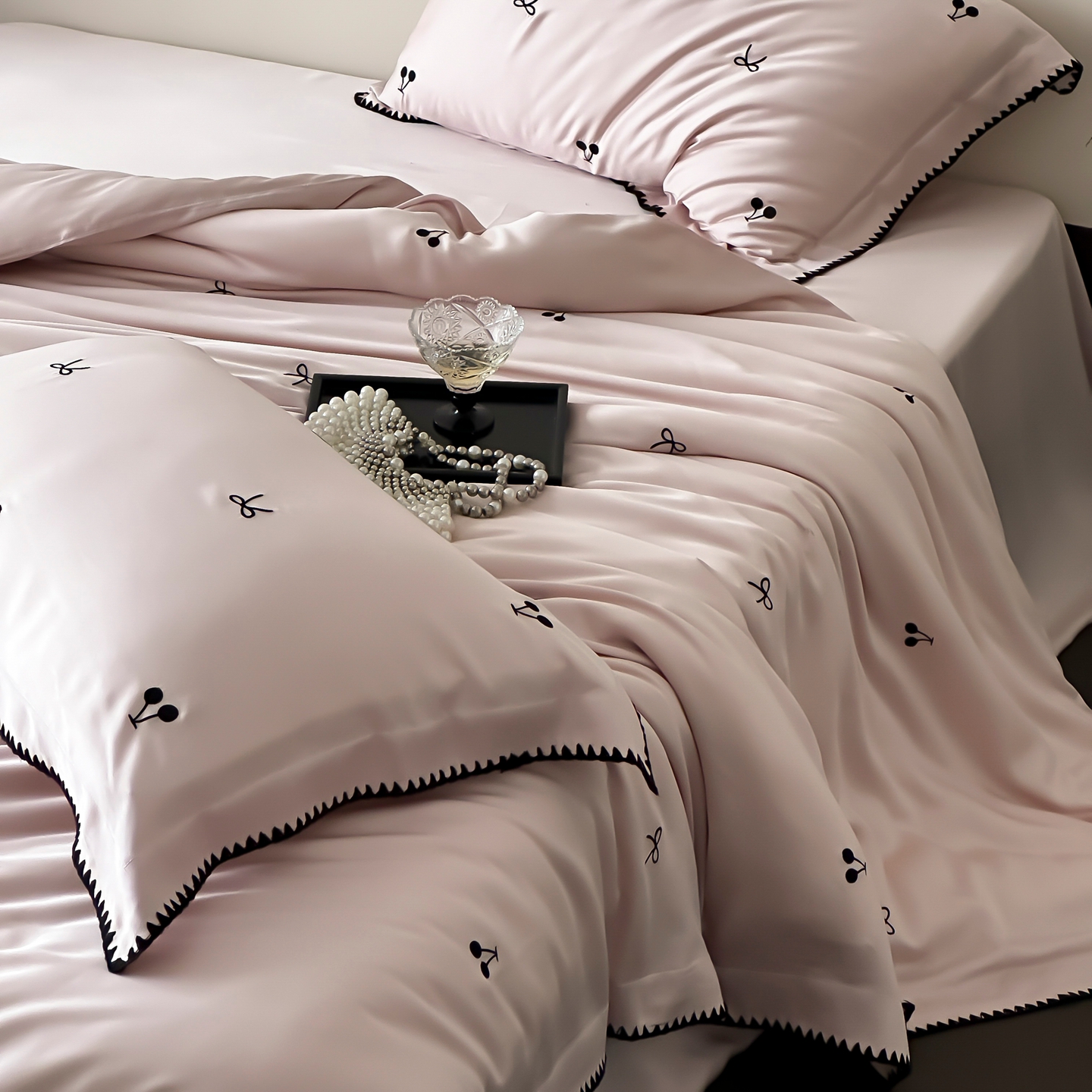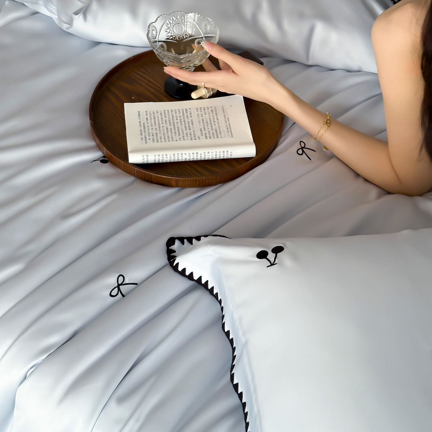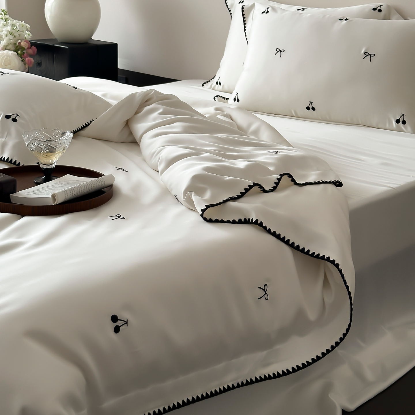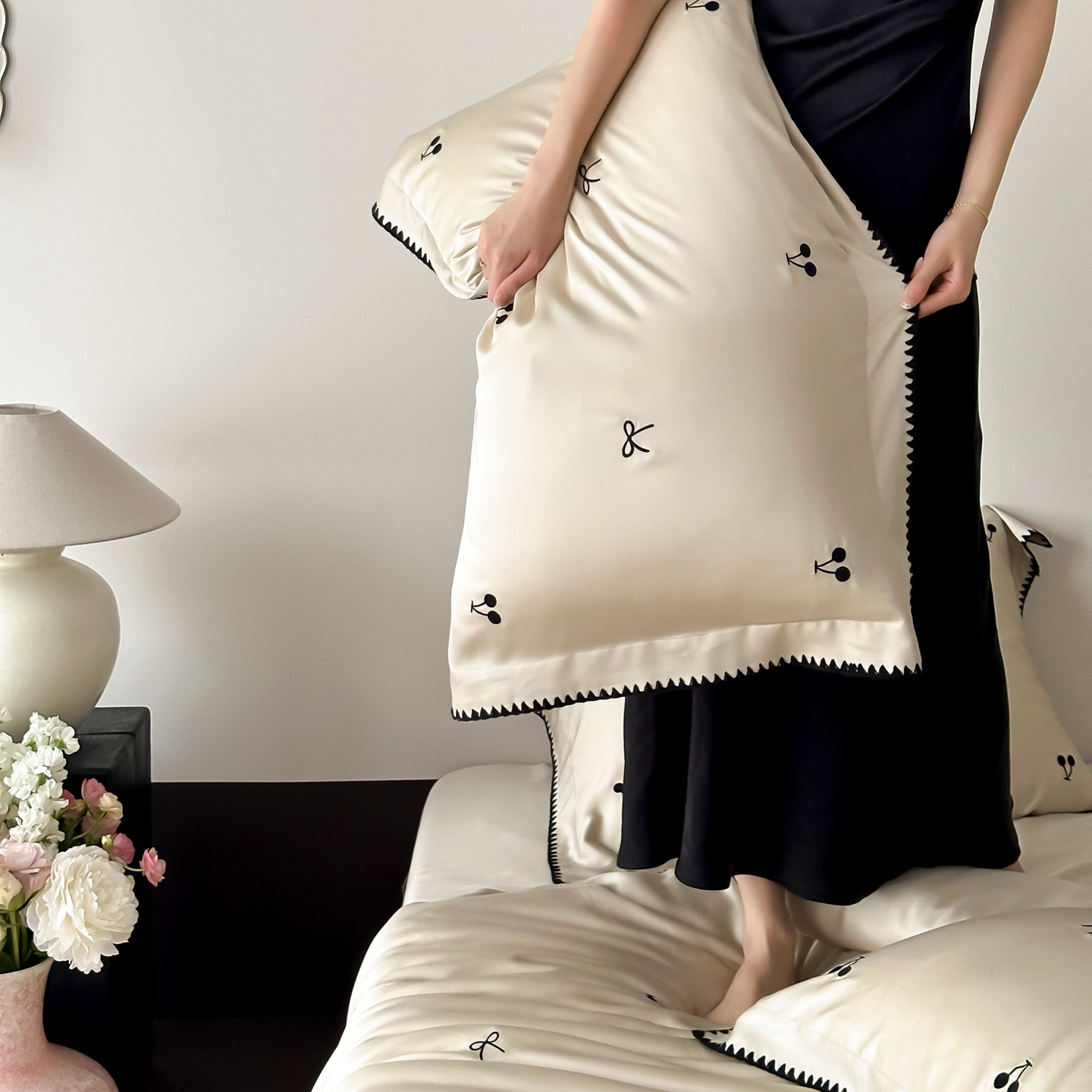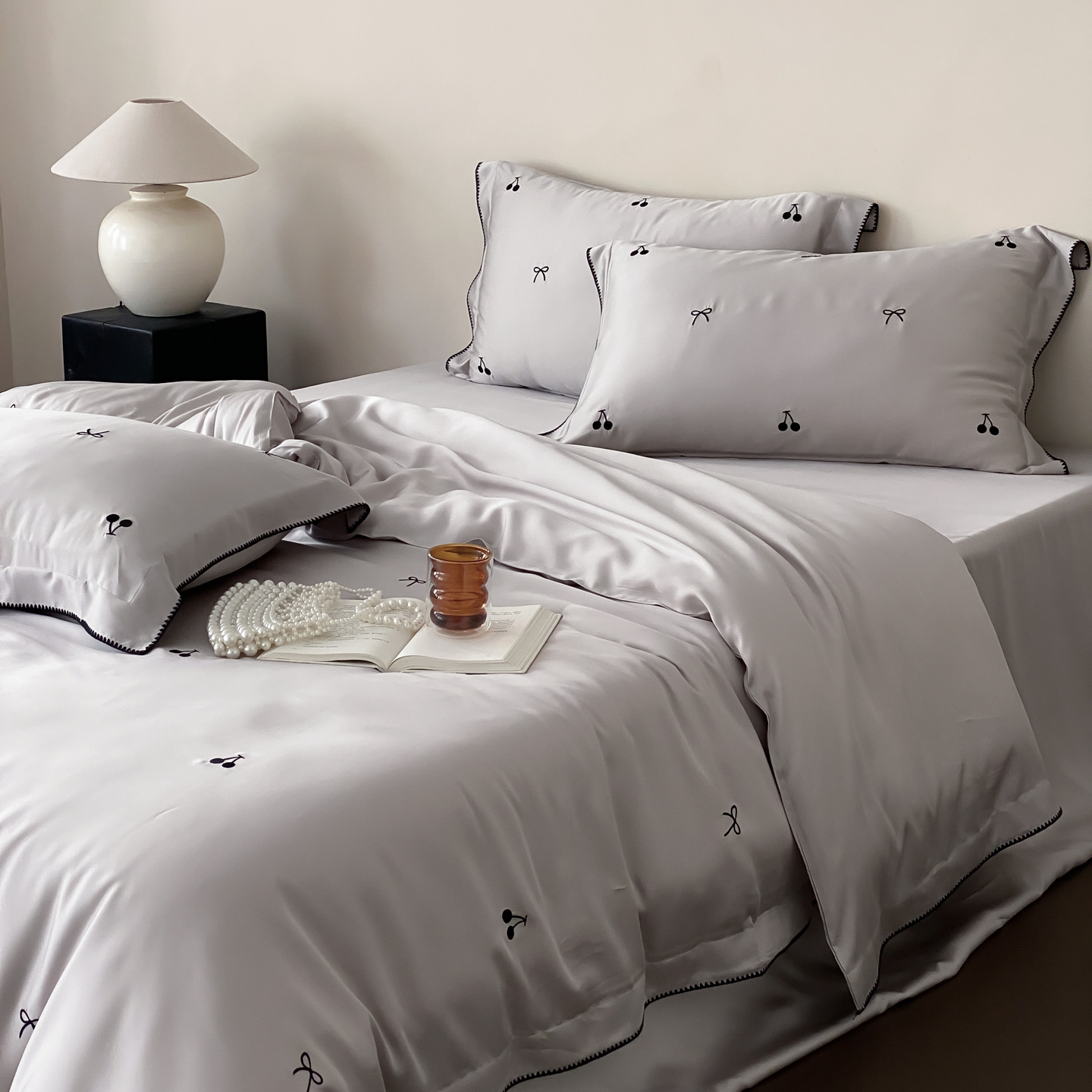 商品名称:(总)时亿家居 2026春夏新款兰精天丝四件套-黑樱梦境