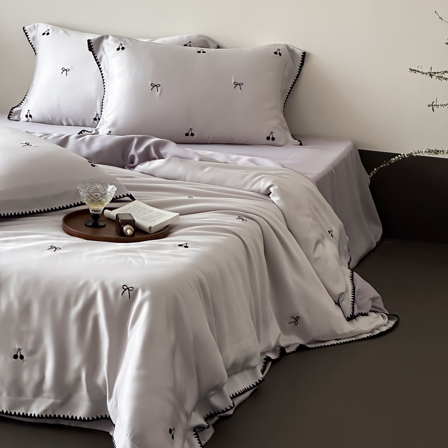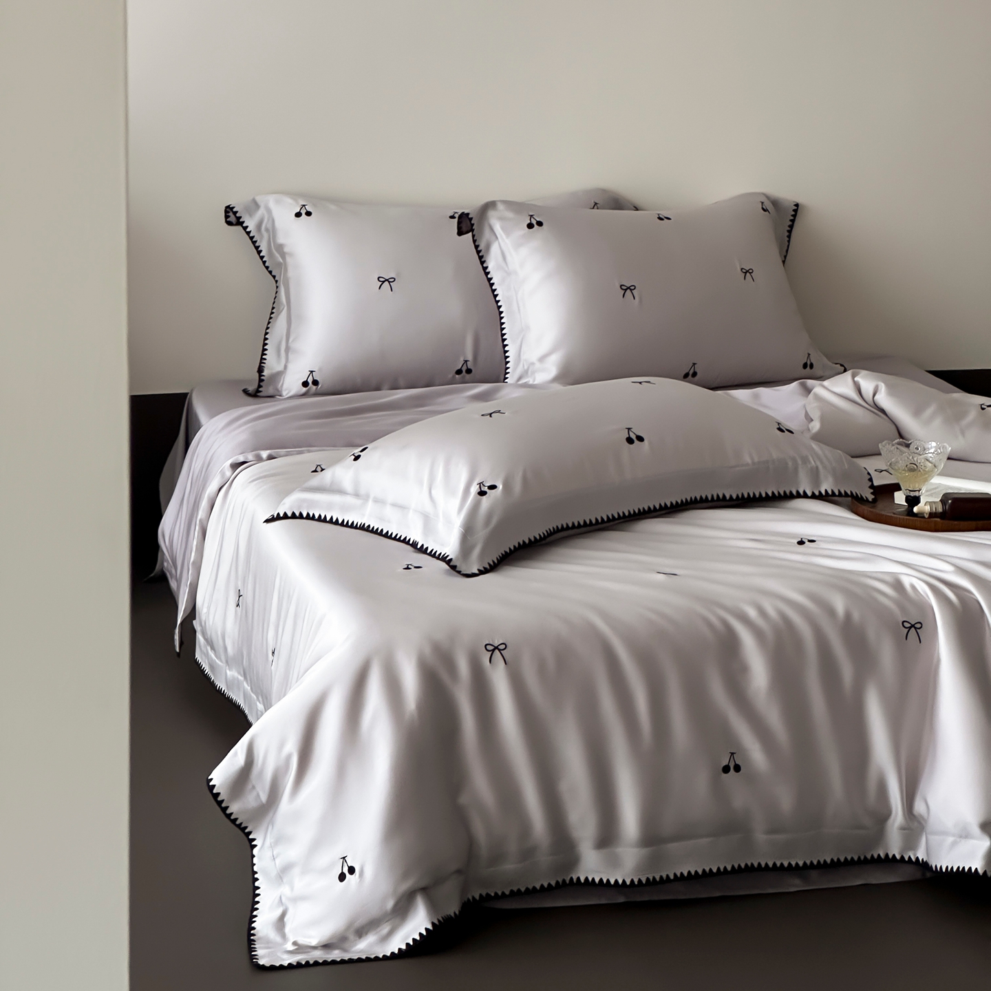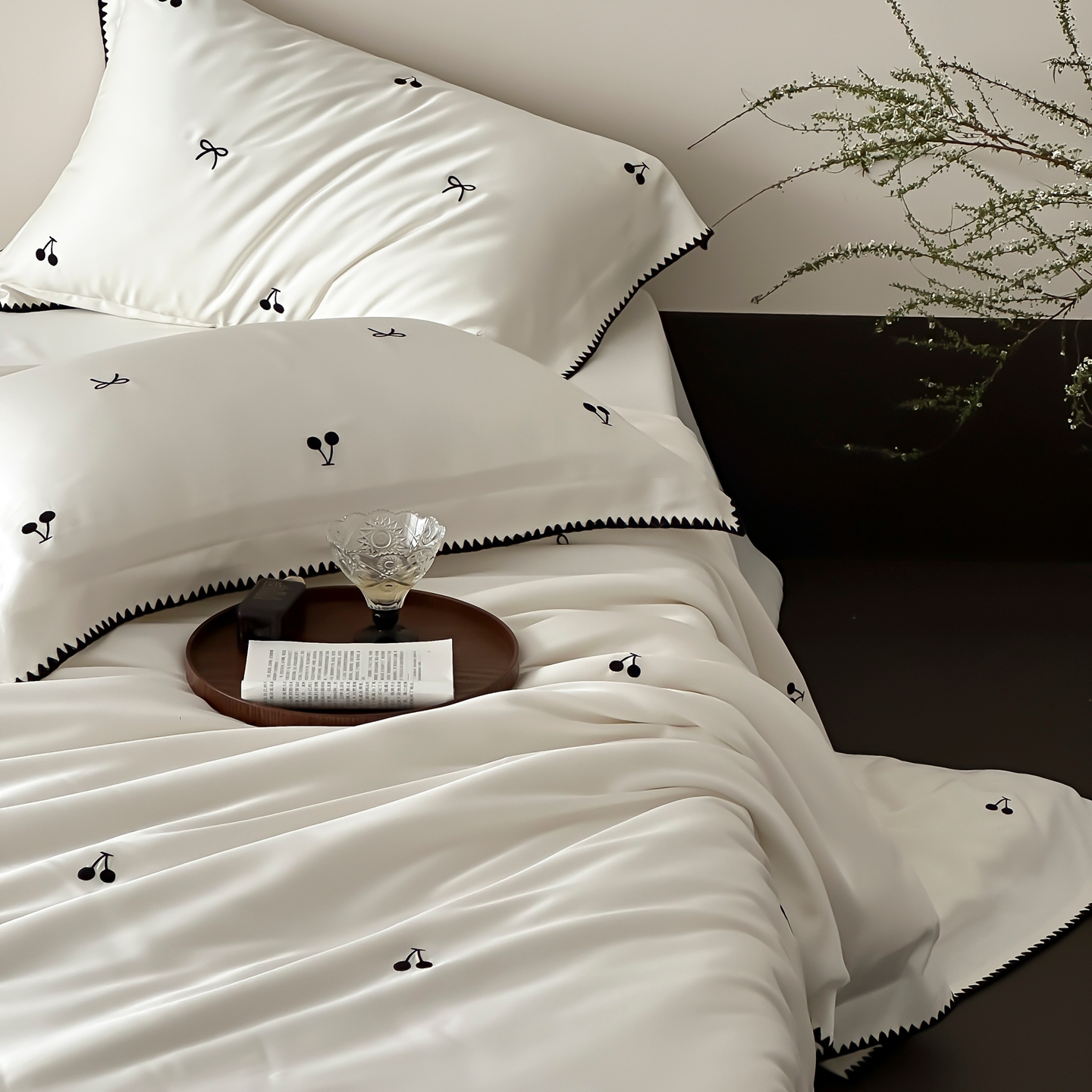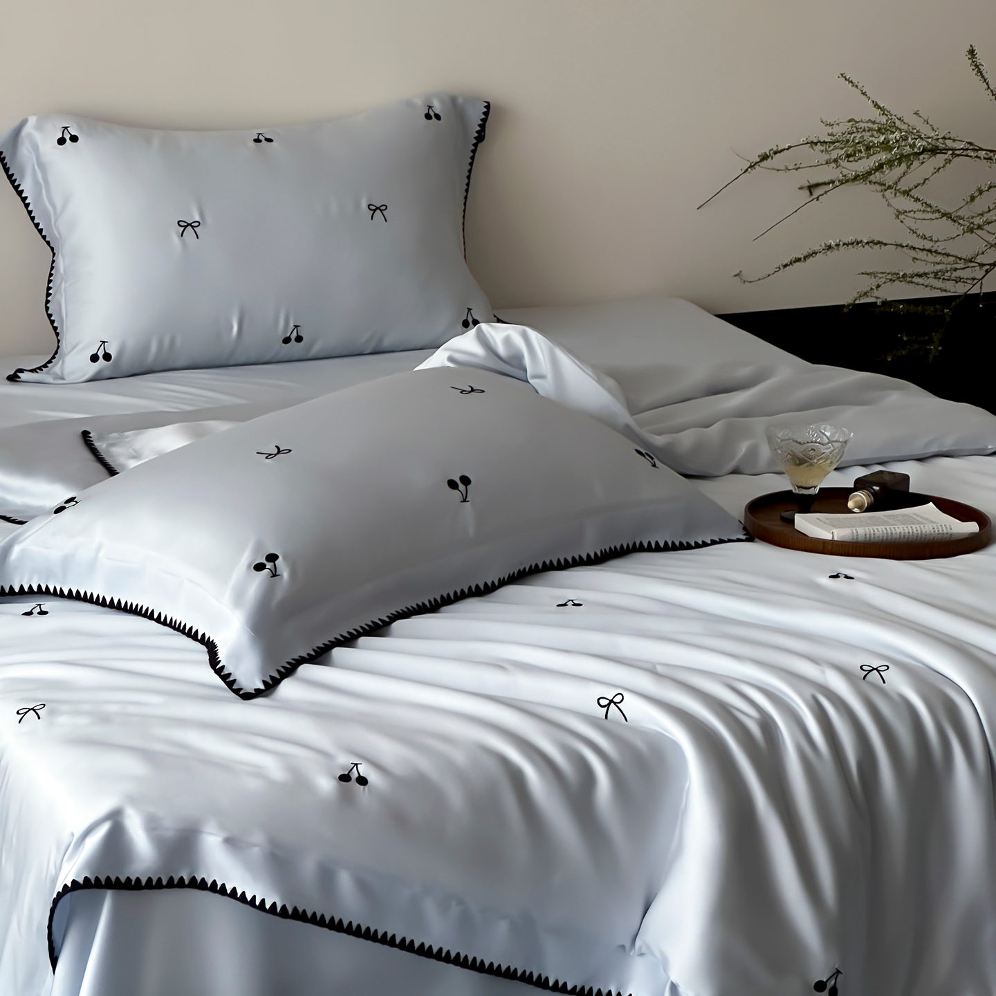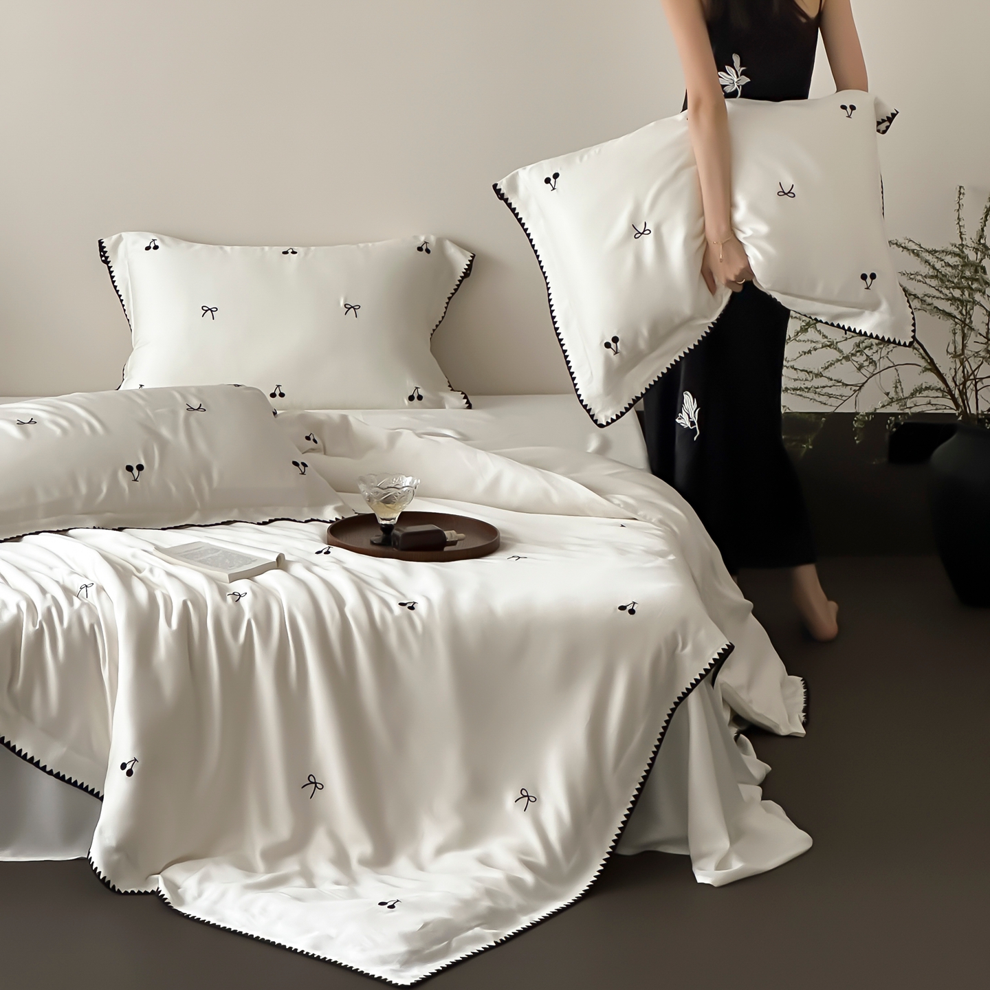 商品名称:(总)时亿家居 2026春夏新款兰精天丝四件套-黑樱梦境