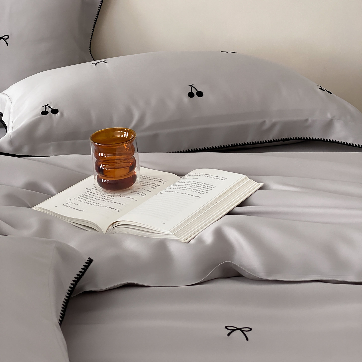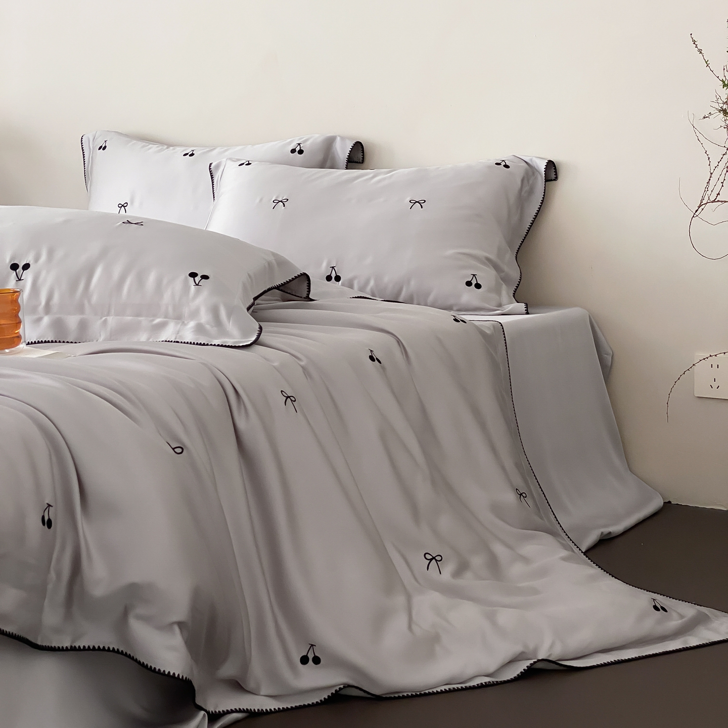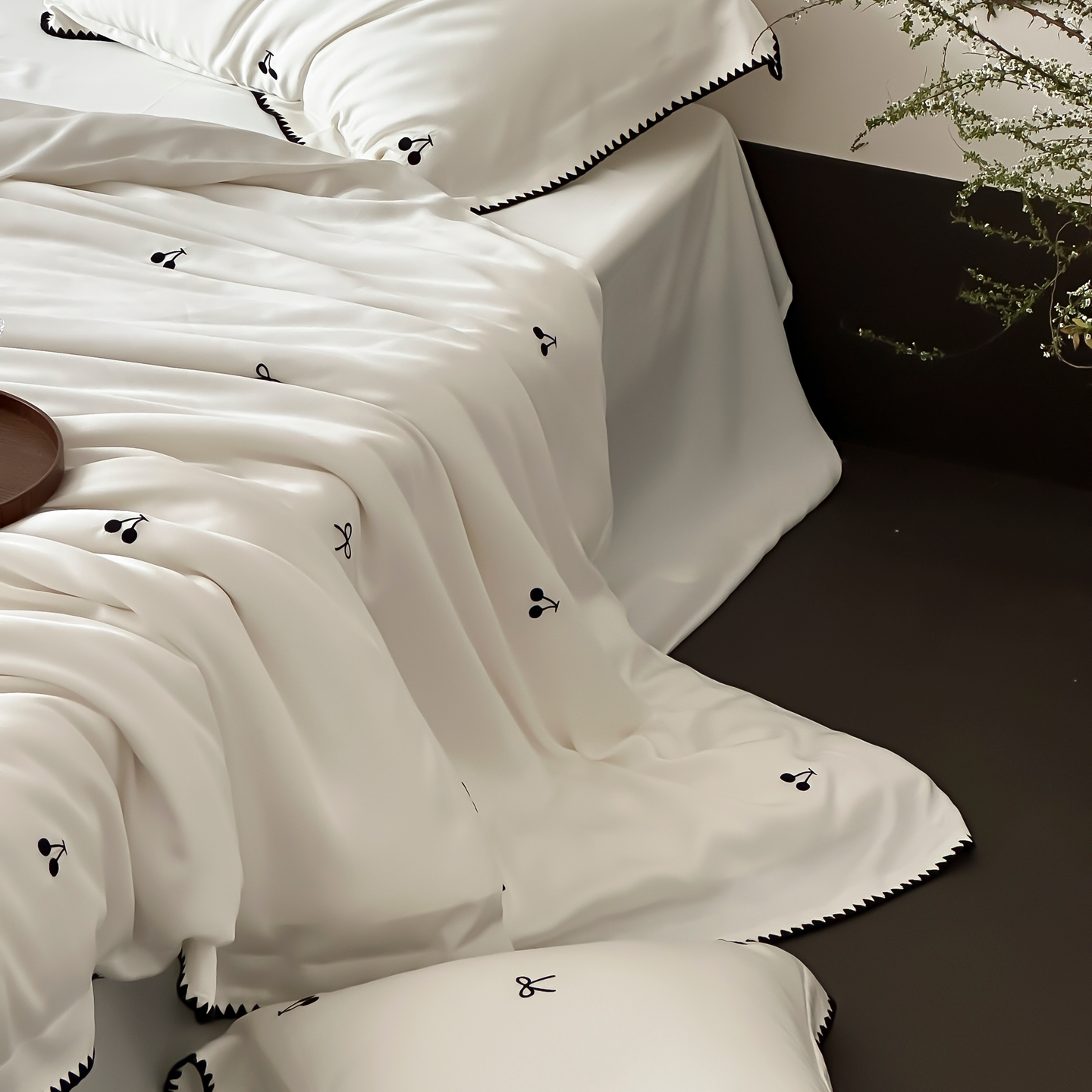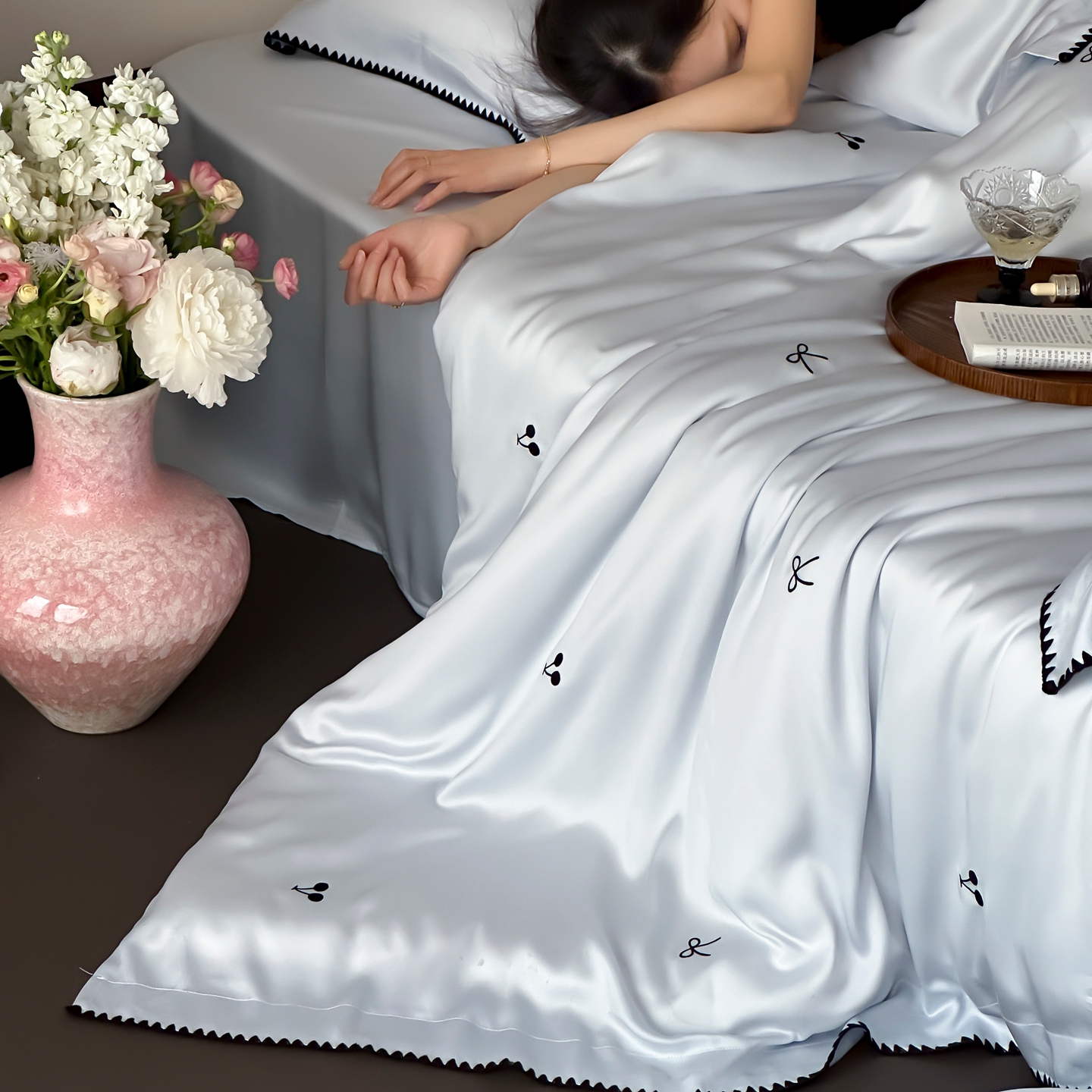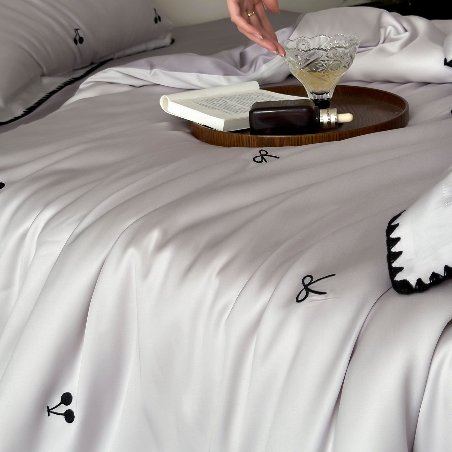 商品名称:(总)时亿家居 2026春夏新款兰精天丝四件套-黑樱梦境