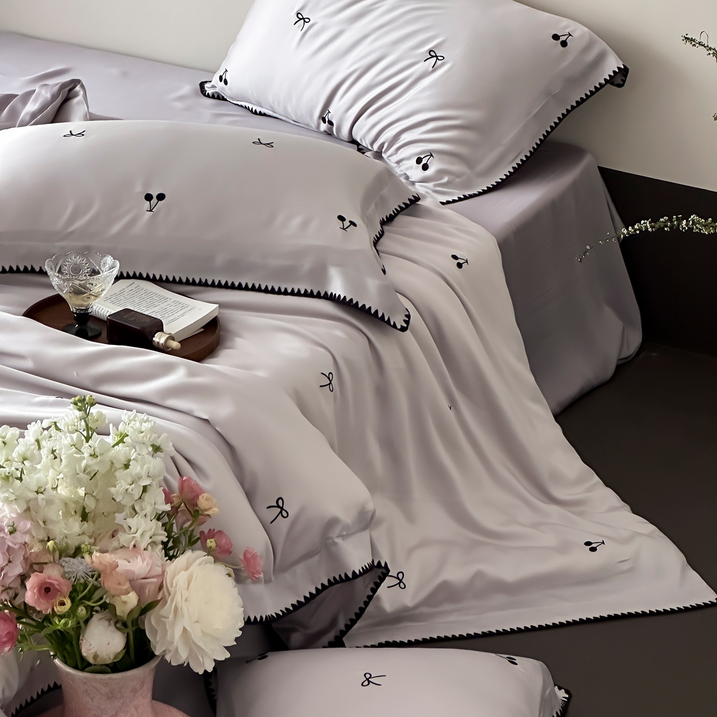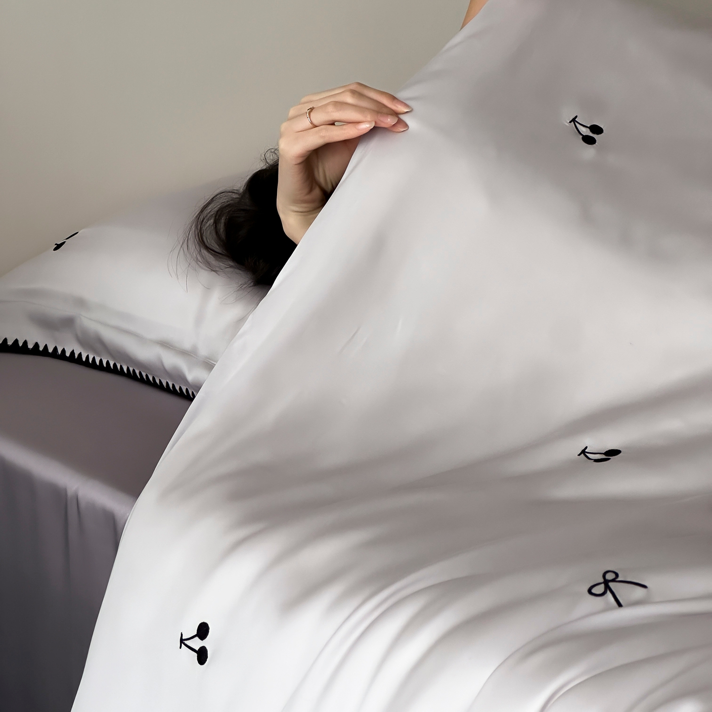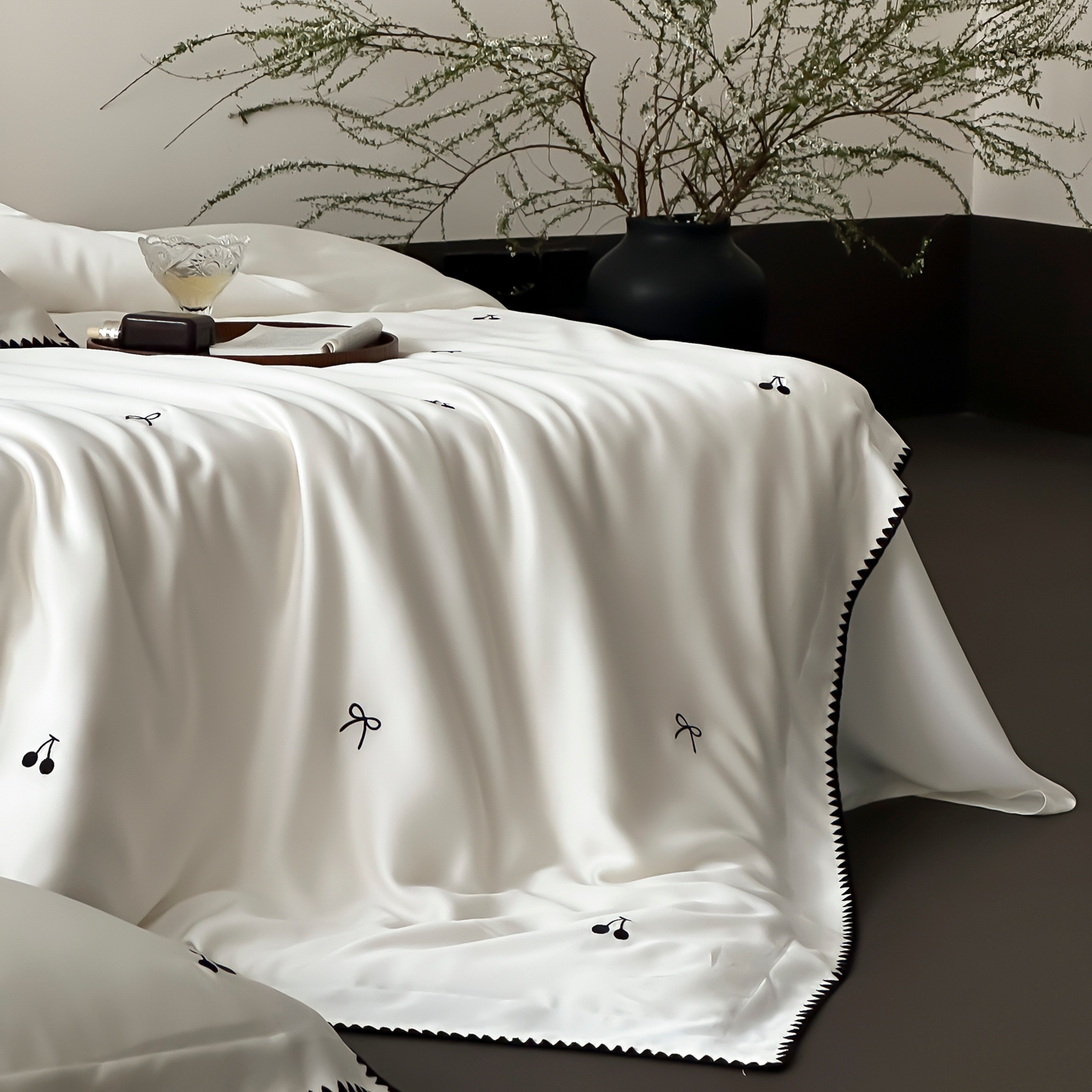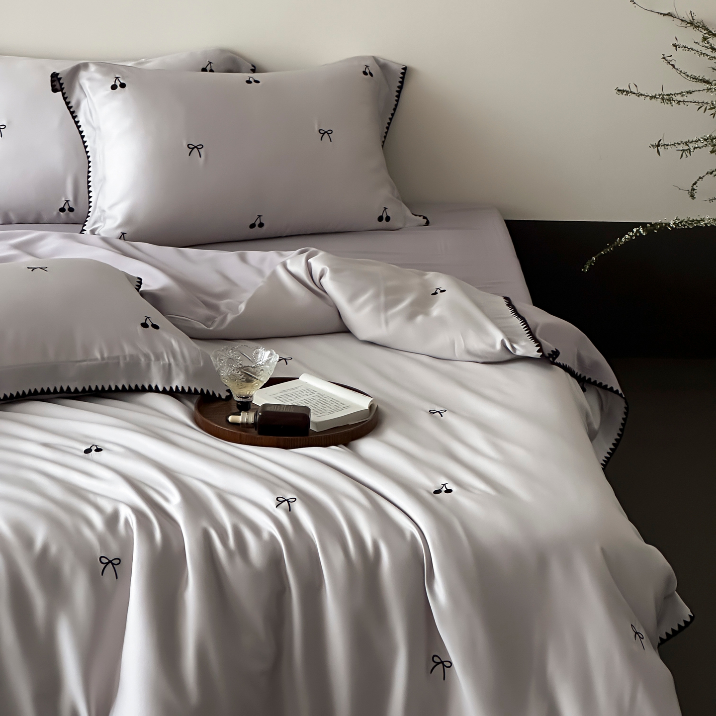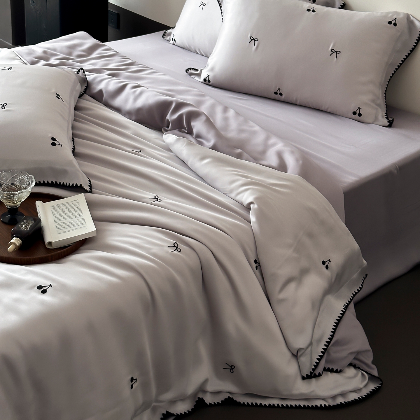 商品名称:(总)时亿家居 2026春夏新款兰精天丝四件套-黑樱梦境