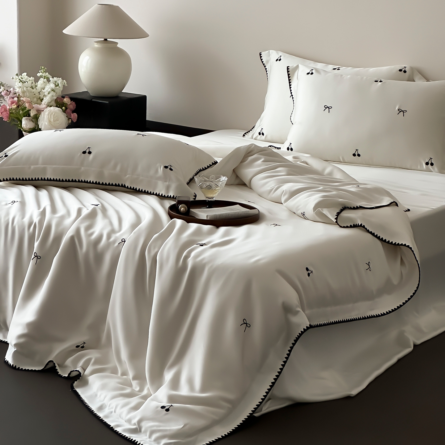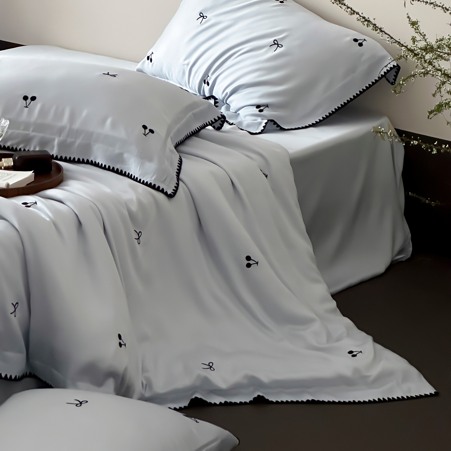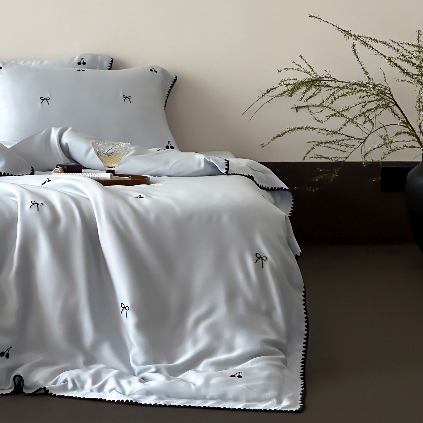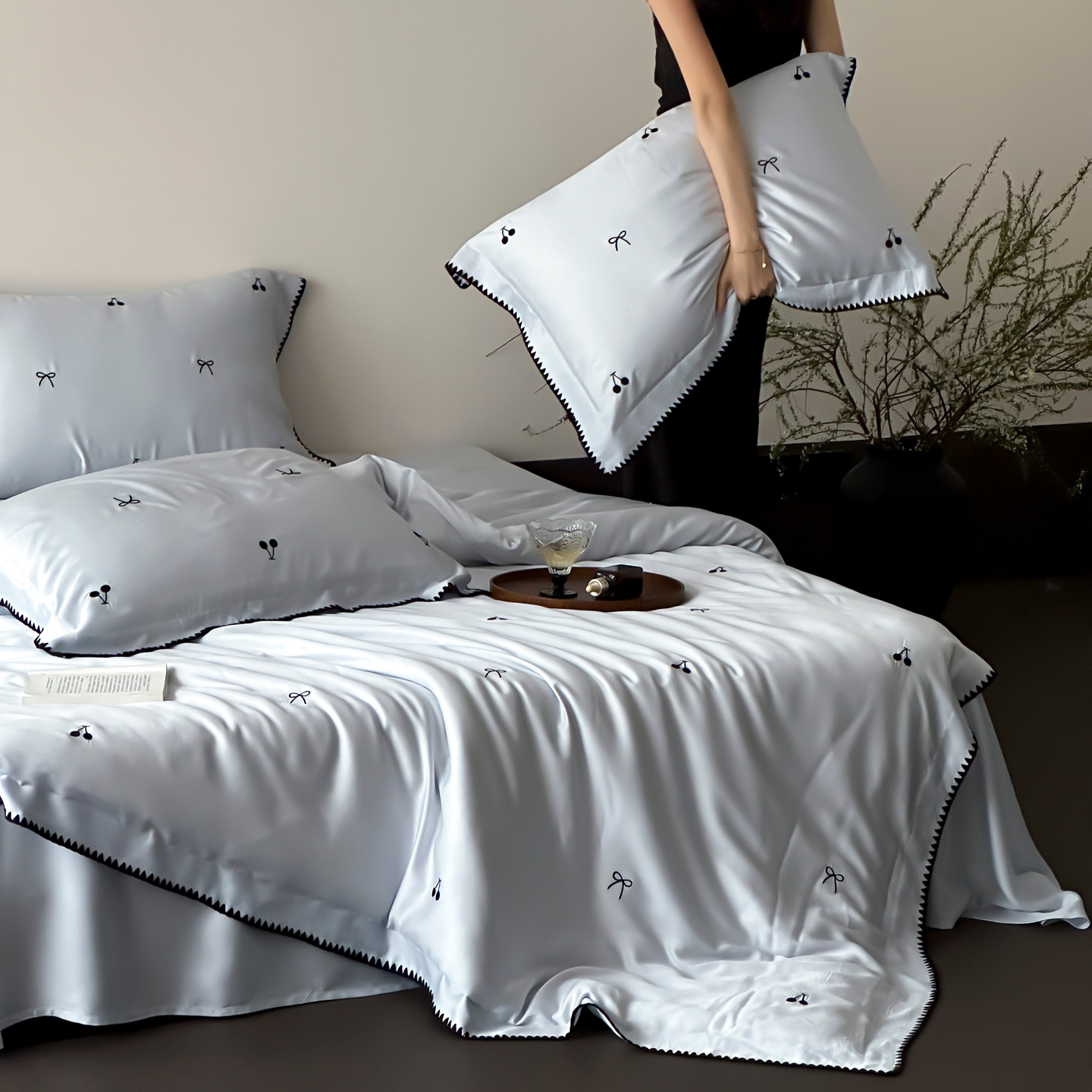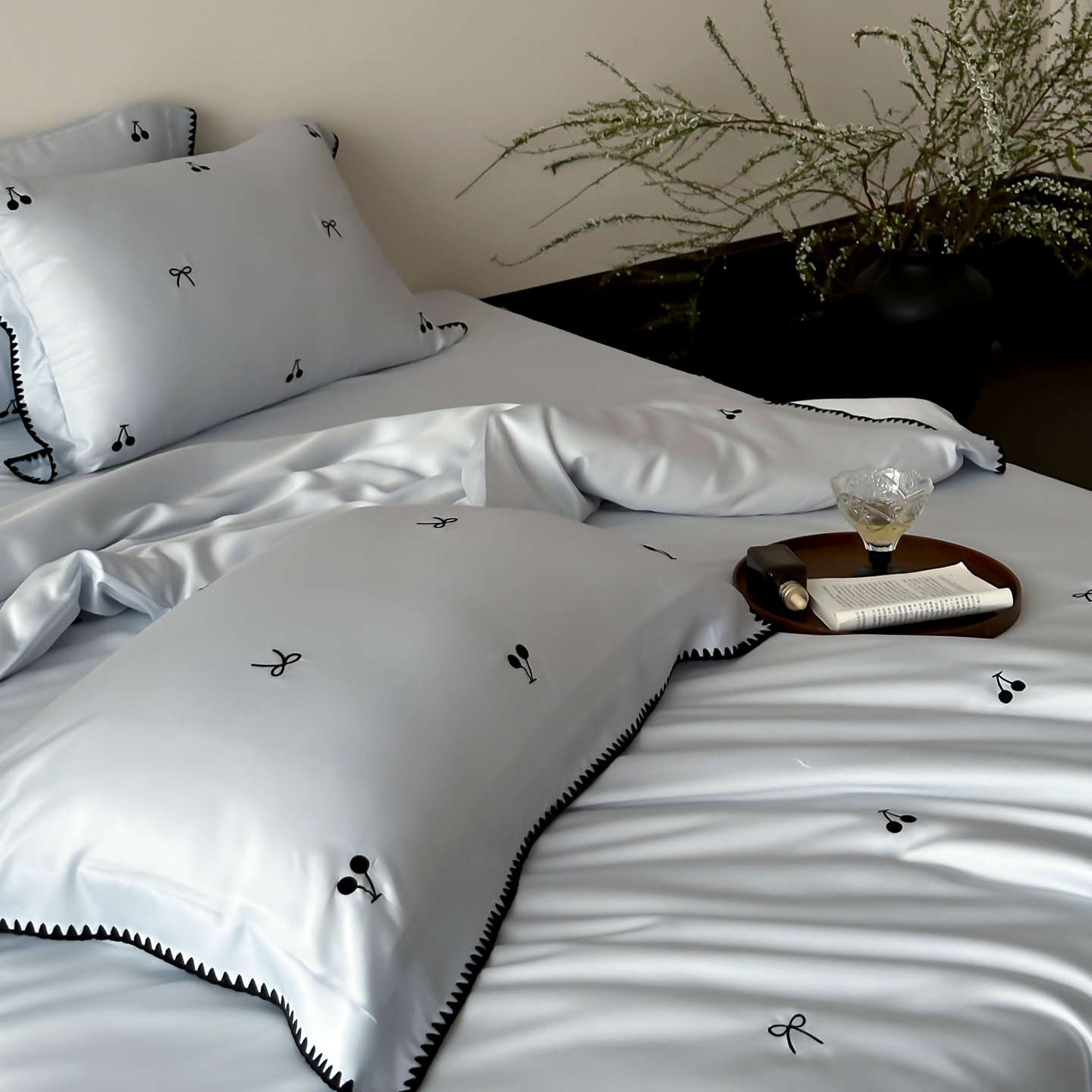 商品名称:(总)时亿家居 2026春夏新款兰精天丝四件套-黑樱梦境