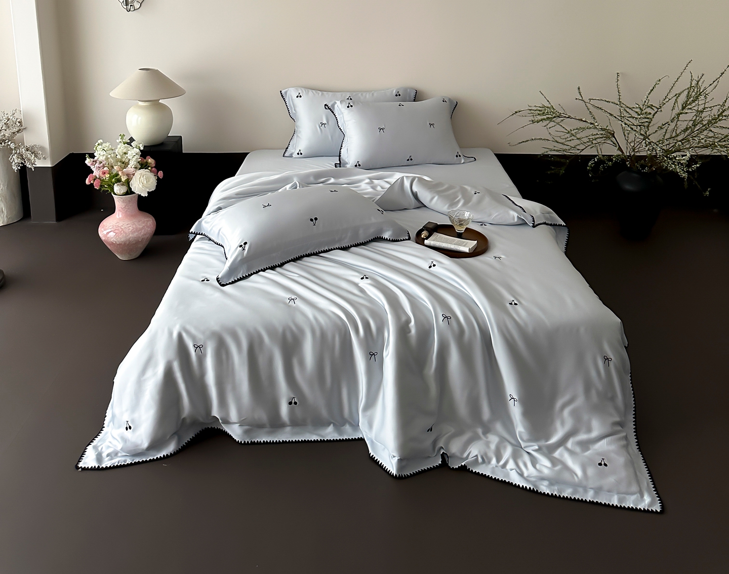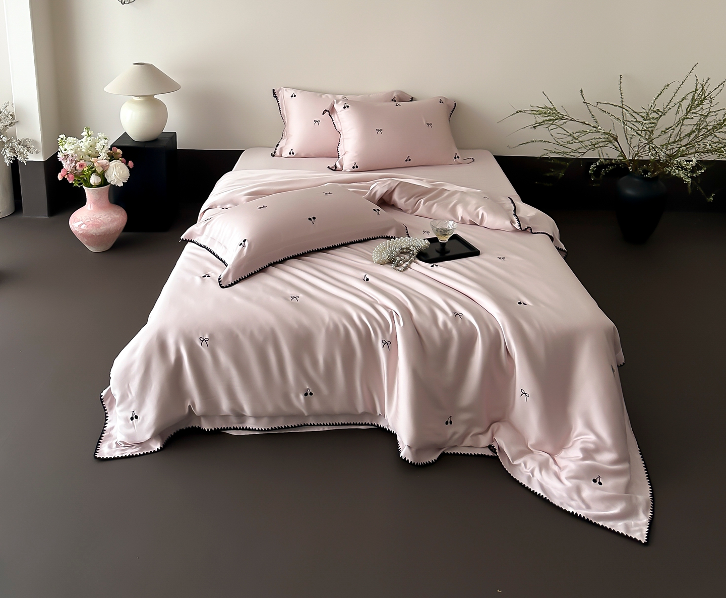 (总)时亿家居 2026春夏新款兰精天丝四件套-黑樱梦境