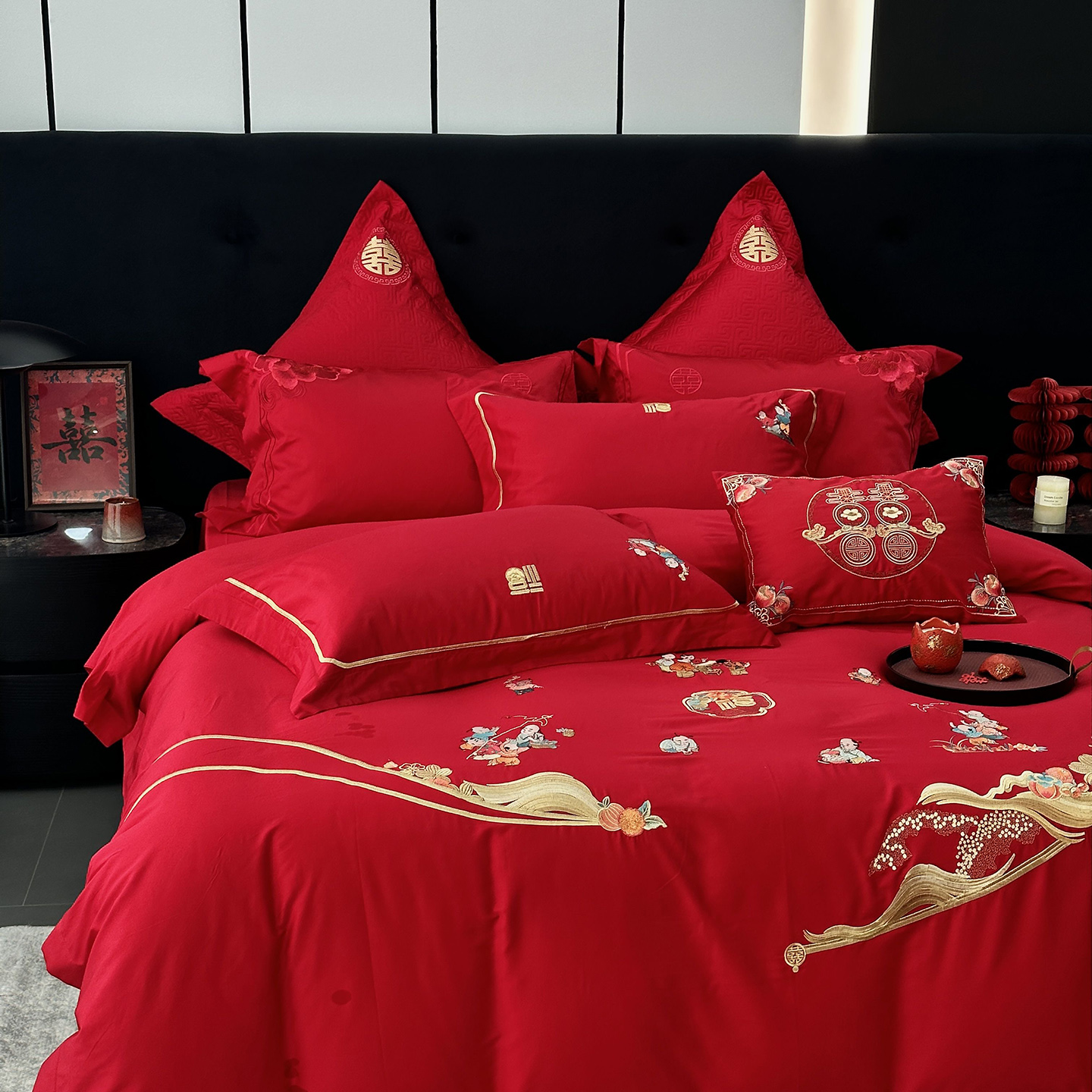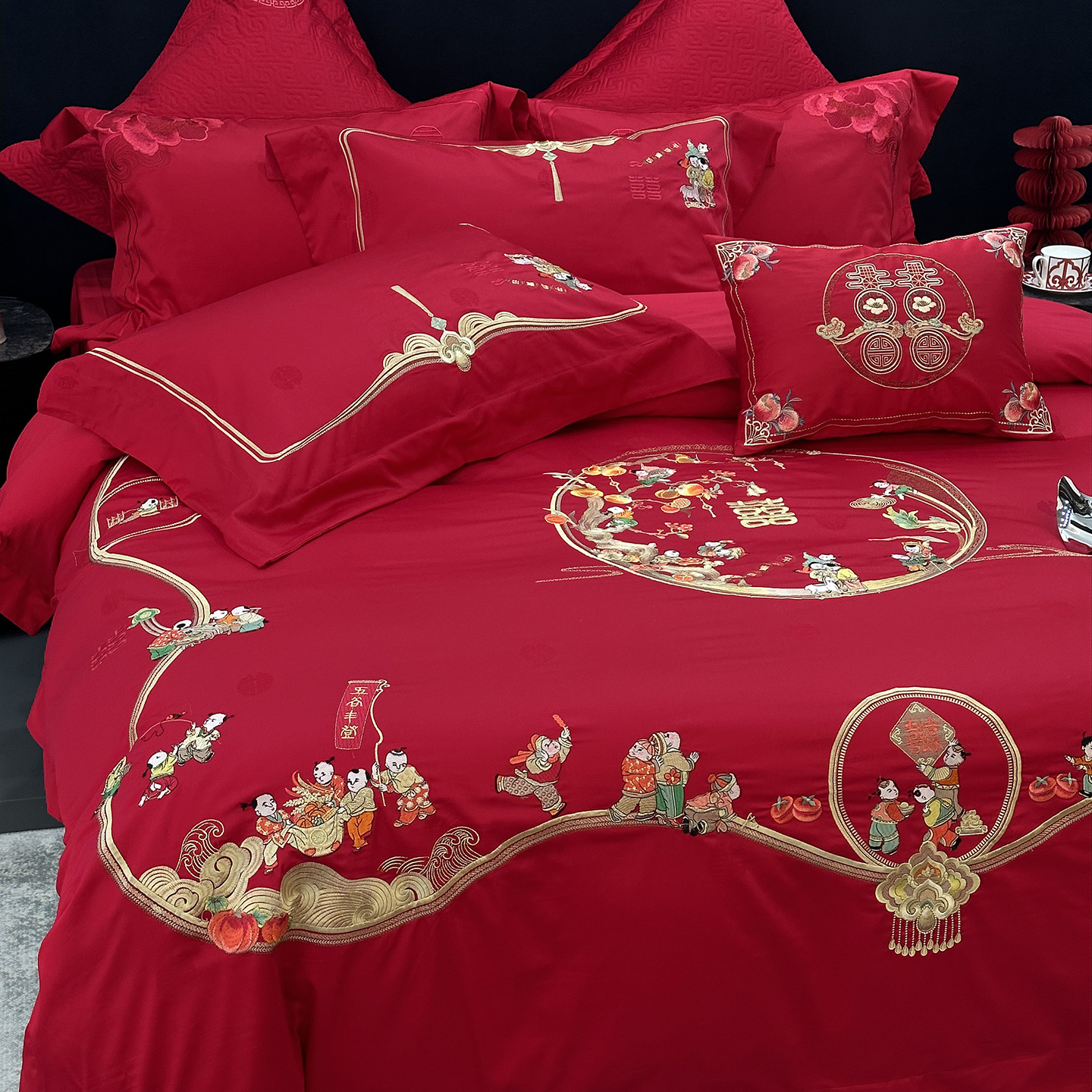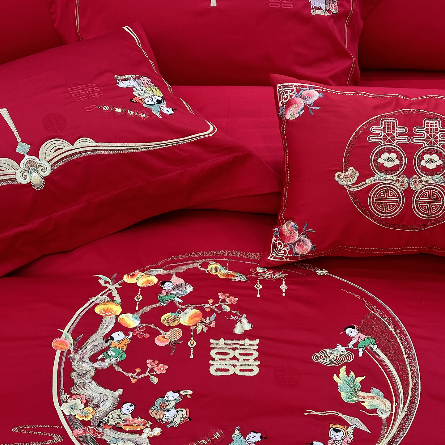 (总)JUICY 橘滋家纺 2026新款全棉大红刺绣婚庆实惠款四件套多件套,百子喜事,花好月圆,花开富贵(红),花开富贵(金),龙凤喜乐,龙凤喜事,我们结婚了-红,我们结婚了-金,喜上加喜,喜事如意,喜悦锦簇-红,喜悦锦簇-金,心心相印-红,心心相印-金,尊龙贵凤
