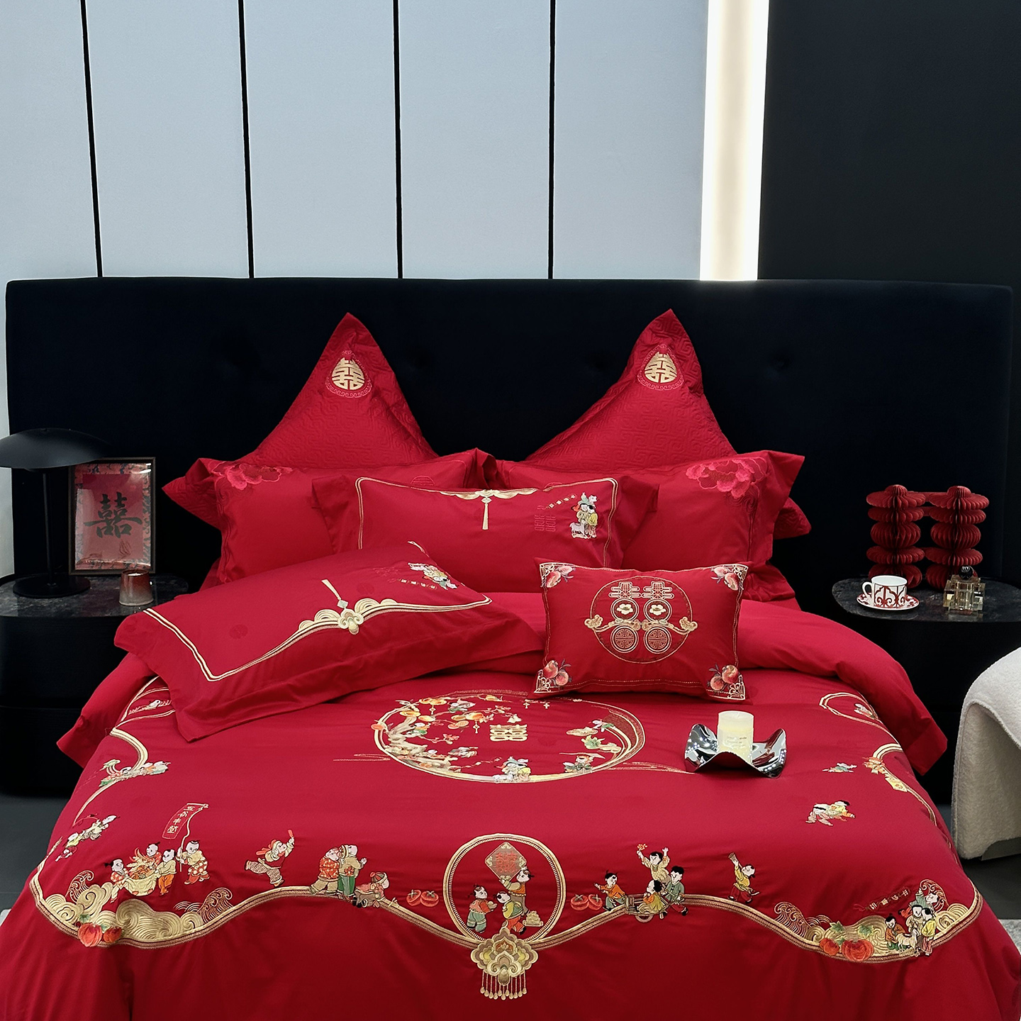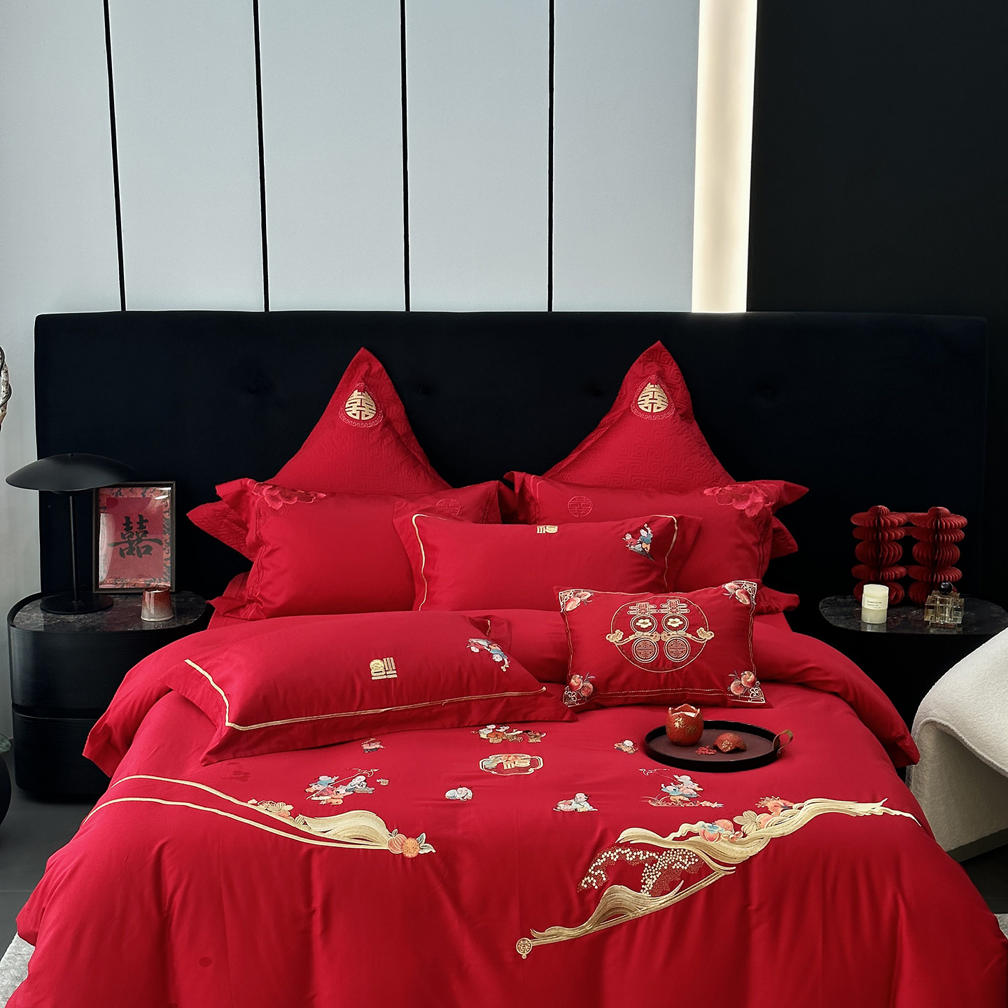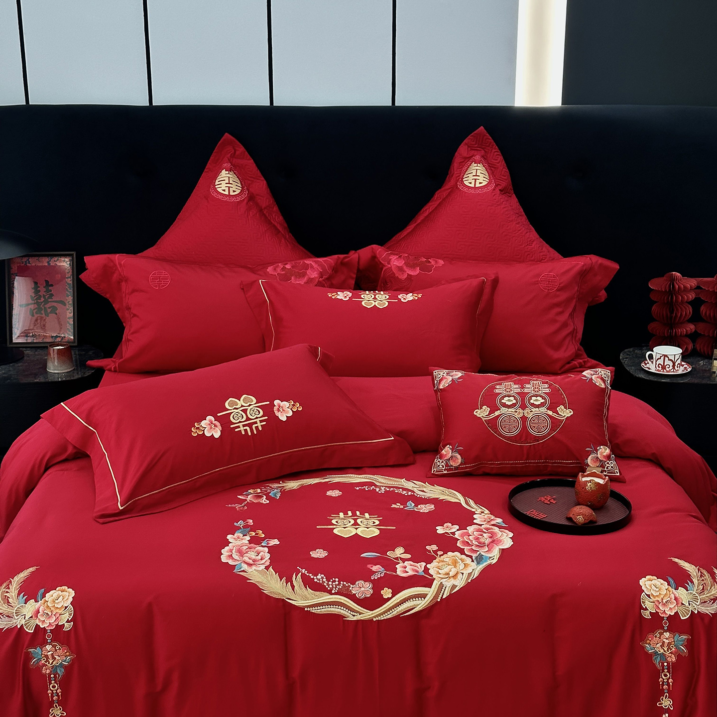 (总)JUICY 橘滋家纺 2026新款全棉大红刺绣婚庆实惠款四件套多件套,百子喜事,花好月圆,花开富贵(红),花开富贵(金),龙凤喜乐,龙凤喜事,我们结婚了-红,我们结婚了-金,喜上加喜,喜事如意,喜悦锦簇-红,喜悦锦簇-金,心心相印-红,心心相印-金,尊龙贵凤