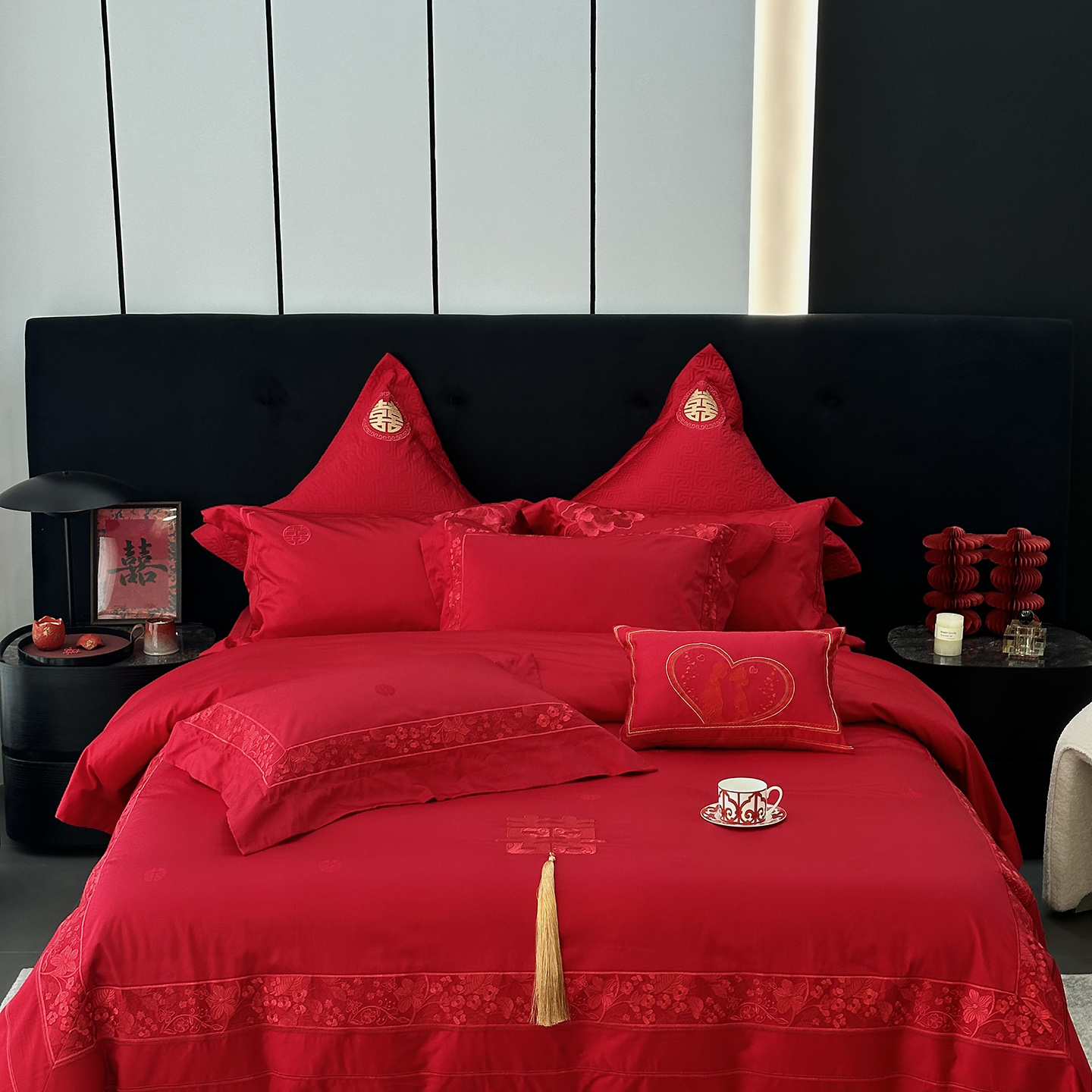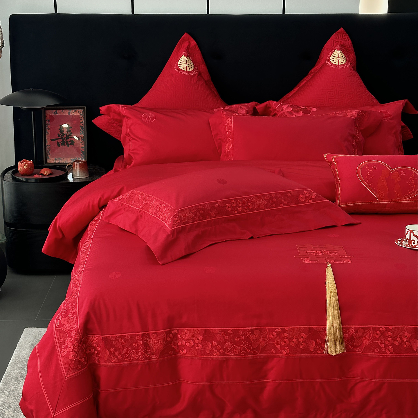 商品名称:(总)JUICY 橘滋家纺 2026新款全棉提花高端婚庆刺绣传臻系列四件套多件套