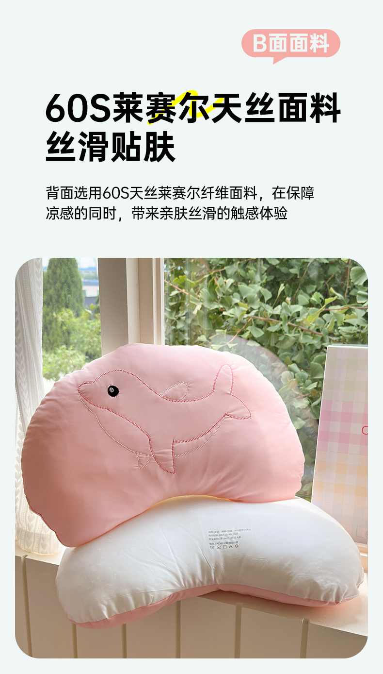当前位置: 91家纺网 > 商品网购 > 婴童用品 > 婴童枕头/枕芯 > 北鸣有鱼枕芯馆 2026新款冰皮小海豚枕头枕芯 小海豚-粉色 35*55cm/只