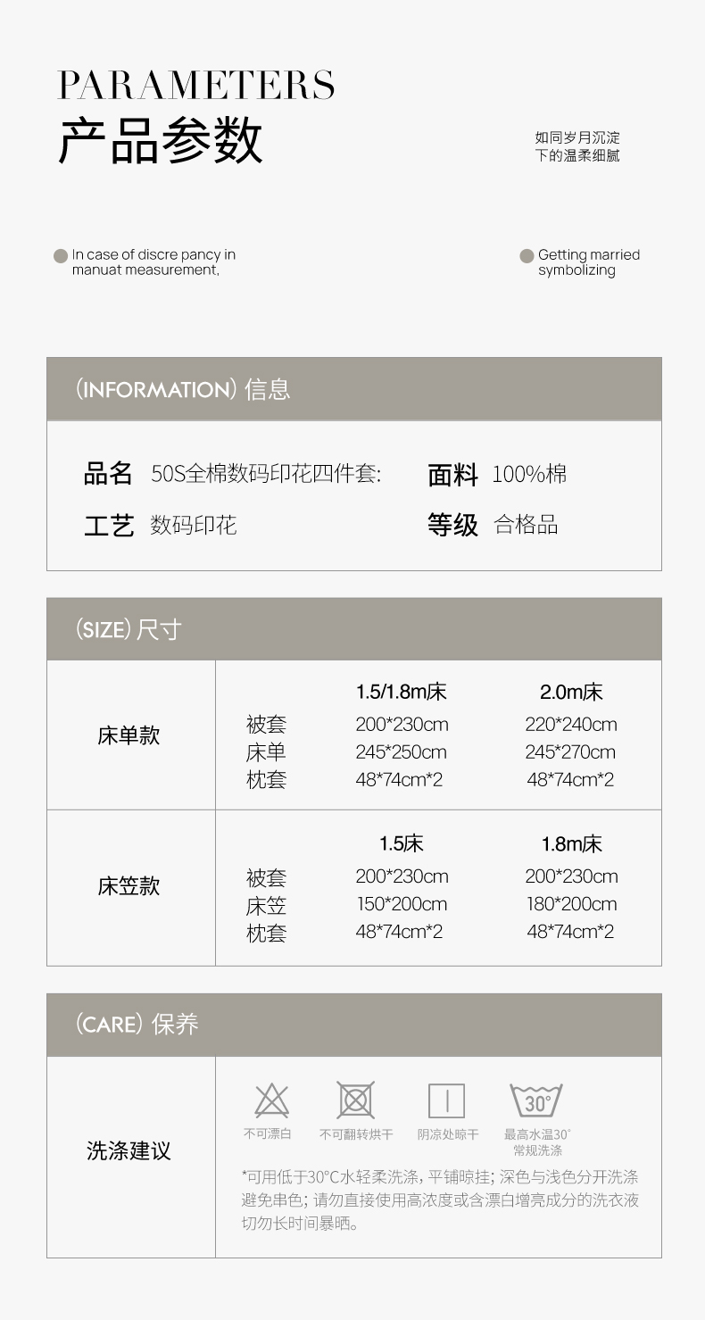 【床笠款】1.8四件套-被套200x230 | ¥200.00 |