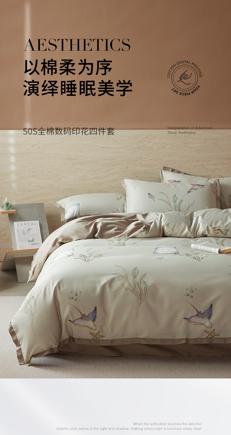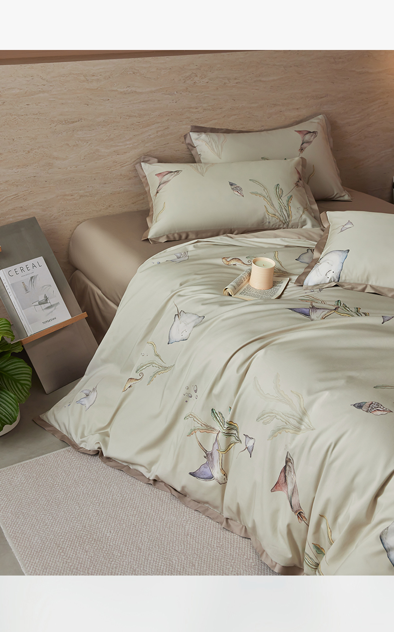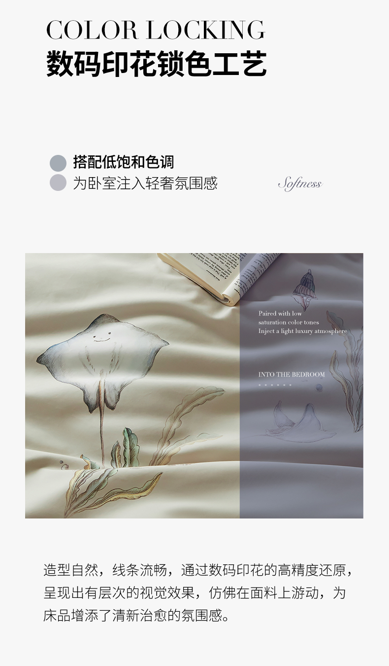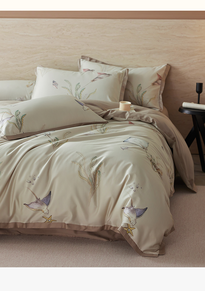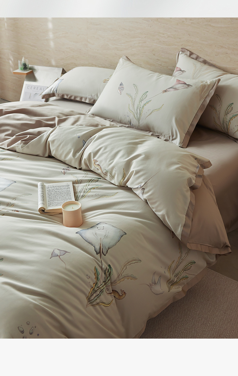 当前位置: 91家纺网 > 商品网购 > 床品套件 > 四件套 > 全棉活性四件套 > 千朵森 2026新款海洋风全棉纯棉50S数码印花拼角四件套 HY浅海秘屿