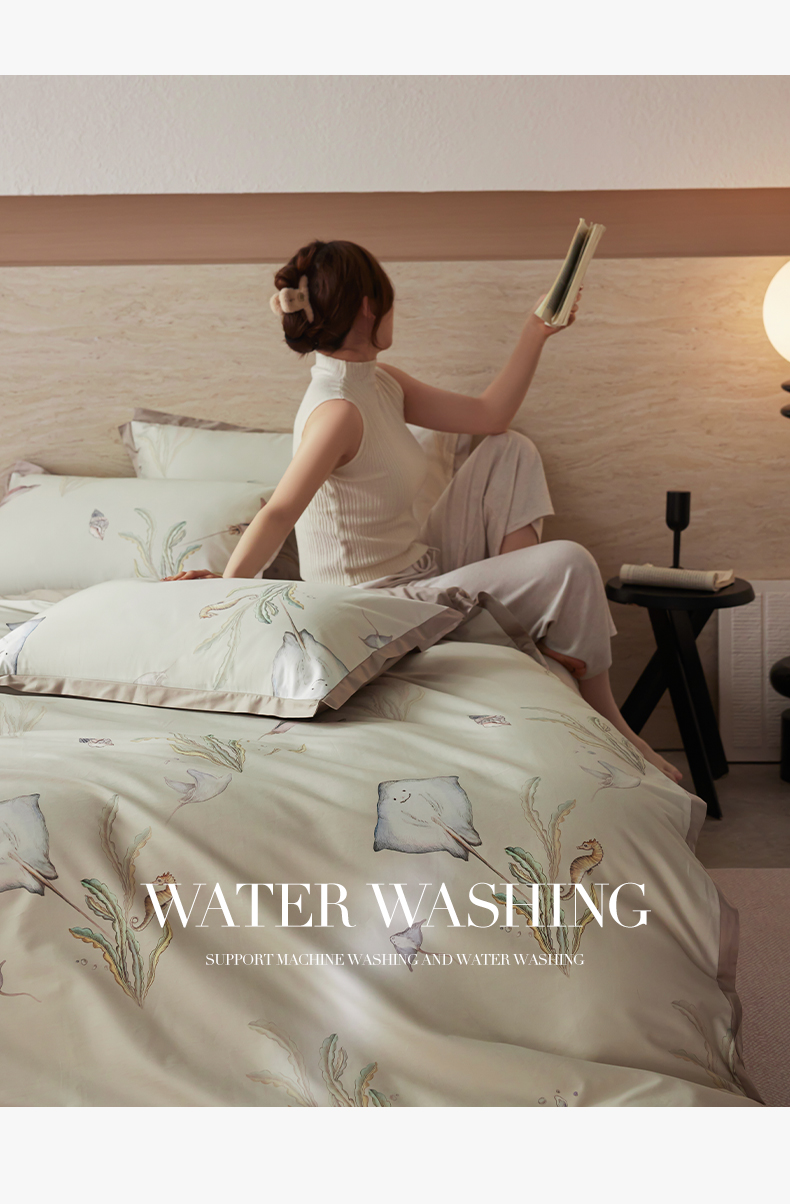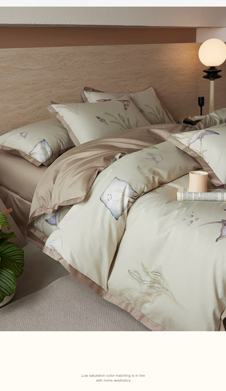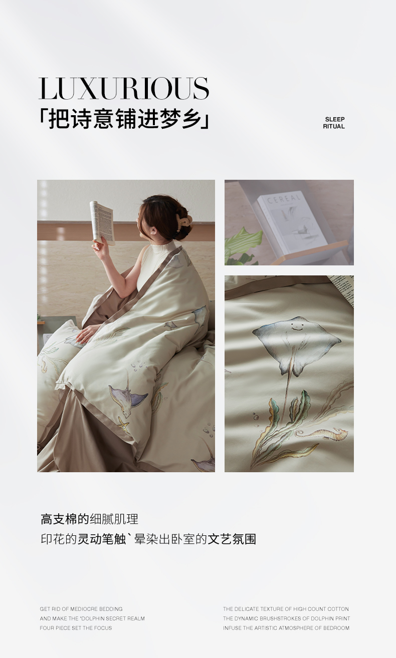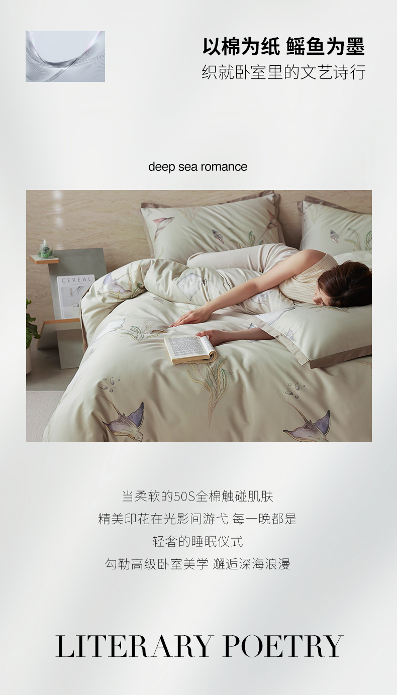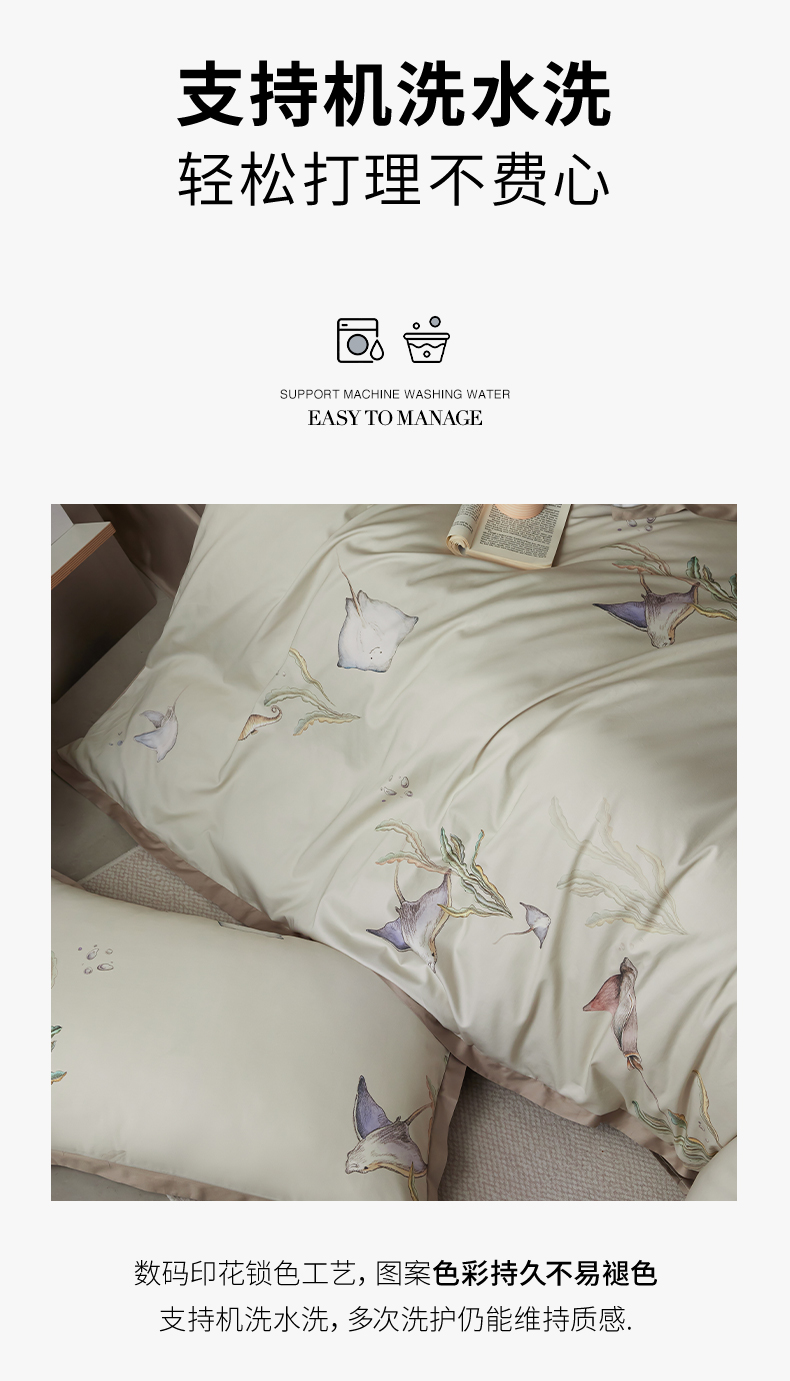 当前位置: 91家纺网 > 商品网购 > 床品套件 > 四件套 > 全棉活性四件套 > 千朵森 2026新款海洋风全棉纯棉50S数码印花拼角四件套 HY浅海秘屿
