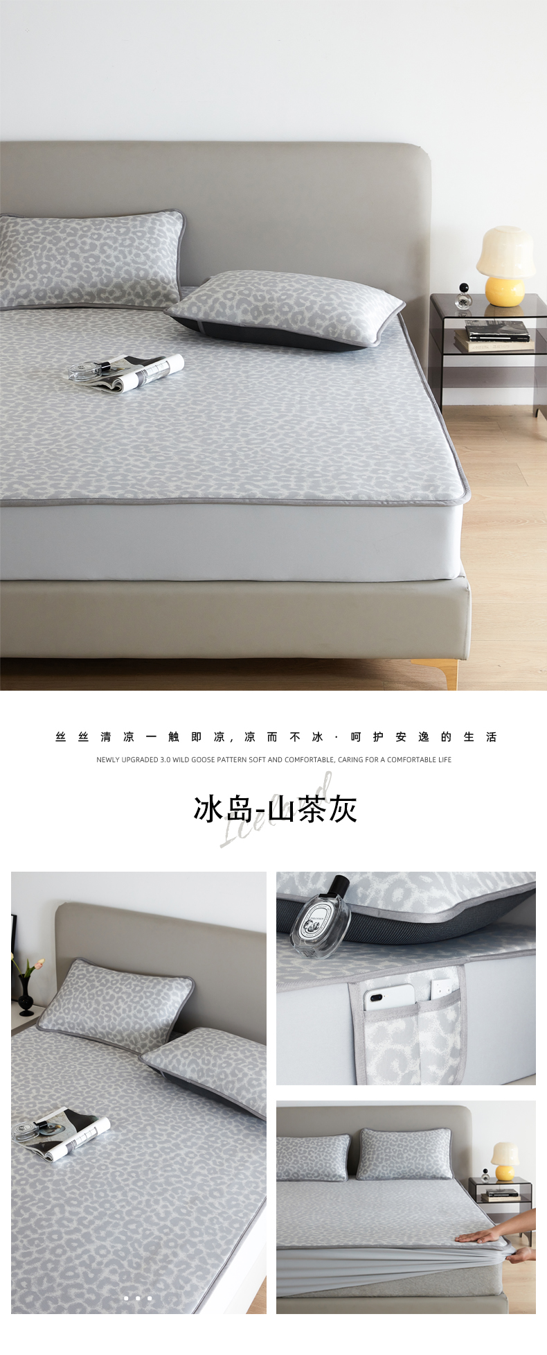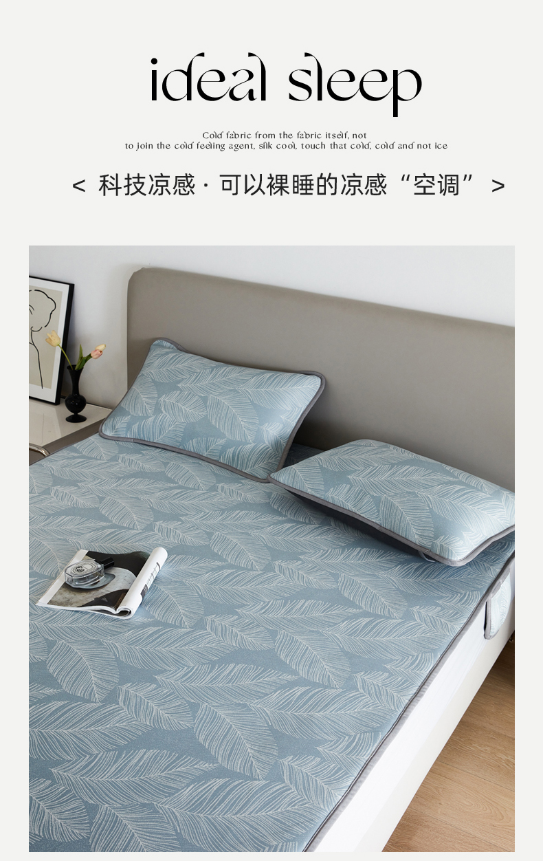 (总)千朵森 2026新款A类抗菌冰岛冰感丝床笠款凉席三件套 风格二,冰岛-暮夜蓝,冰岛-浅茶杏,冰岛-晴空蓝,冰岛-山茶灰,冰岛-山梗灰