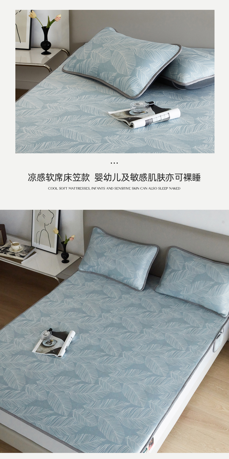 (总)千朵森 2026春夏新款冰感条纹凉席床笠款凉席席子三件套-素影,组合图仅供展示不可下单,素影灰,素影咖,素影蓝