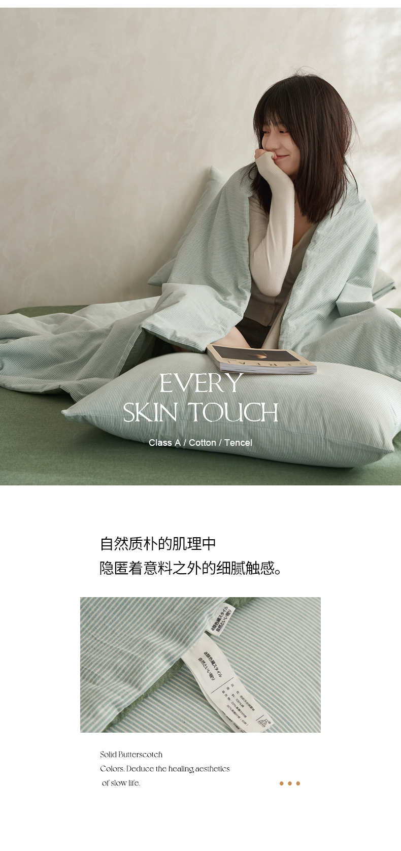 (总)千朵森 2026新款50S素色双拼莱塞尔夏凉四件套,薄荷蓝配米月黄,草木青配米月黄,奶杏米配柔樱粉,柔樱粉配紫丁香,陶瓷棕配杏仁米