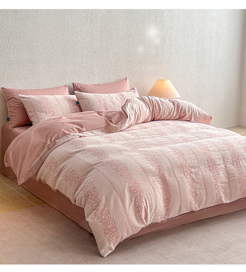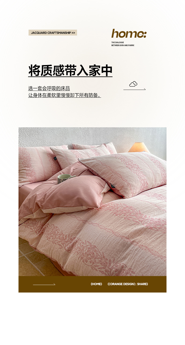 (总)恋人优选 2026新款浮光全棉纯棉提花四件套,浮光粉,浮光灰,浮光咖,浮光卡其,浮光兰